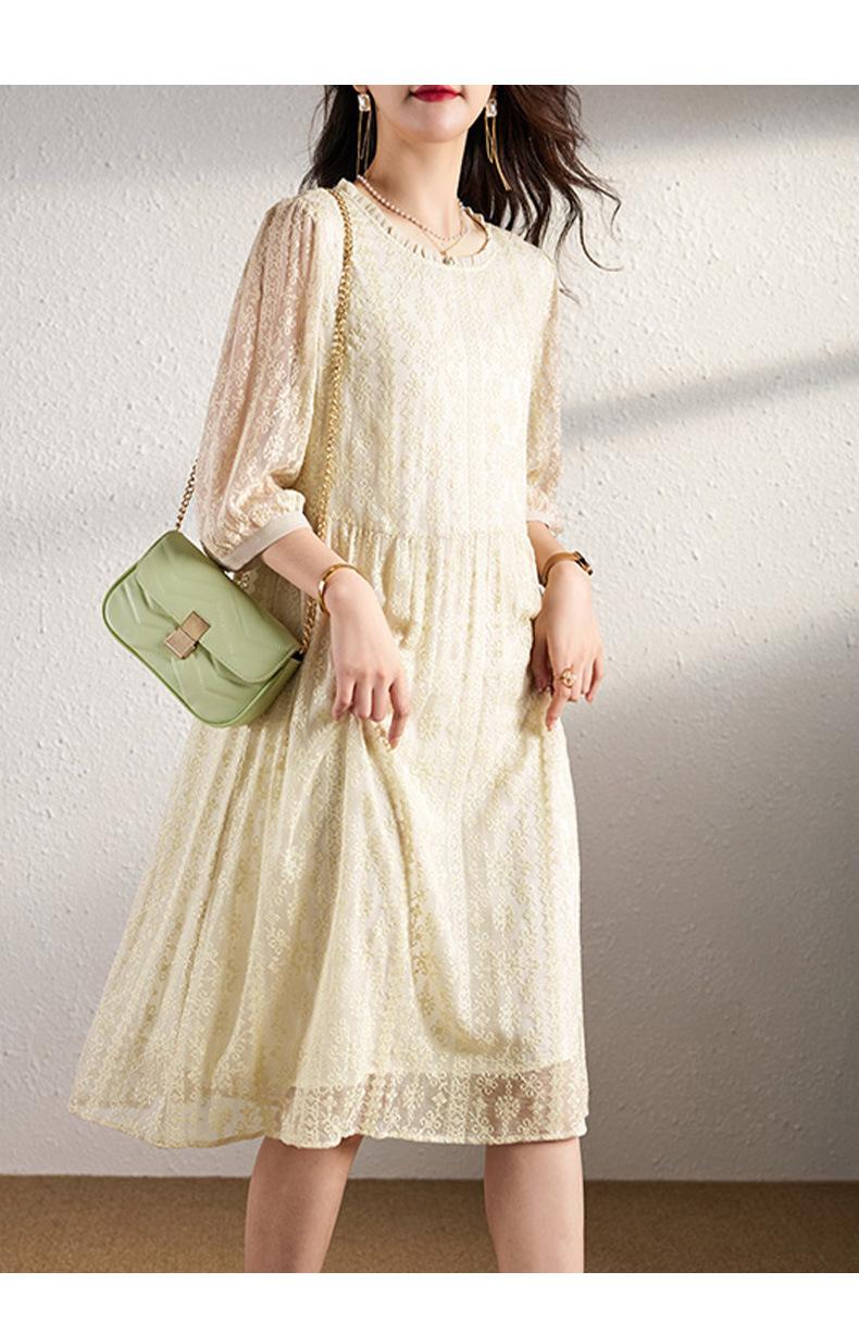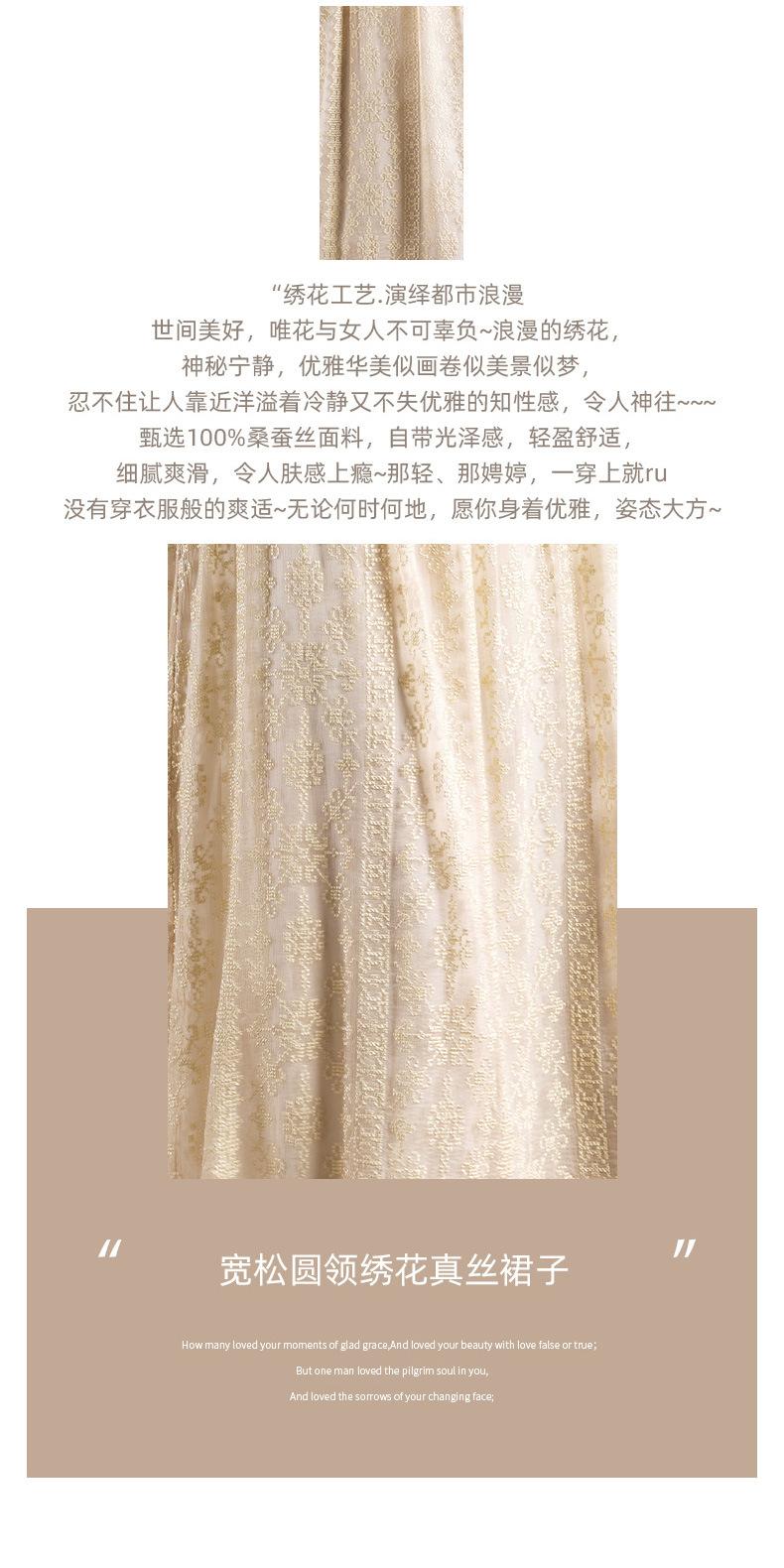 Vestido de Seda de Morera Bordado Nuevo Estilo Chino Falda de Seda 2025 Nuevo Verano para Mujer Suelto Talla Grande Blanco