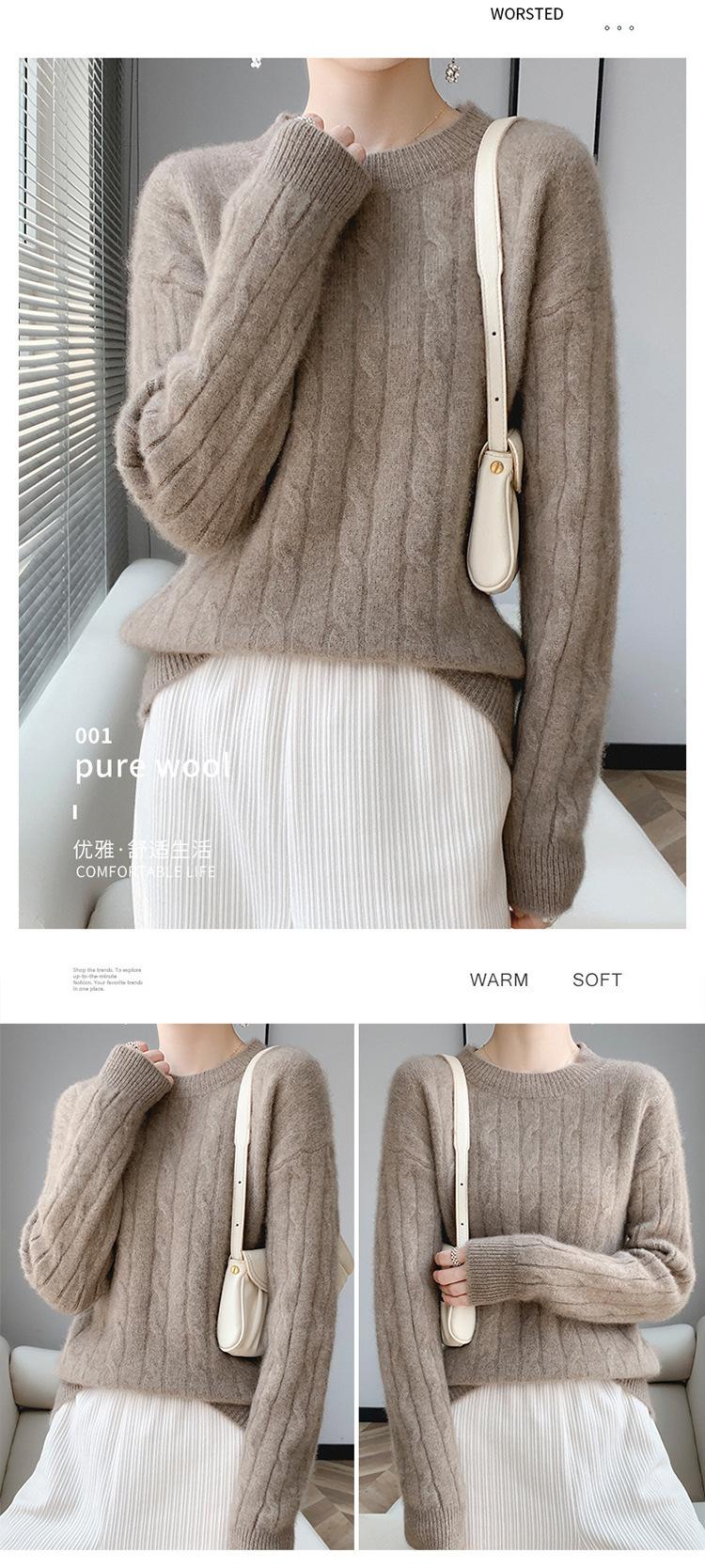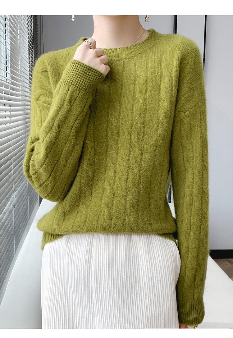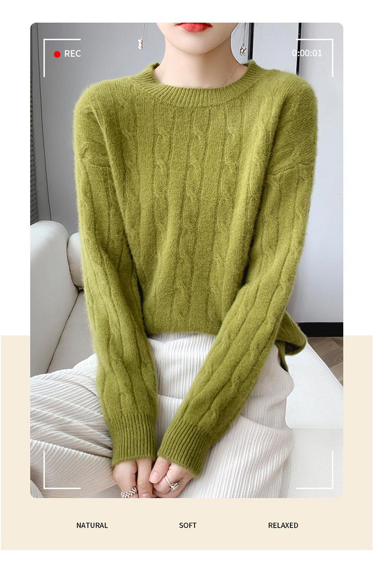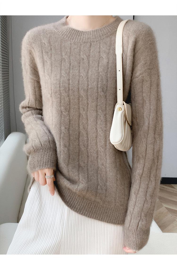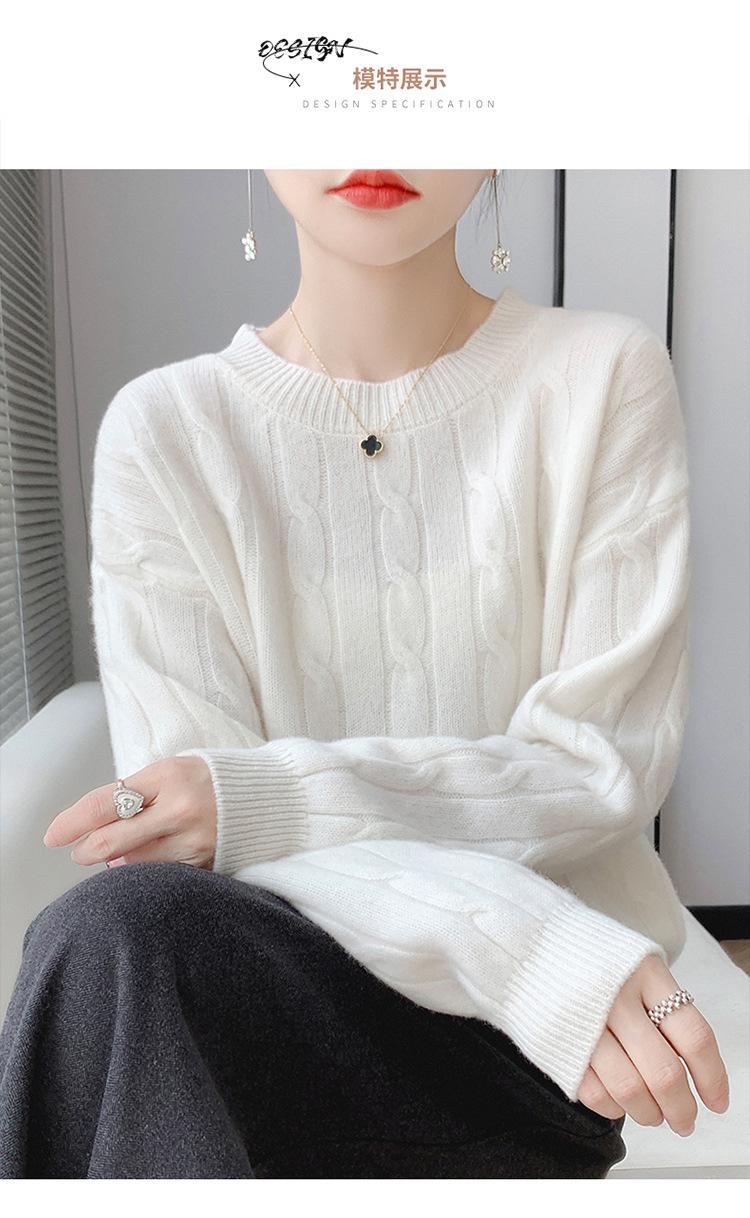 Suéter de cachemira glutinoso suave de estilo perezoso con cuello redondo engrosado para otoño e invierno, suéter de camisa de punto suelto para mujer