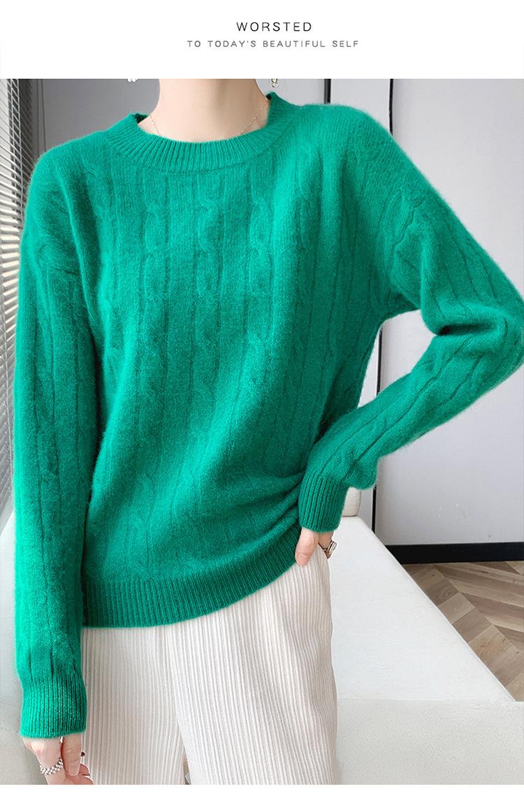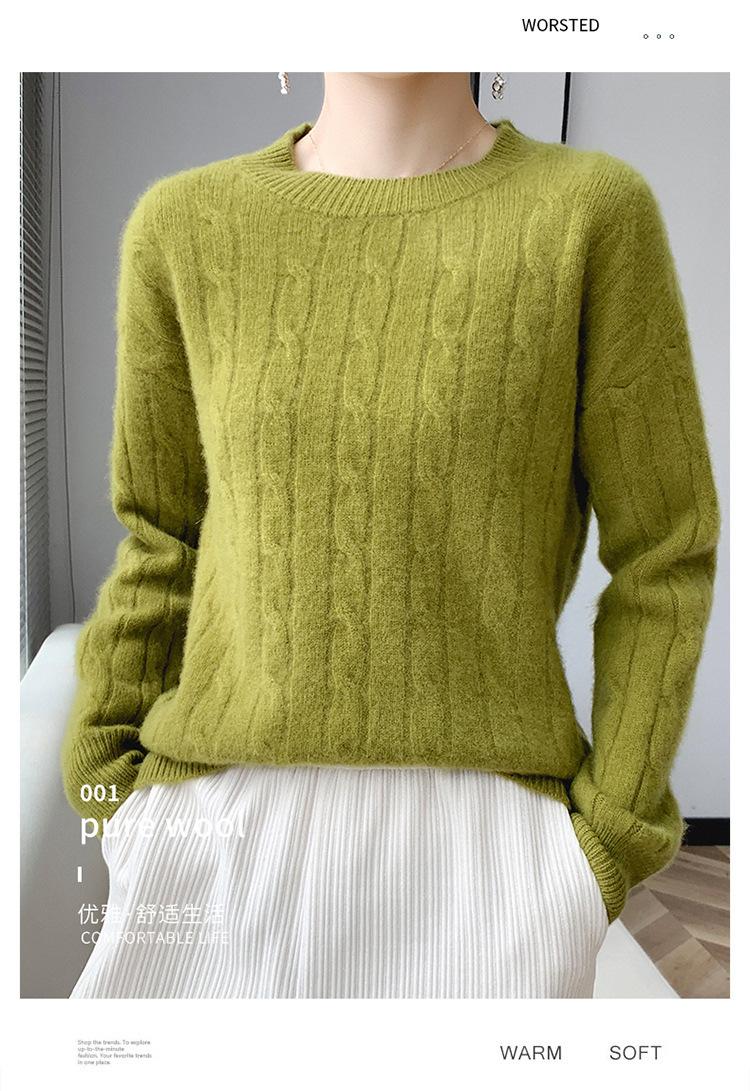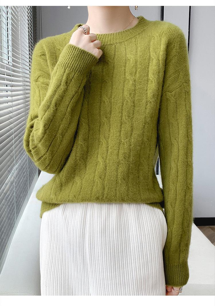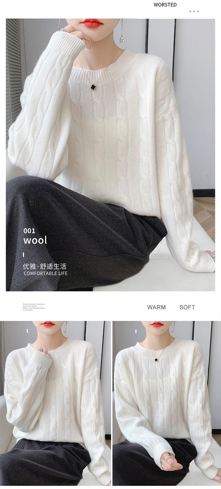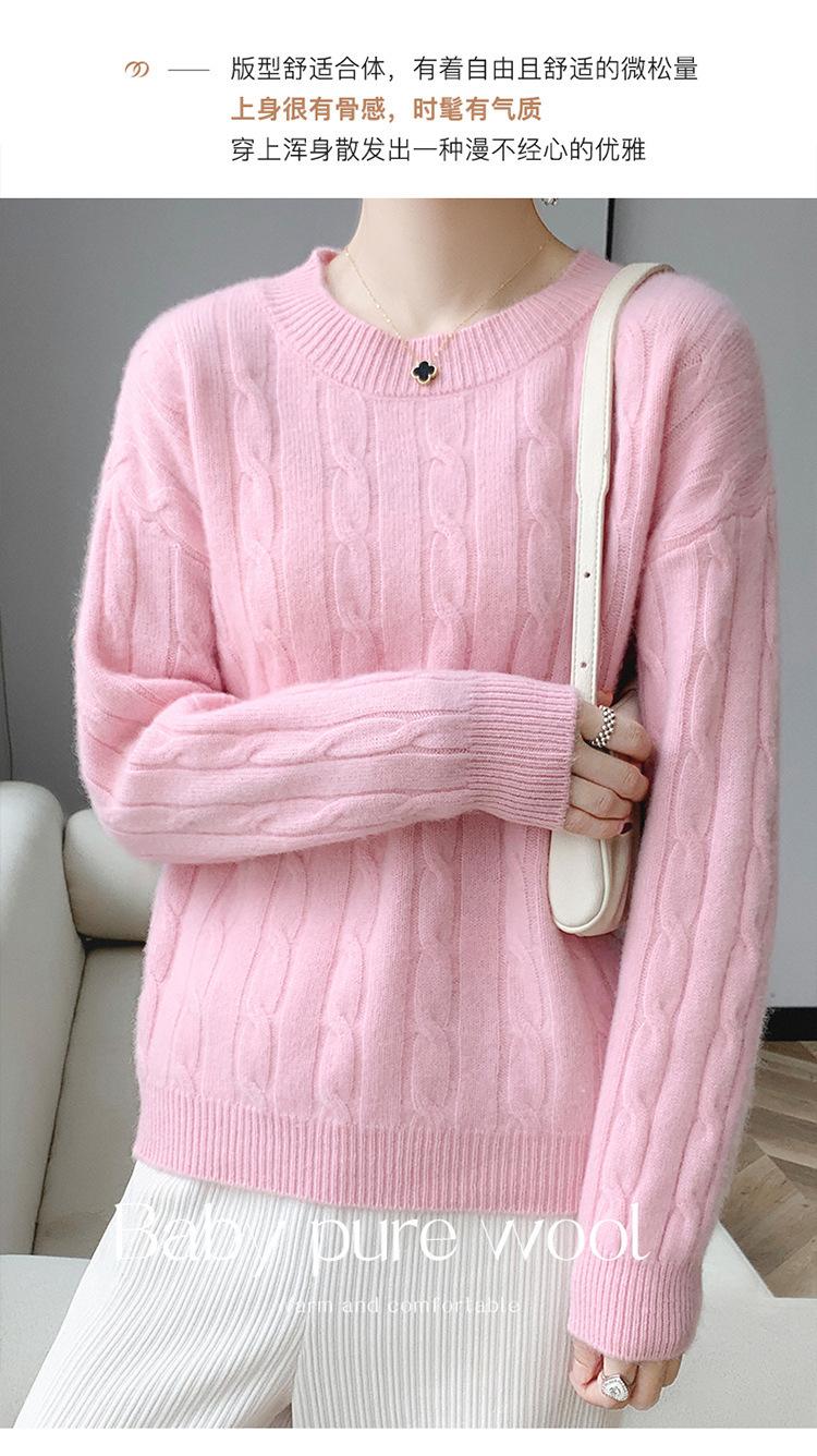 Suéter de cachemira glutinoso suave de estilo perezoso con cuello redondo engrosado para otoño e invierno, suéter de camisa de punto suelto para mujer