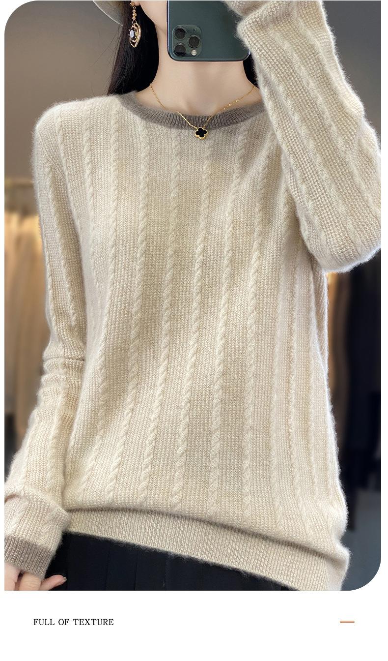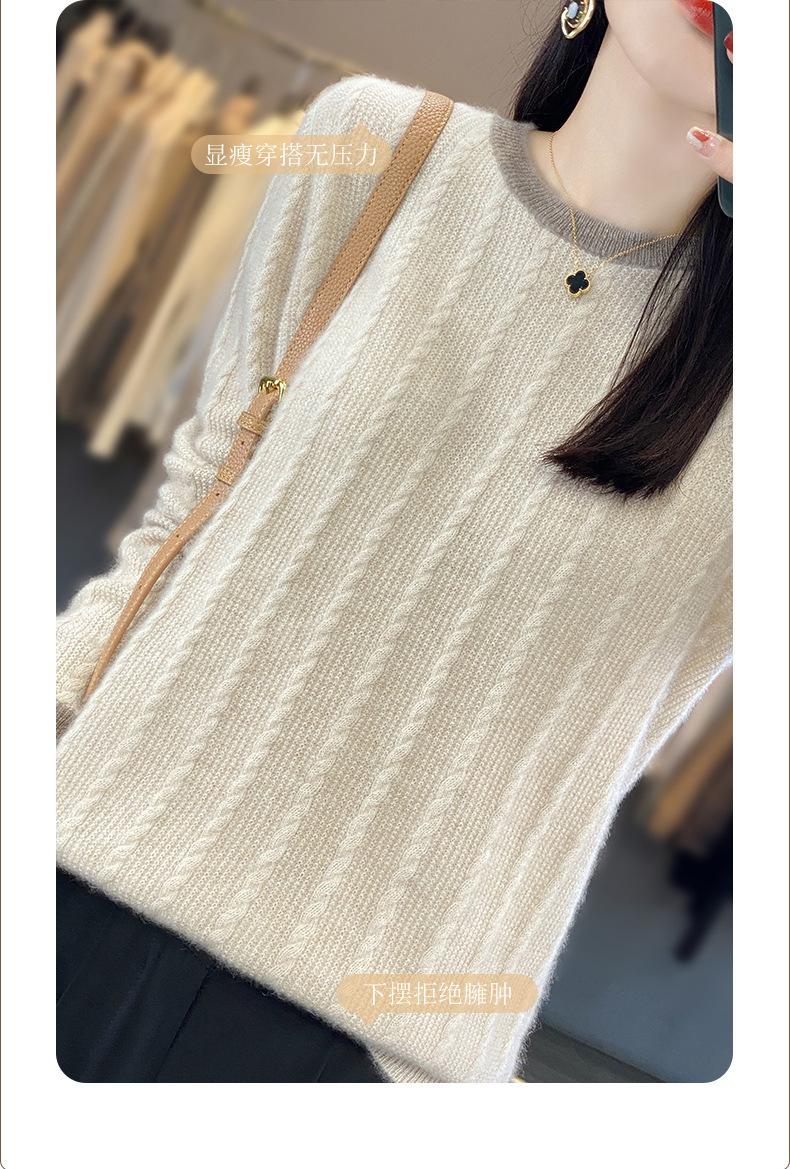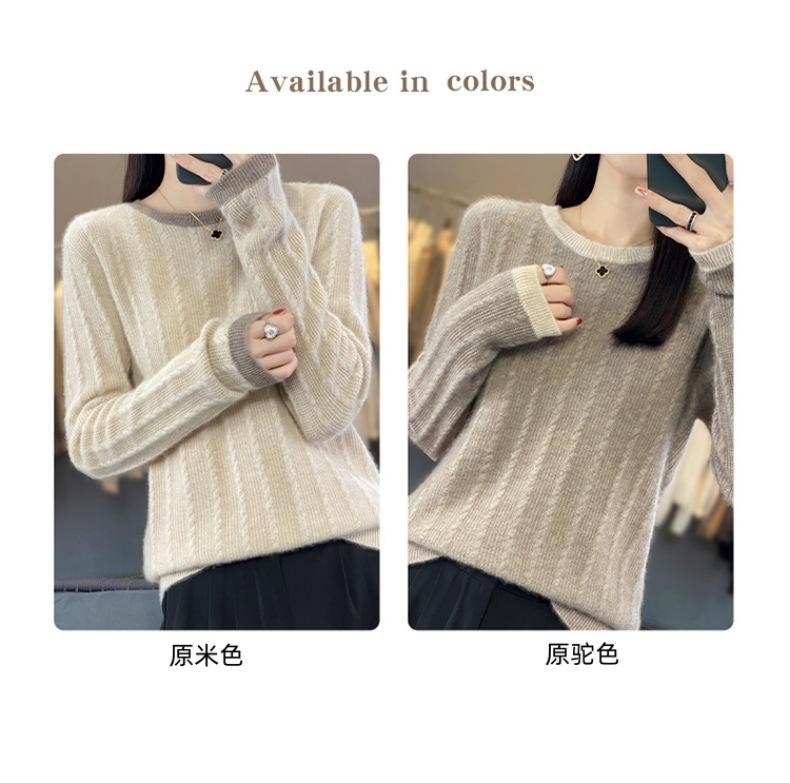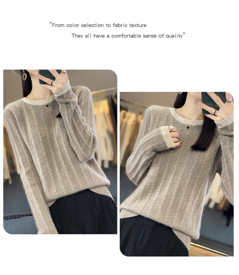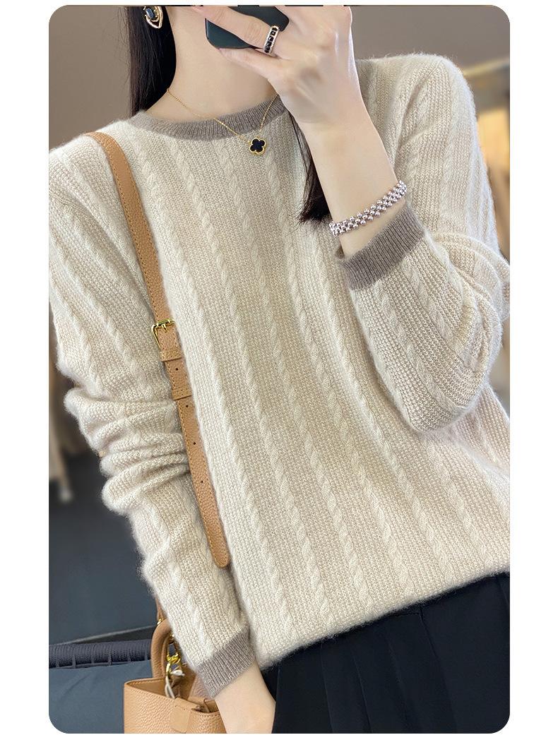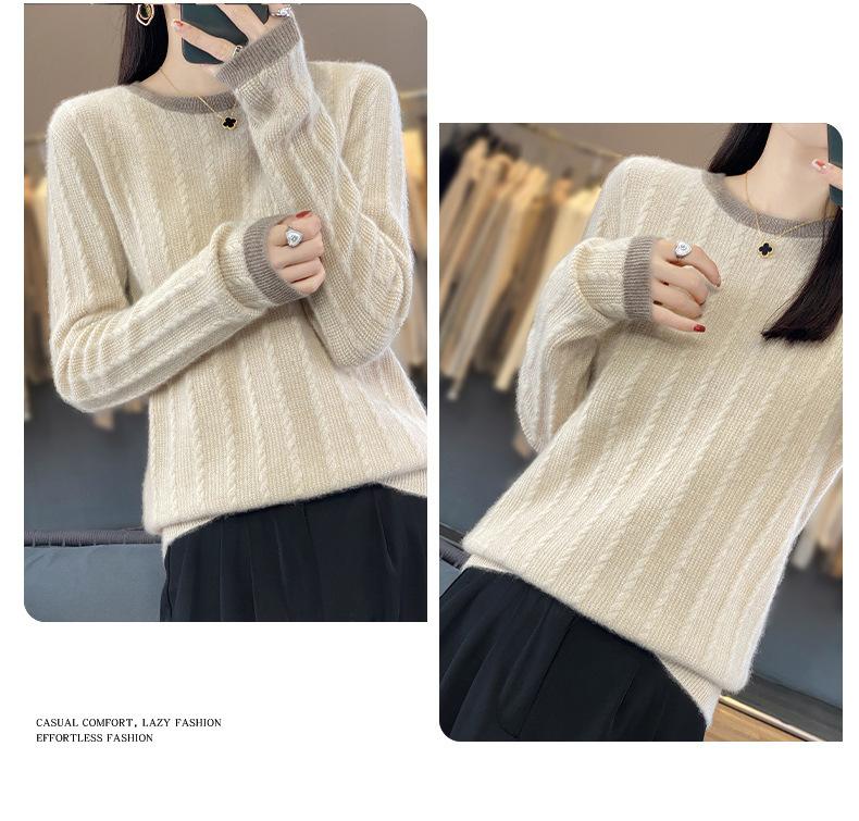 Otoño e Invierno Nuevo Jersey de Punto de Lana de Cuello Redondo en Contraste Suéter Holgado Base Ajustado Ajustado Suéter Interior de Lana