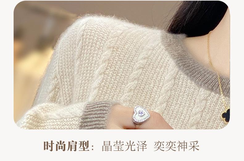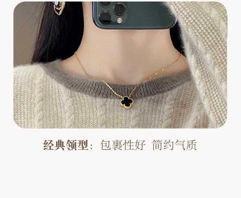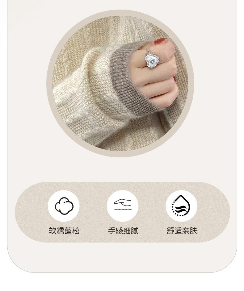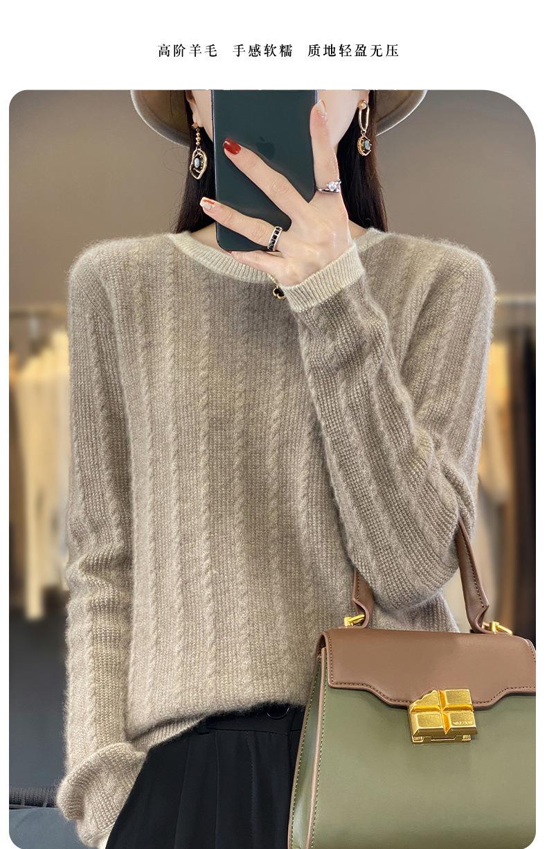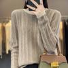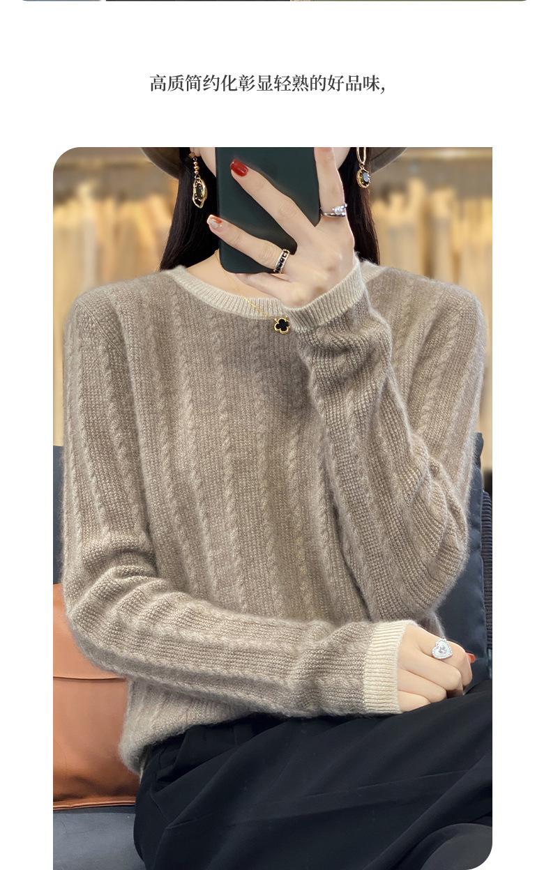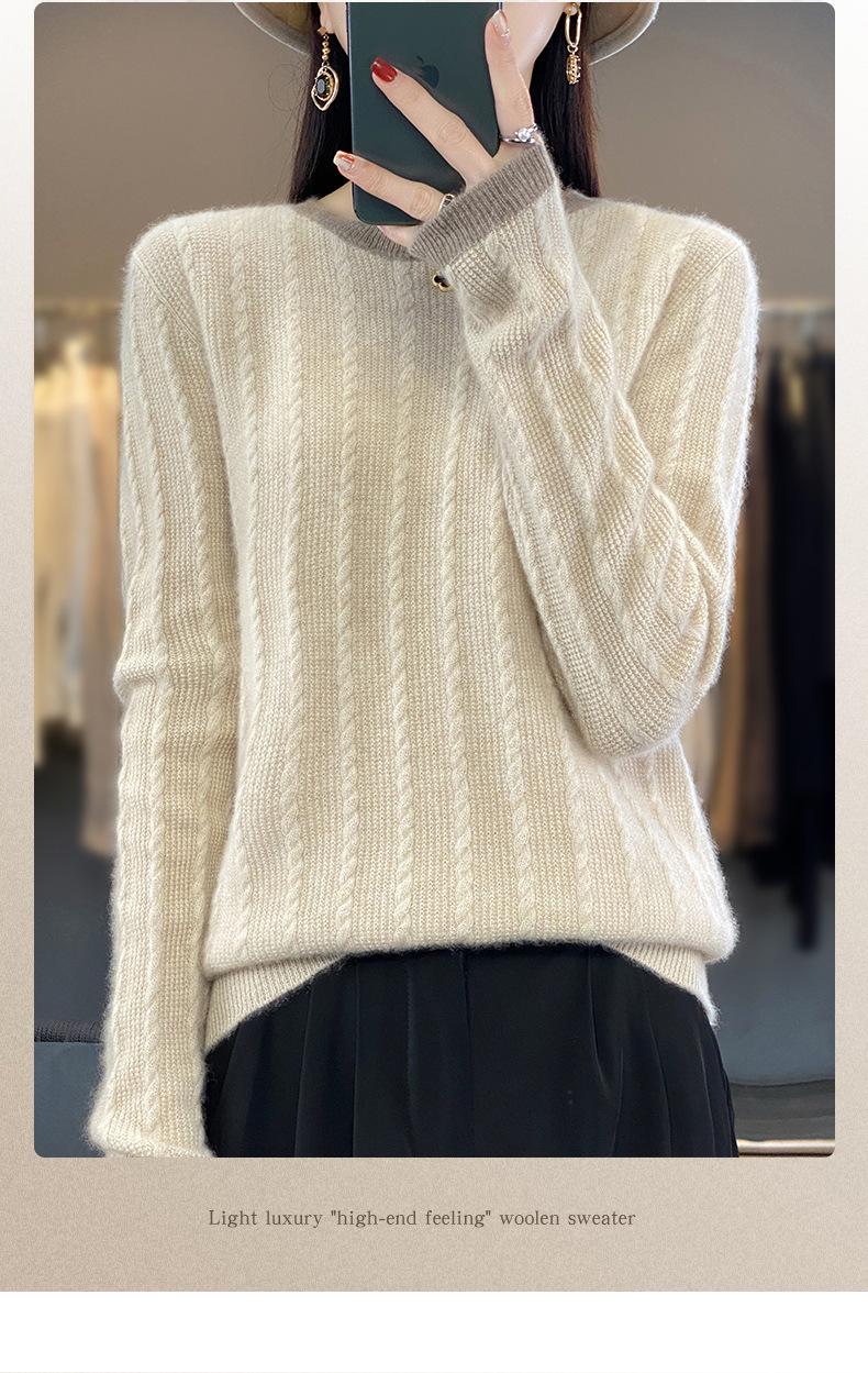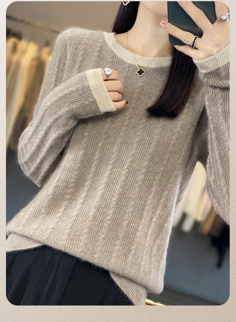 Otoño e Invierno Nuevo Jersey de Punto de Lana de Cuello Redondo en Contraste Suéter Holgado Base Ajustado Ajustado Suéter Interior de Lana