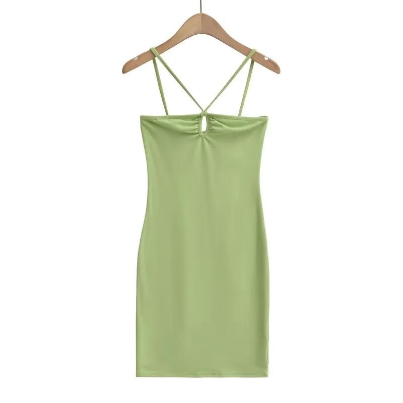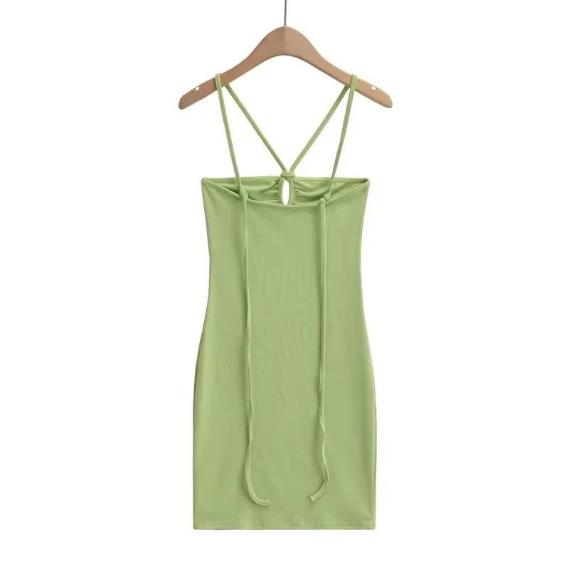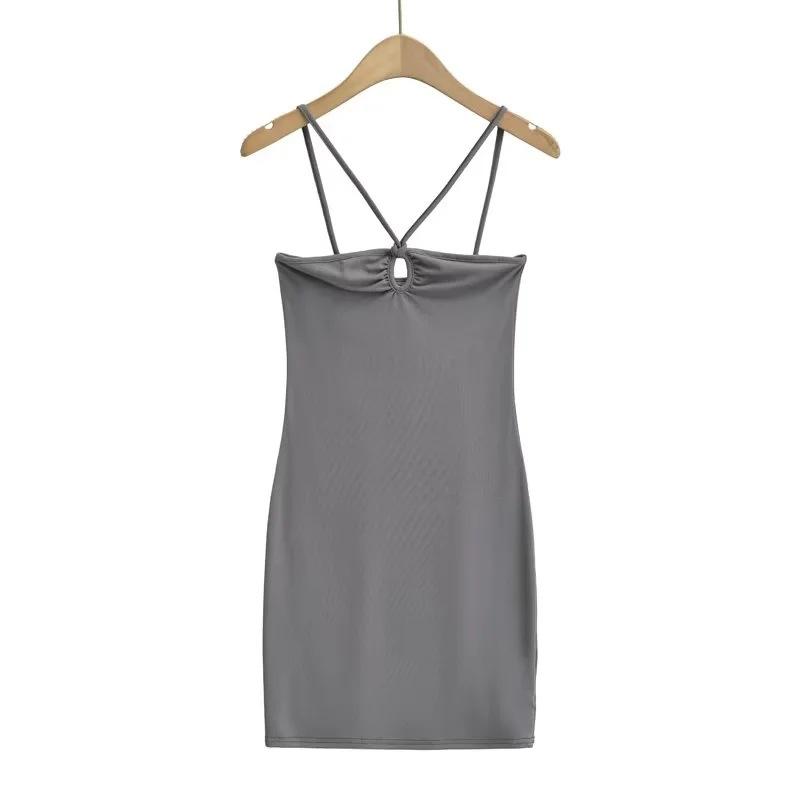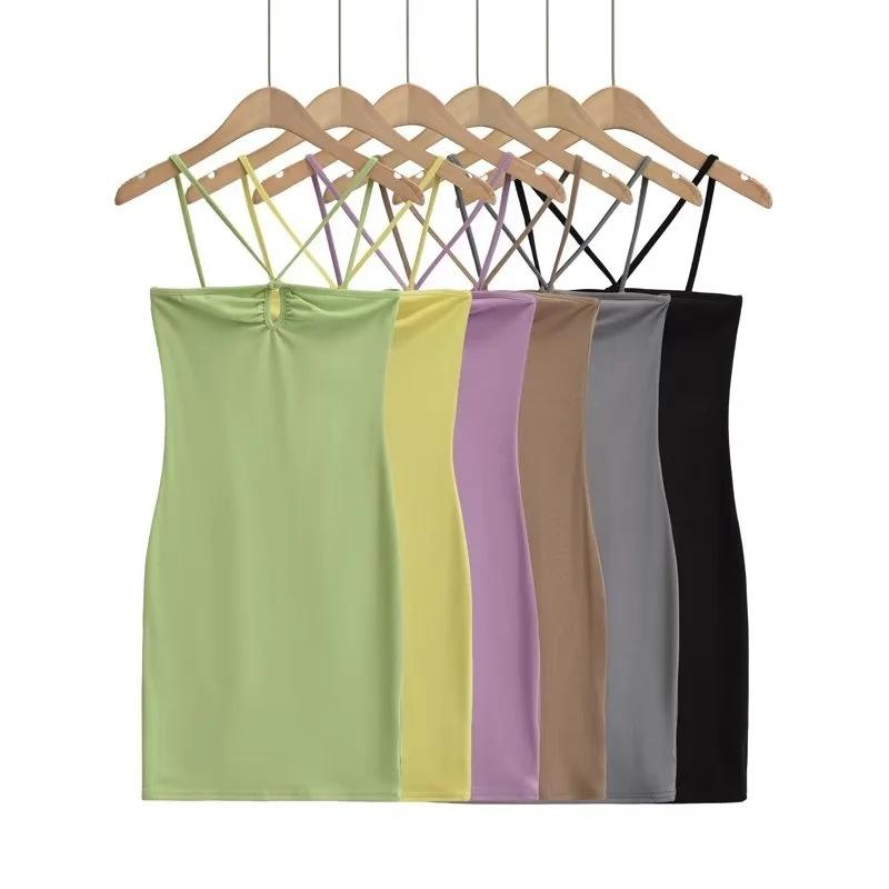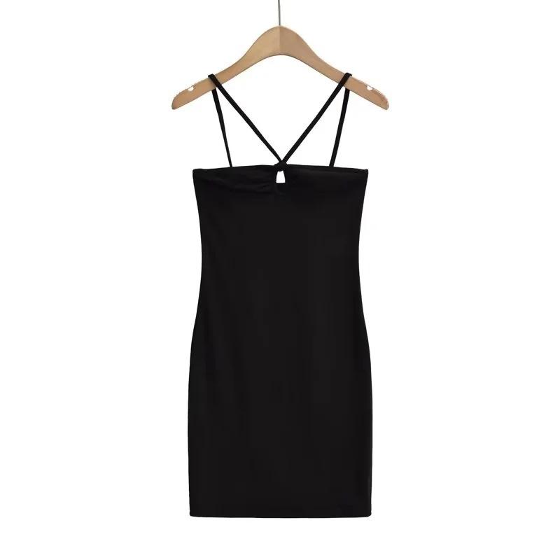 Vestido de tirantes planos sexy y hueco de estilo europeo y americano para mujer, nuevo vestido de verano de color sólido con tirantes ajustados, falda