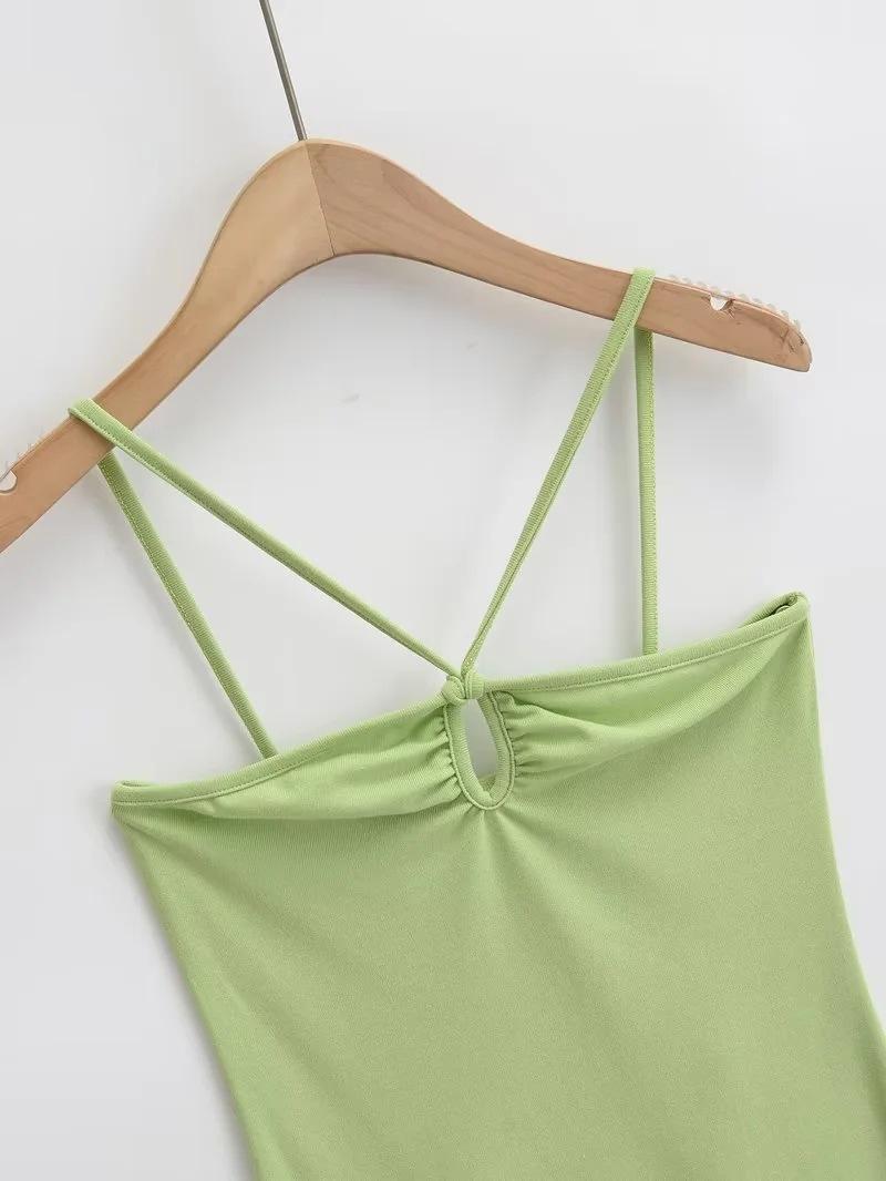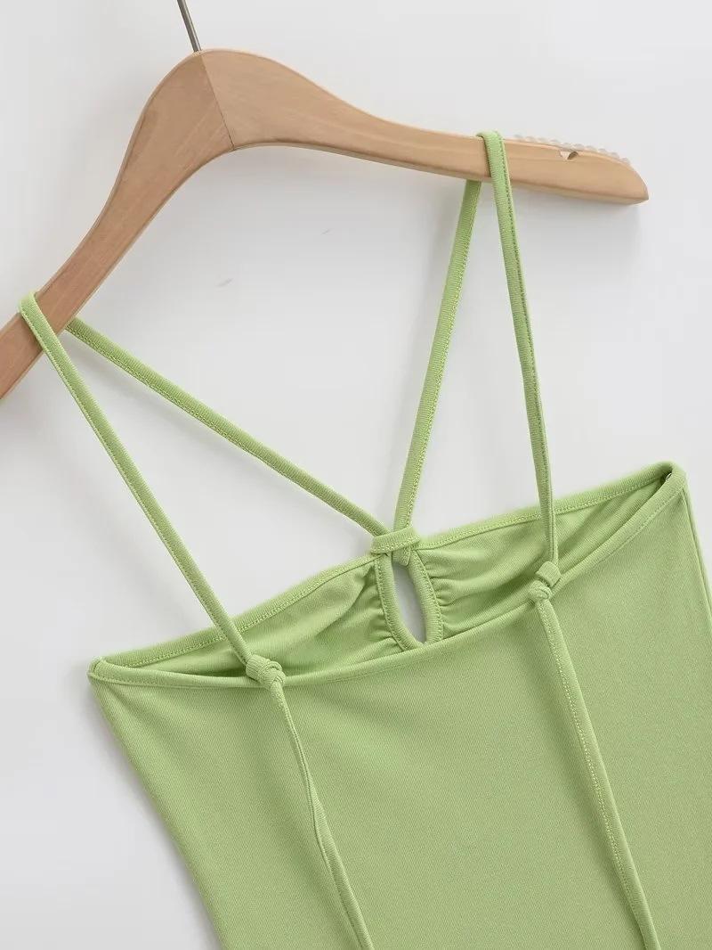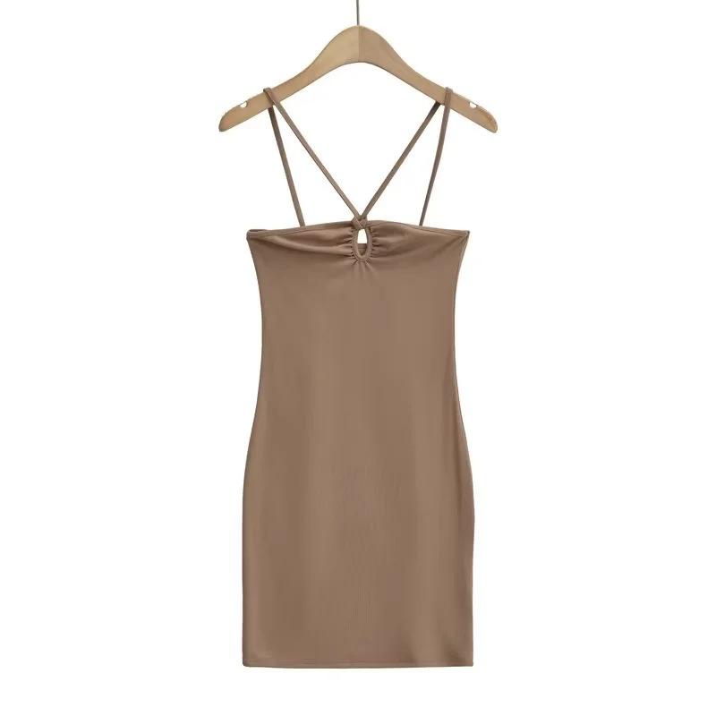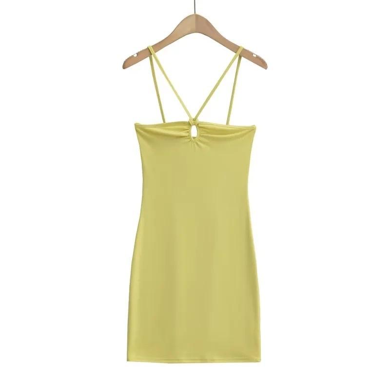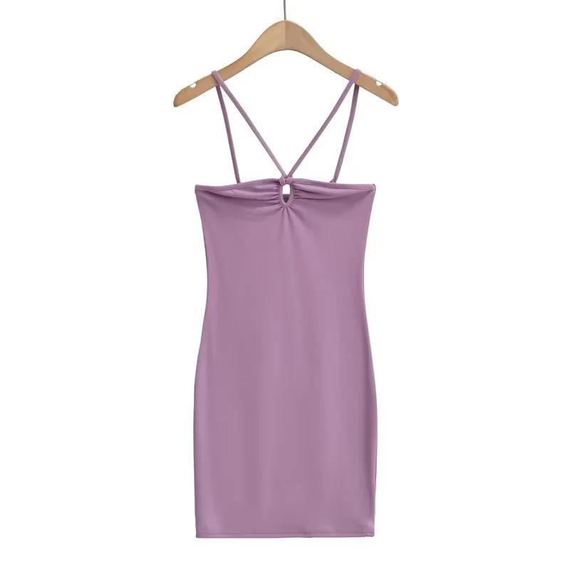 Vestido de tirantes planos sexy y hueco de estilo europeo y americano para mujer, nuevo vestido de verano de color sólido con tirantes ajustados, falda