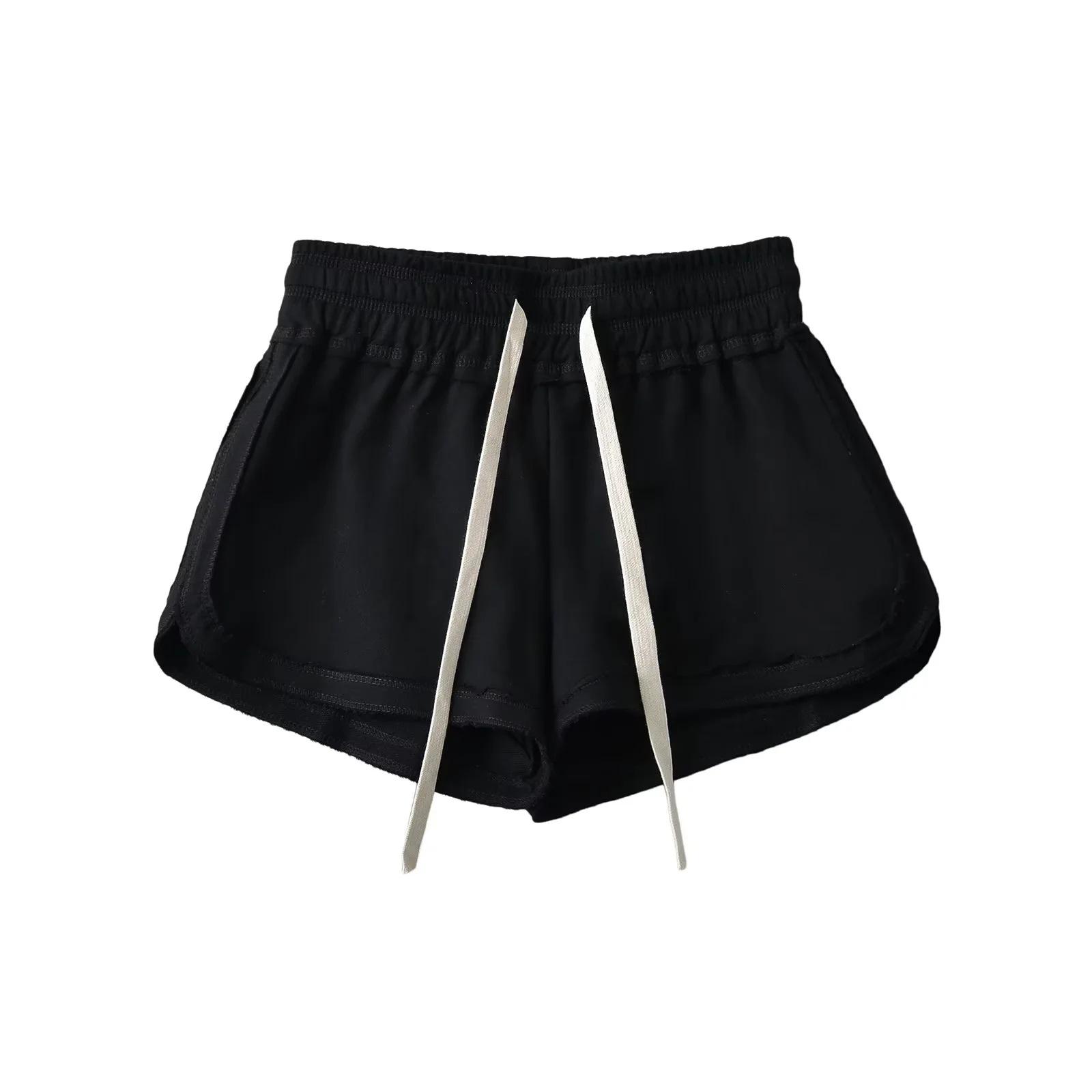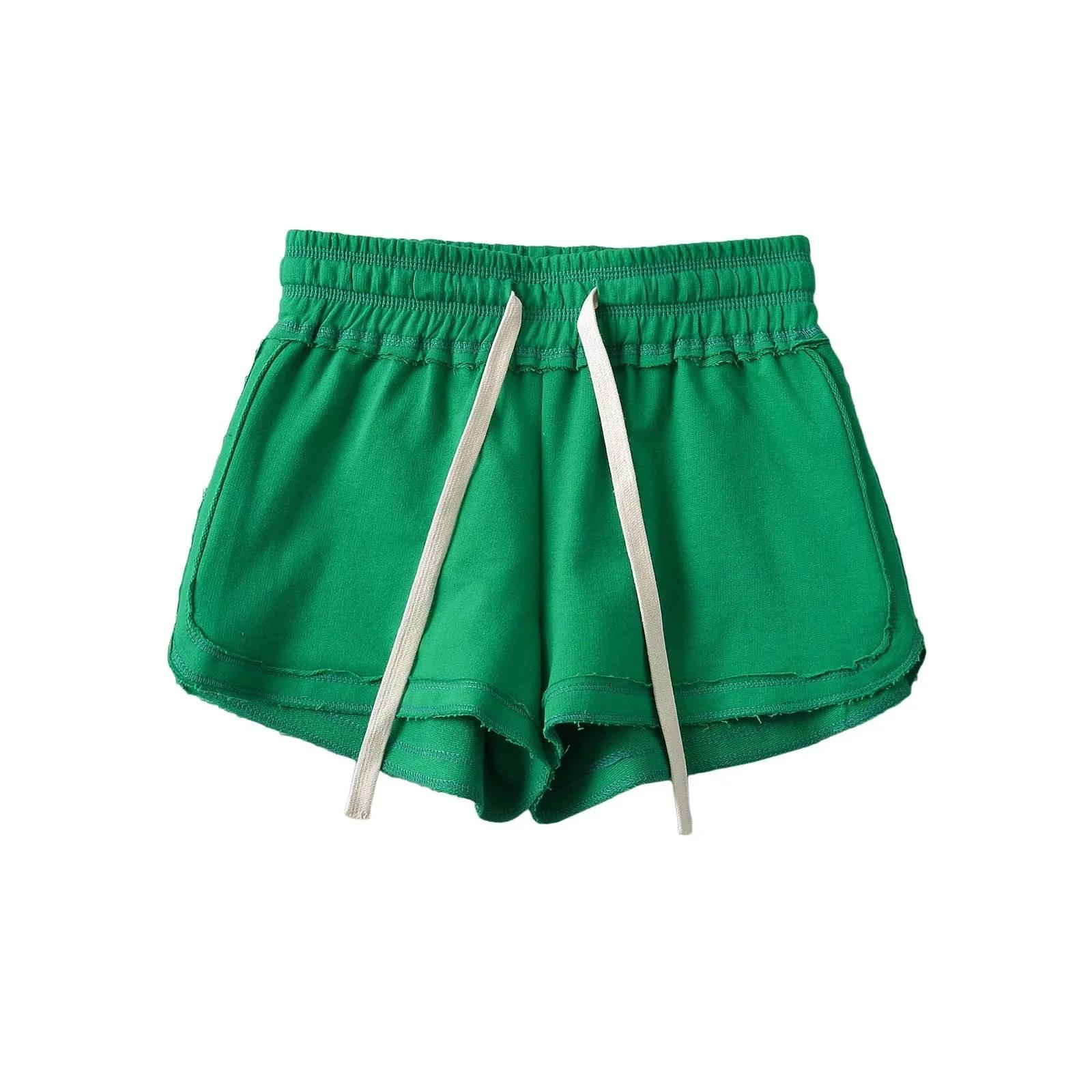 Pantalones cortos deportivos casuales de cintura baja de estilo europeo y americano para mujer, verano 2024, pantalones cortos sexis finos de tres puntos para chica sexy, pantalones cortos vintage americanos