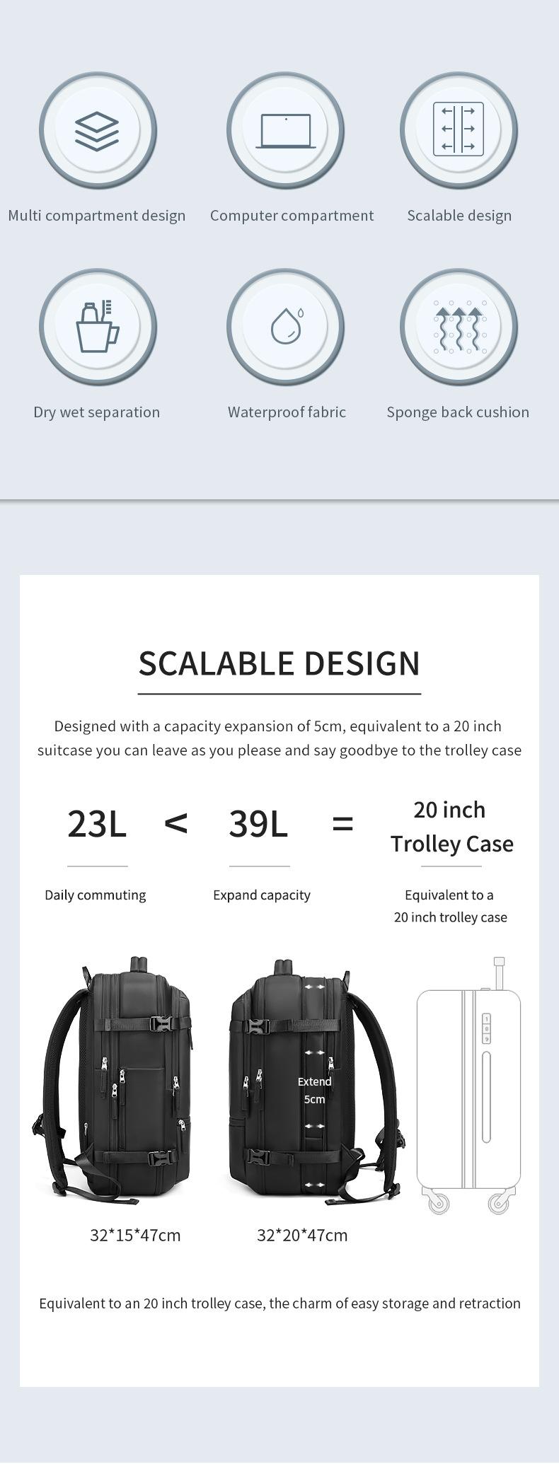 Mochila nueva de gran capacidad mochila multifuncional impermeable separación húmedo y seco bolsa de viaje escalable bolsa para computadora