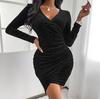 Vestido retro de terciopelo rojo con escote en V y efecto adelgazante para mujer, nuevo vestido tostado de otoño, vestido largo 4572