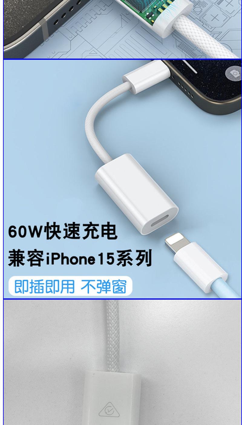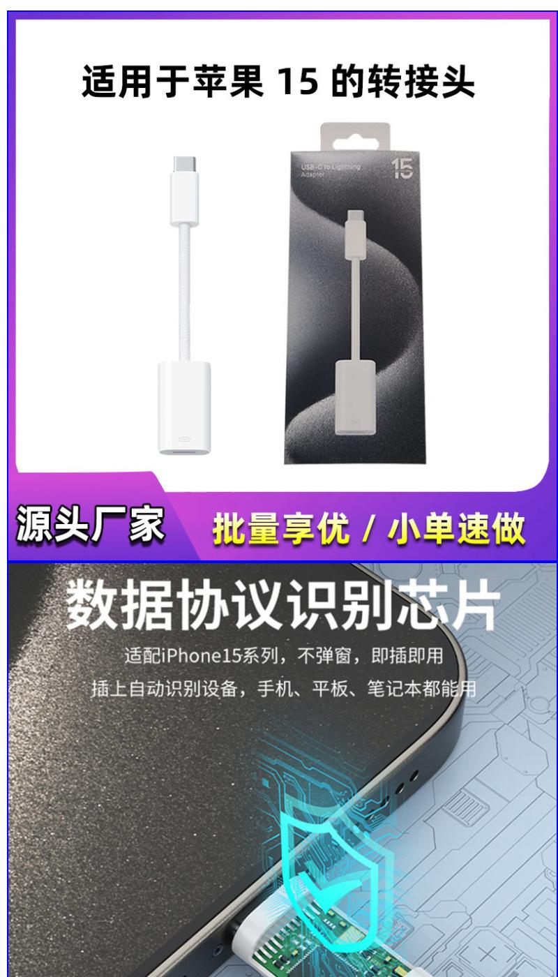 I15 Es Adecuado para Adaptador Apple 15C Tipo-C a Lightning Trenzado USB-C Convertidor Super Flash Carga Rápida
