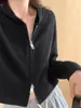 Abrigo corto con capucha y doble cremallera de diseño para mujer, cárdigan de punto con hilo elegante y nuevo de primavera y otoño.