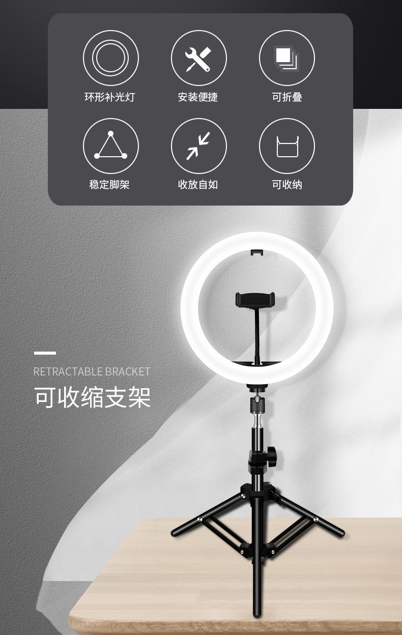 Luz de anillo LED de 10 pulgadas con temporizador automático para teléfono móvil, luz de belleza, luz de belleza para teléfono móvil, luz en vivo