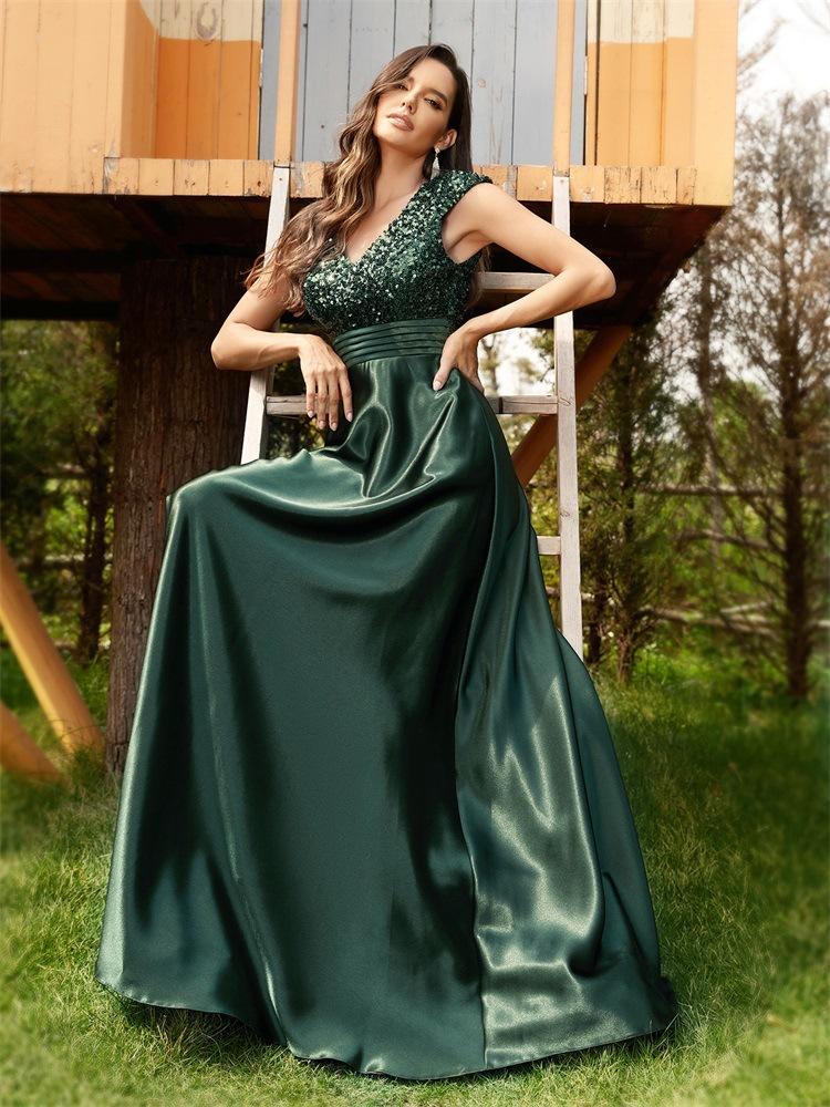 Vestido Europeo y Americano Vestido Amazon Vestido de Mujer 2025 Nuevo Fiesta Elegante Largo Escote en V Profundo Lentejuelas Vestido de Banquete