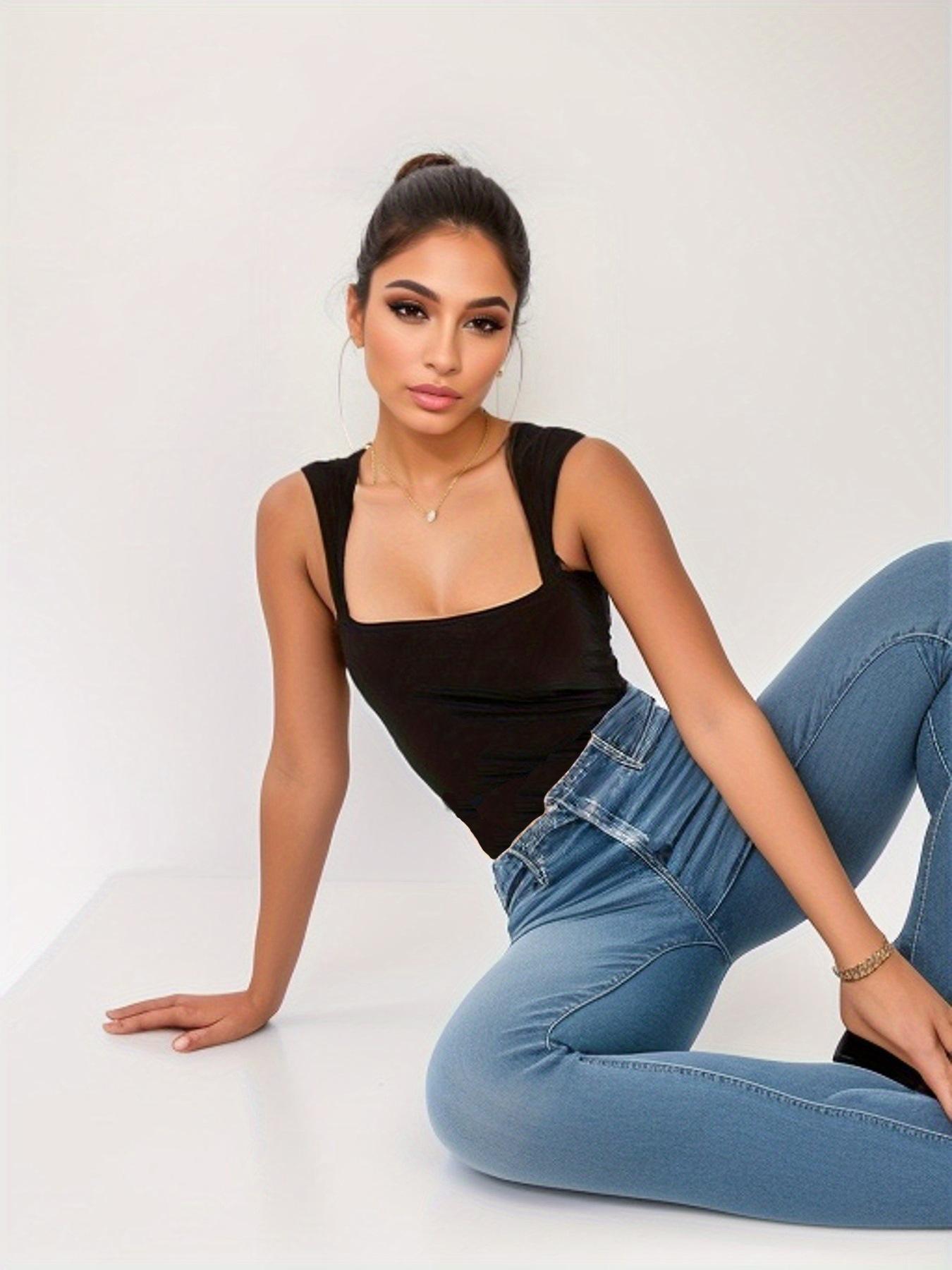 Estilo Europeo y Americano 2025 Primavera Nuevo Ropa de Mujer Sexy Ajustado Básico Elástico Chaleco Sin Mangas Top de Una Pieza