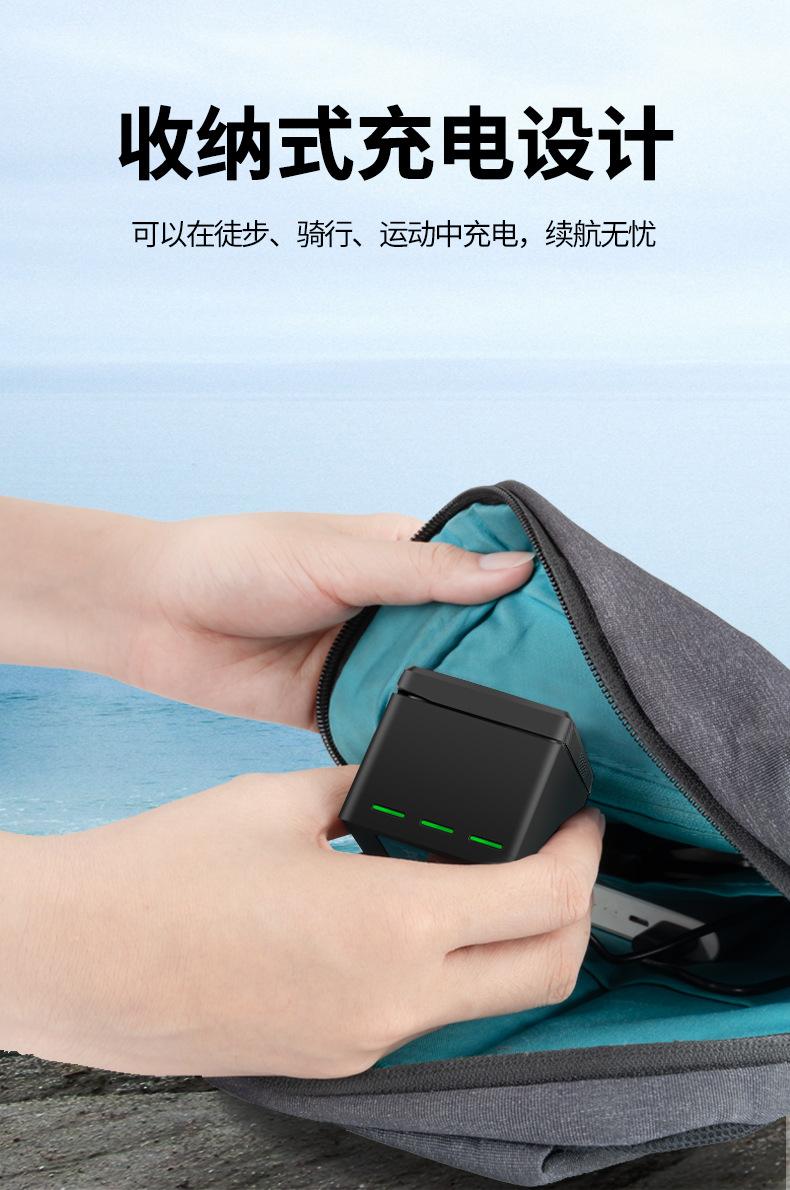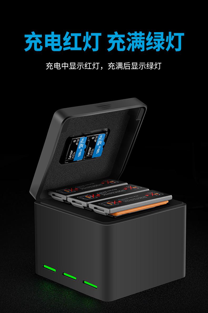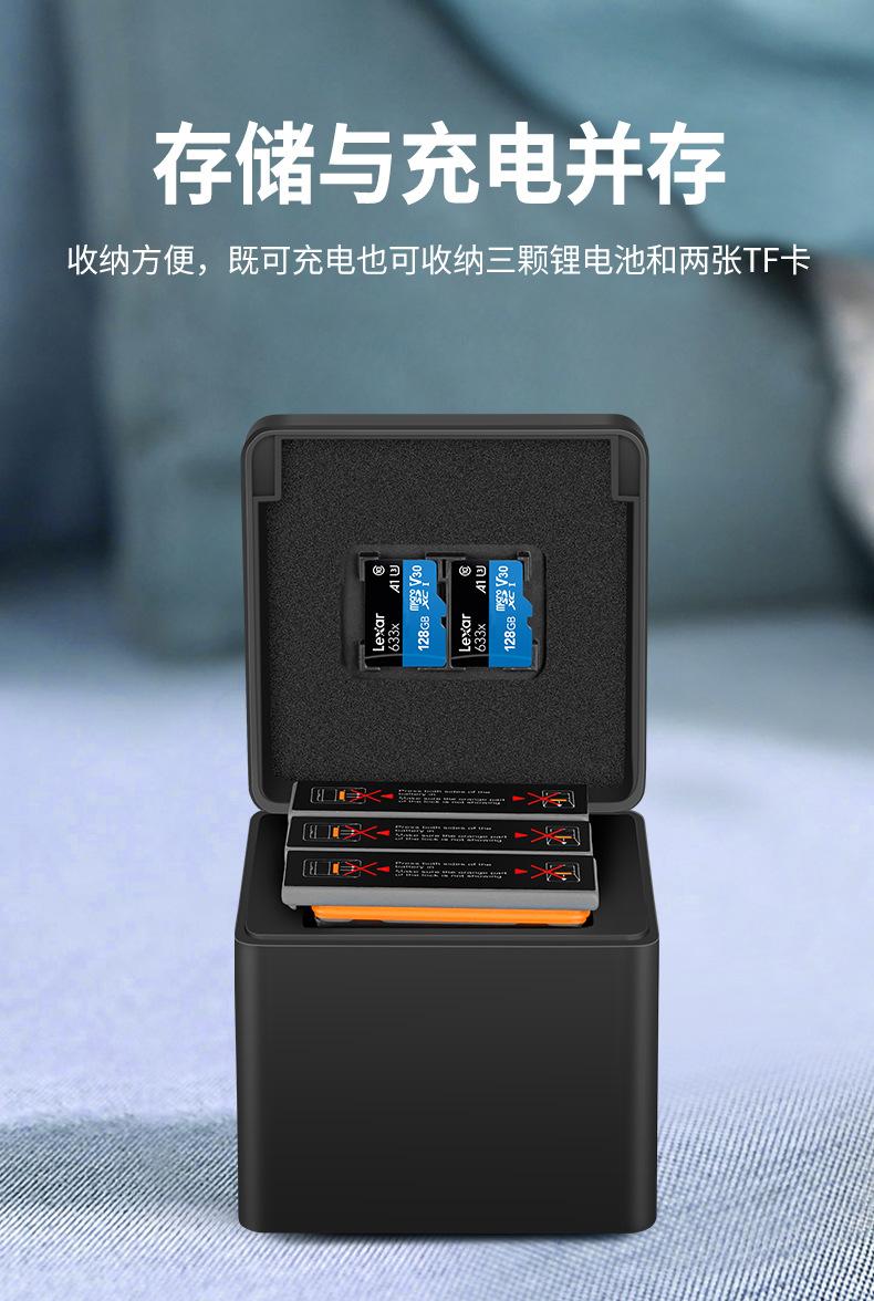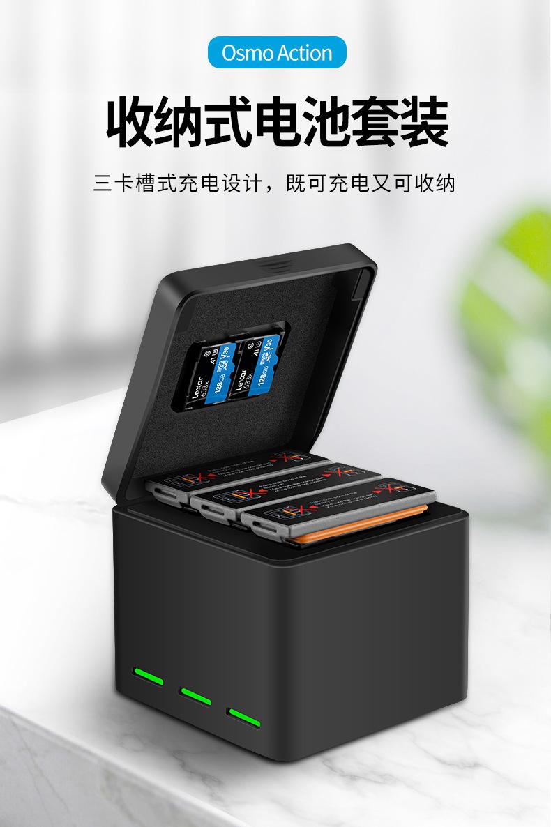 Adecuado para cargador de batería de cámara DJI OSMO ACTION tres cargadores caja de almacenamiento