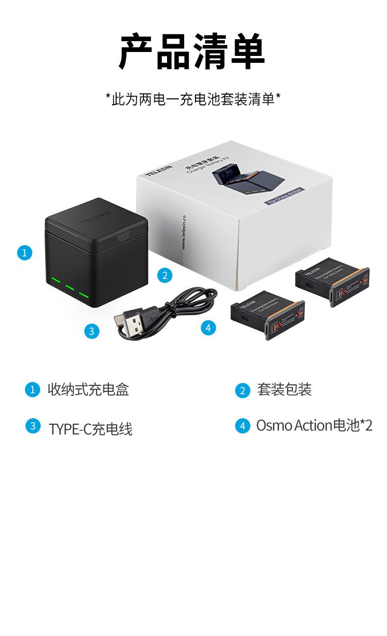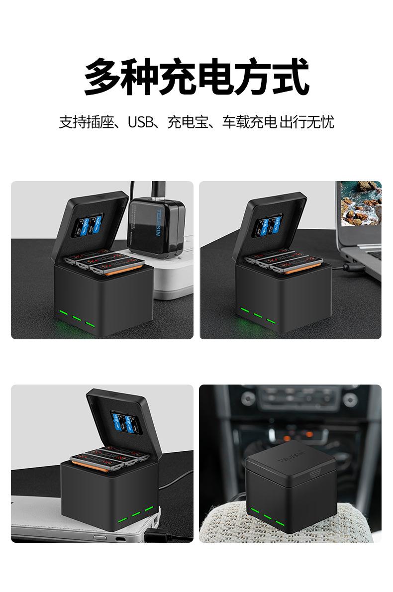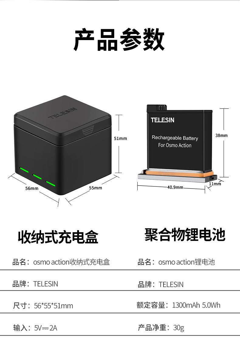 Adecuado para cargador de batería de cámara DJI OSMO ACTION tres cargadores caja de almacenamiento