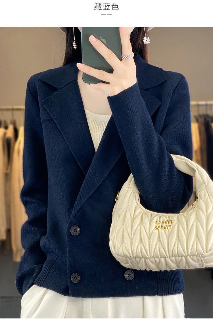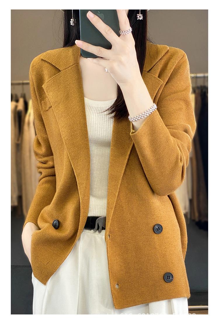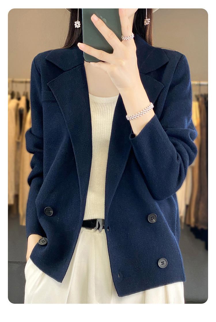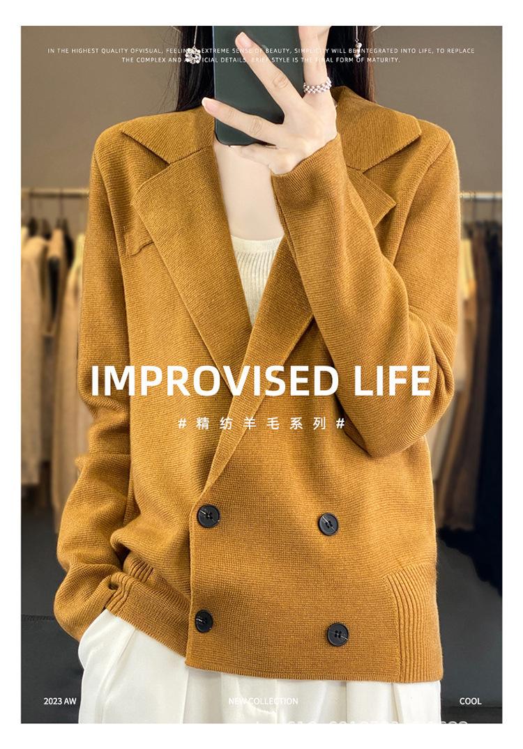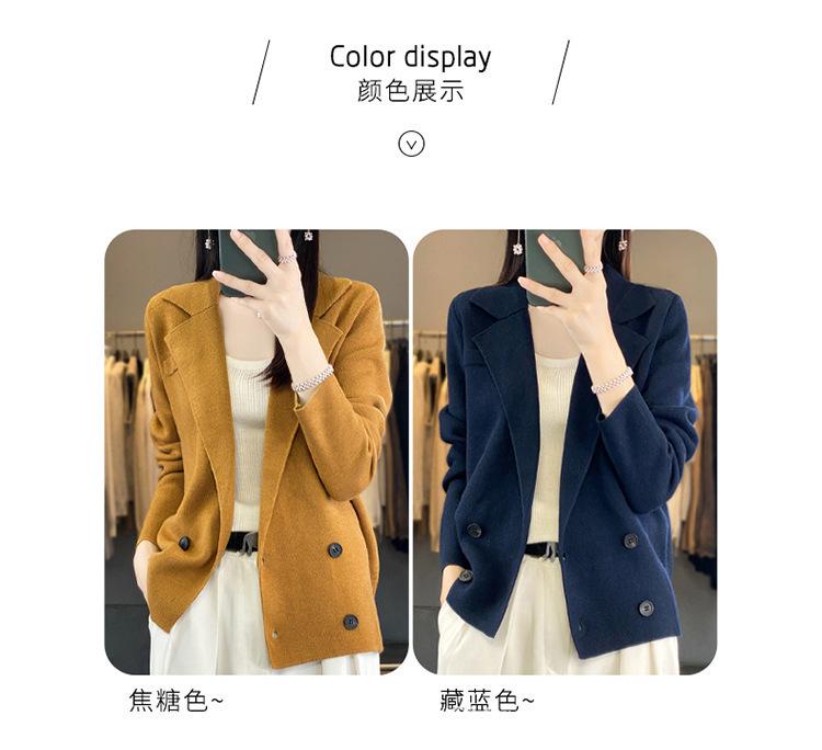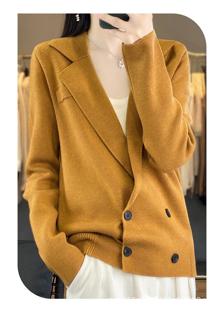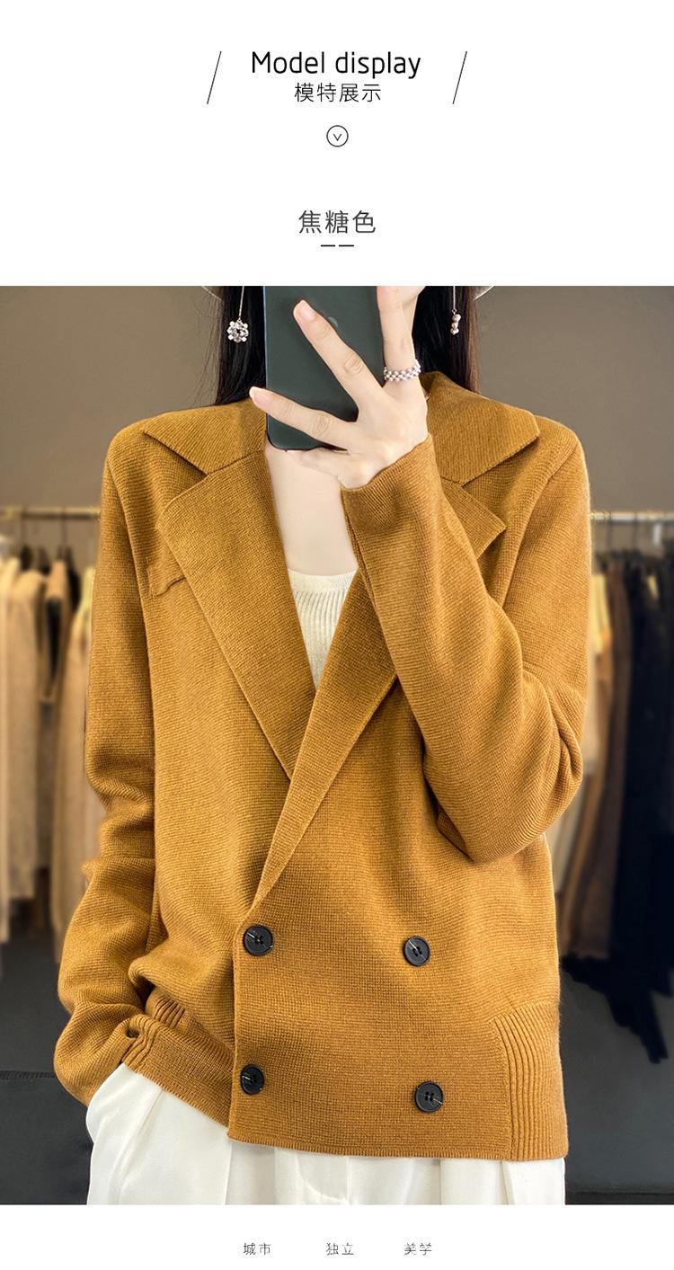 Suéter de Otoño e Invierno para Exterior con Cuello Vuelto, Elegante Cuello de Traje, Suéter Casual de Punto Fino de Lana de Doble Botonadura para Mujer