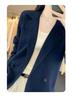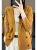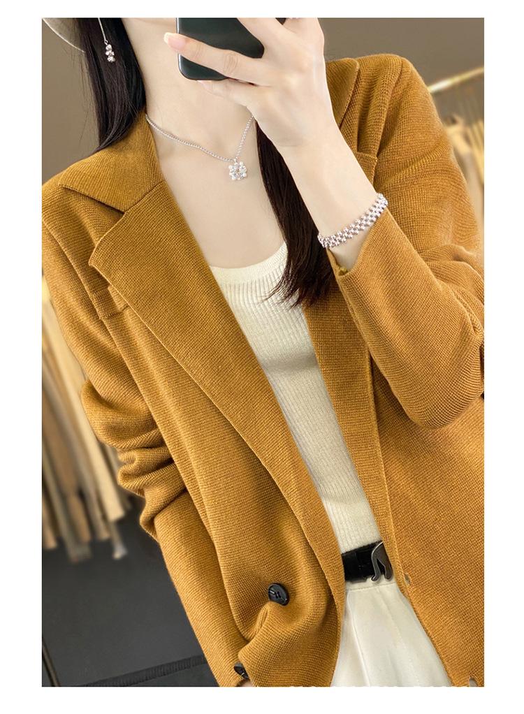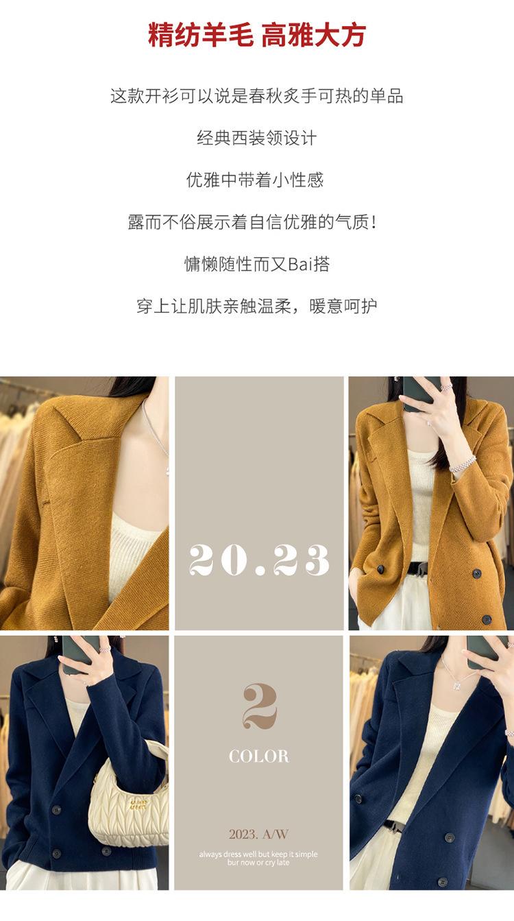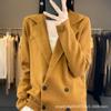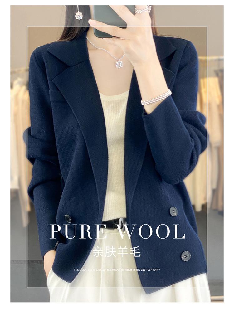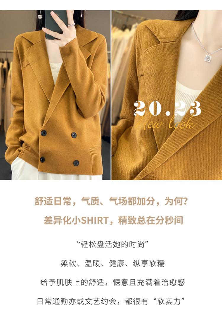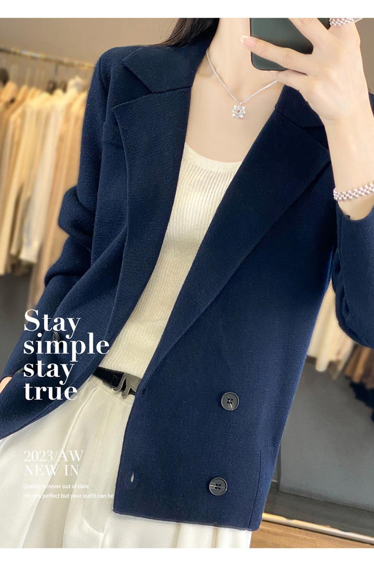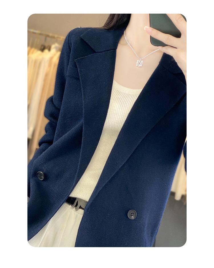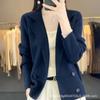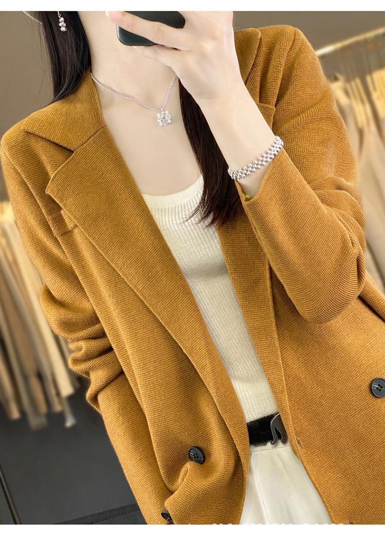 Suéter de Otoño e Invierno para Exterior con Cuello Vuelto, Elegante Cuello de Traje, Suéter Casual de Punto Fino de Lana de Doble Botonadura para Mujer