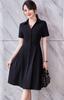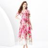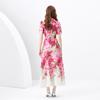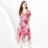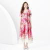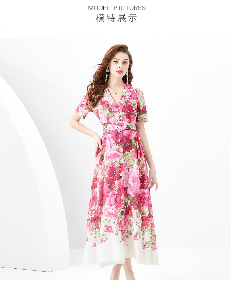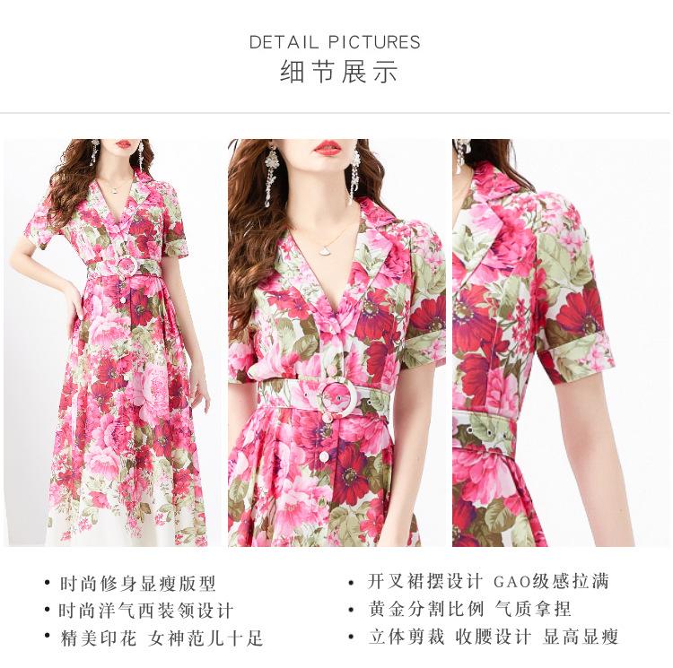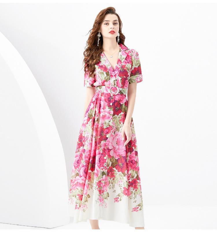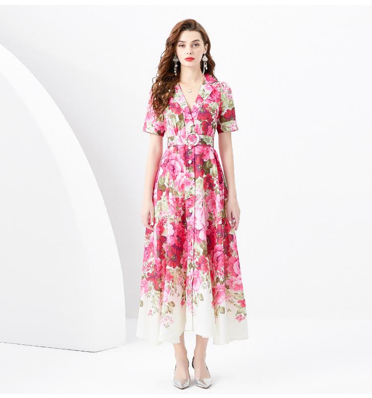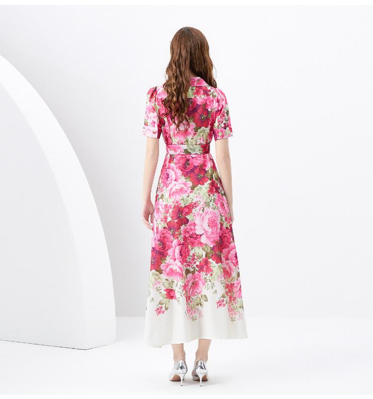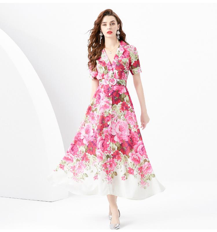 Vestido largo estampado con cuello de traje, manga corta, ancho y ondulado, estilo festivo de primavera y verano 2024