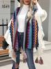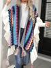Europeo y Americano Nuevo Otoño e Invierno 2023 Estilo Amazon Cuello en V de Alta Gama Color Arcoíris Borla Capa Chal Suéter Cárdigan