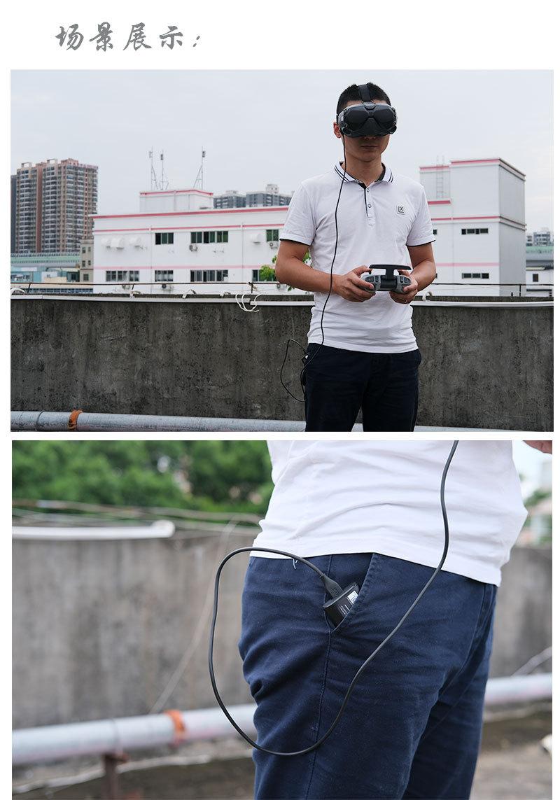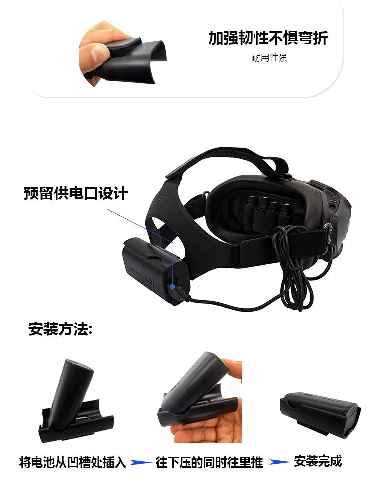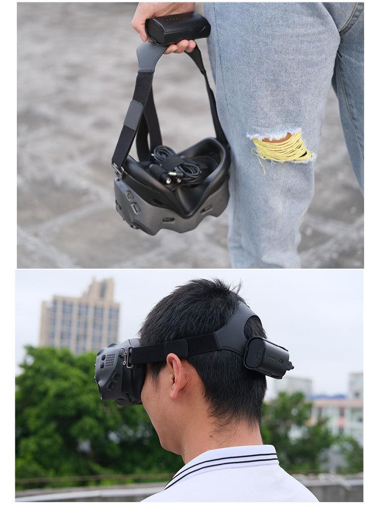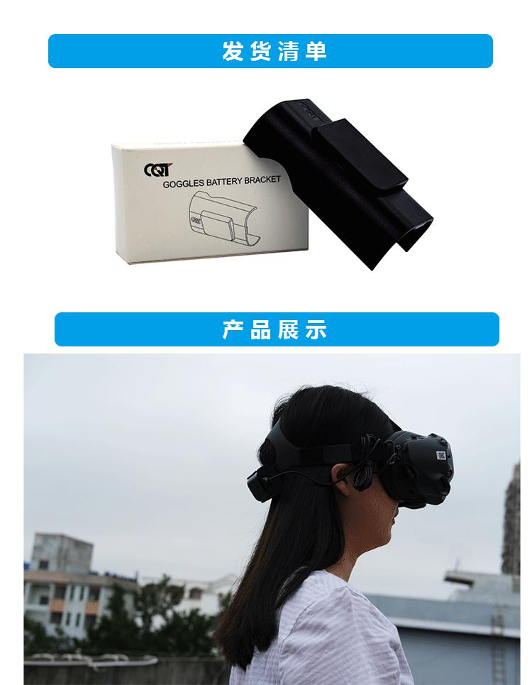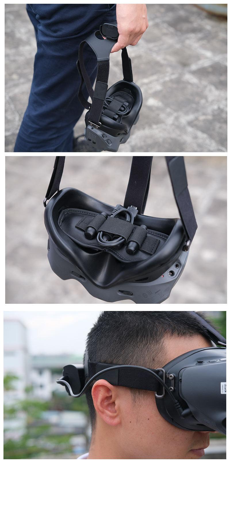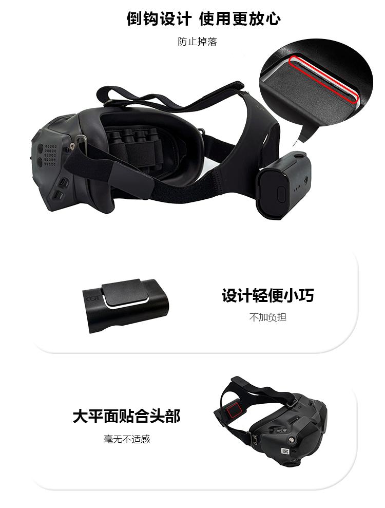 El clip trasero para batería de las gafas de vuelo FPV V2 puede colgar la batería en la parte trasera, integrando la batería y las gafas.