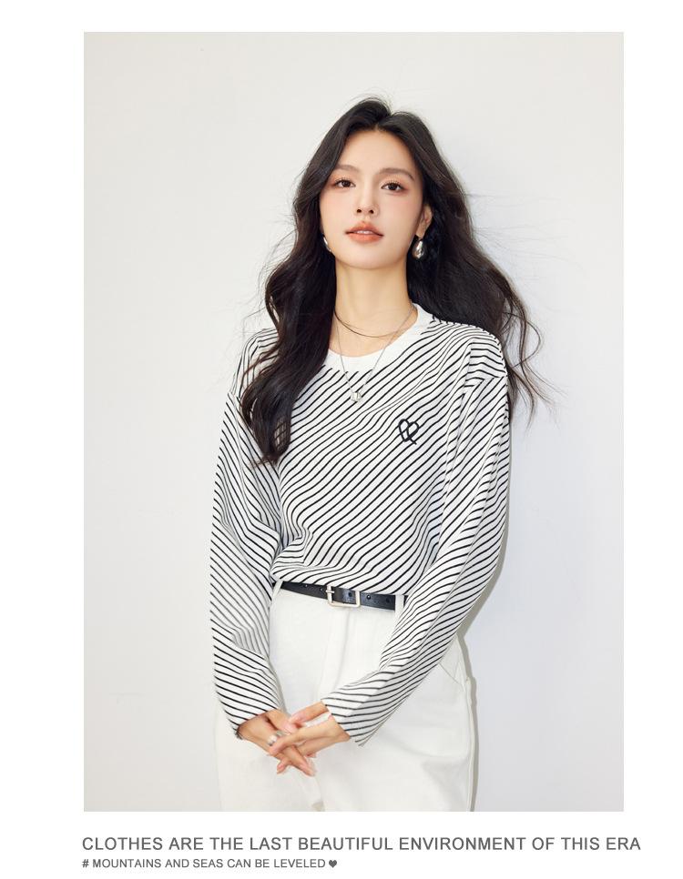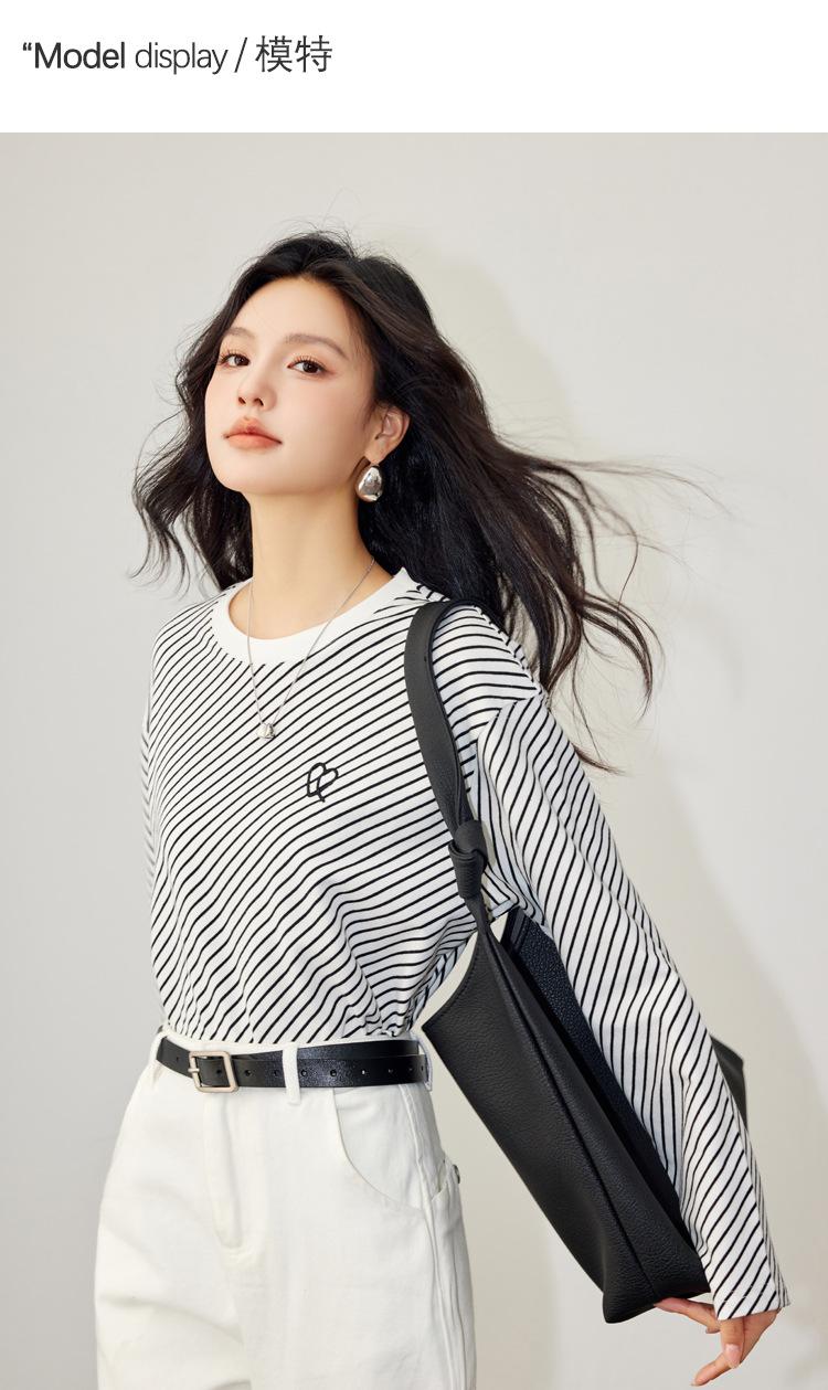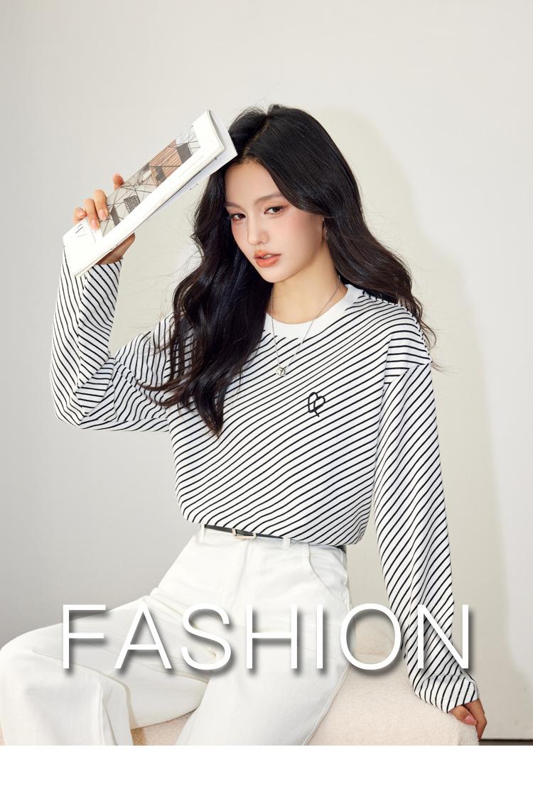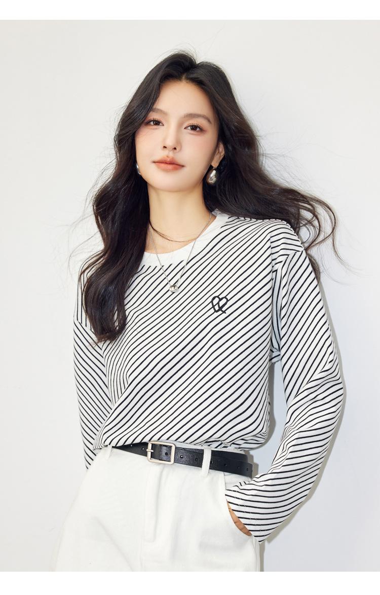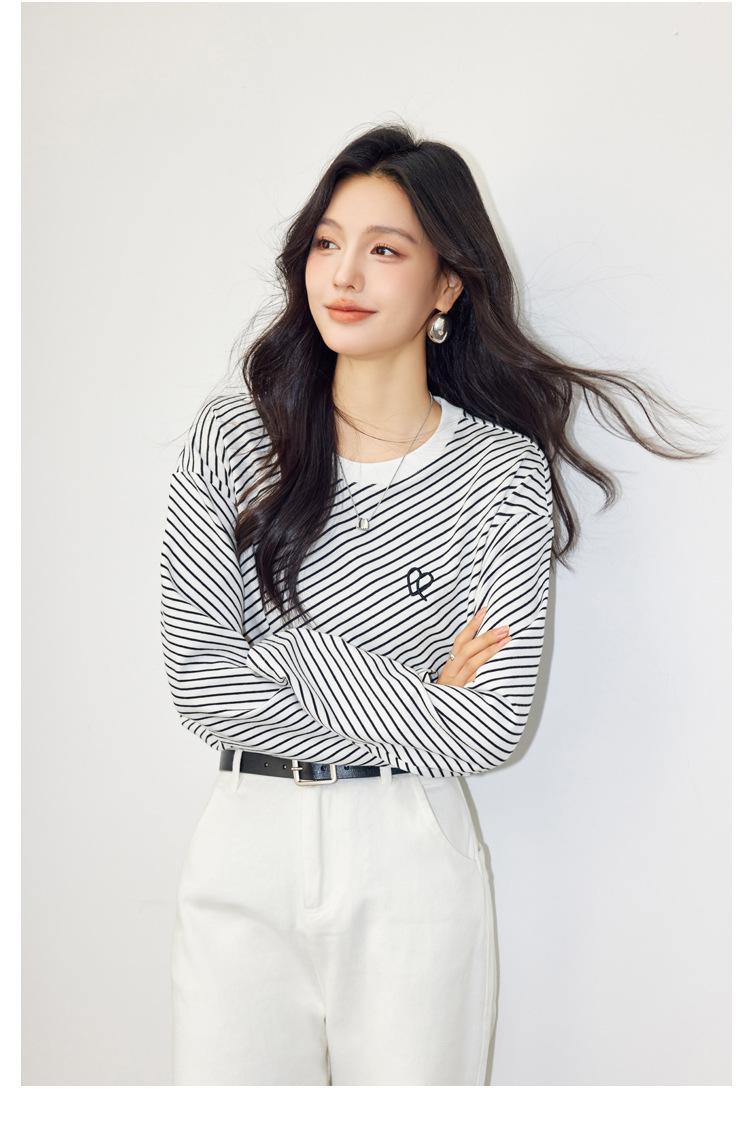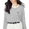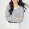Camiseta vintage informal de manga larga para mujer, nueva camiseta básica de 2024, cuello redondo, holgada, adelgazante, combinable, a rayas, moderna.
