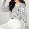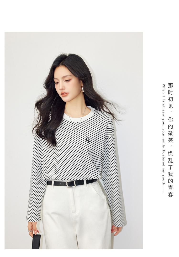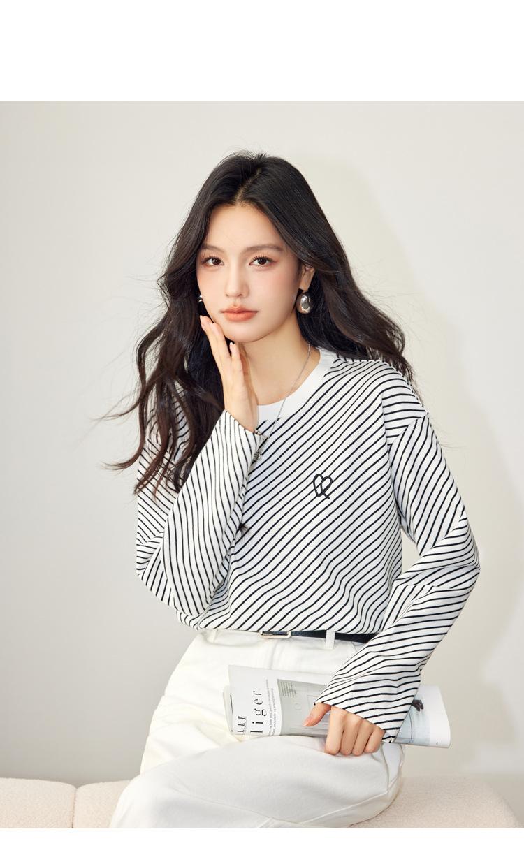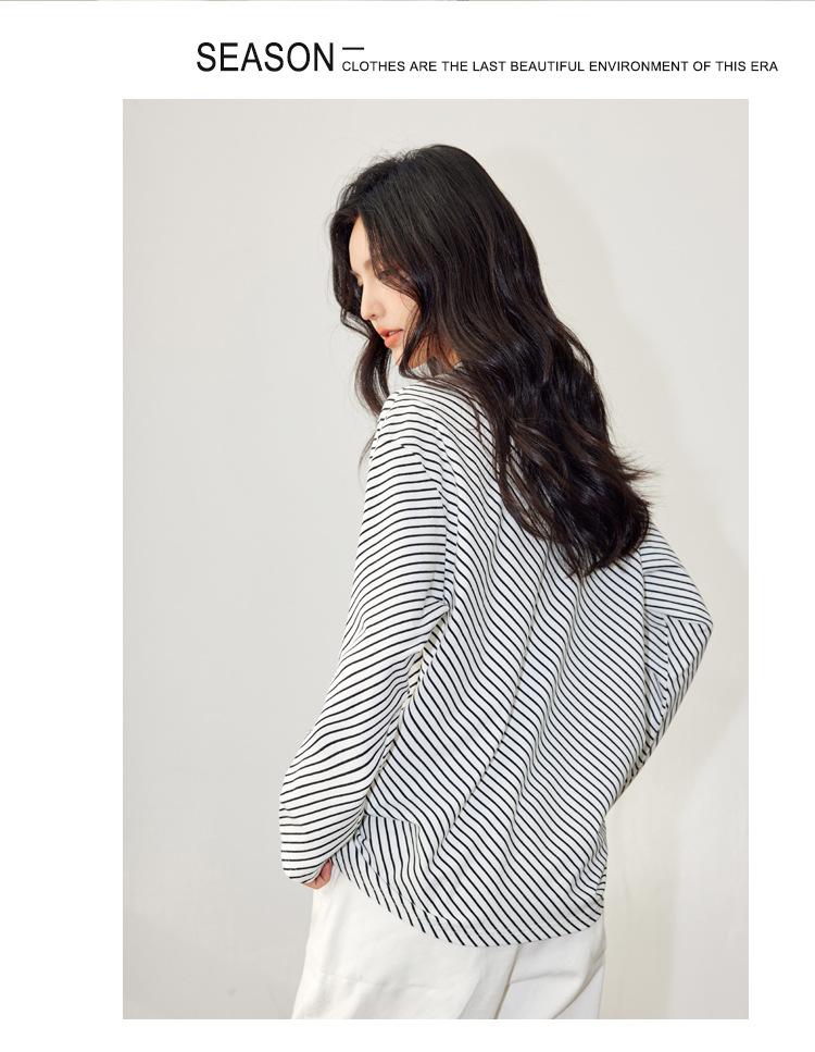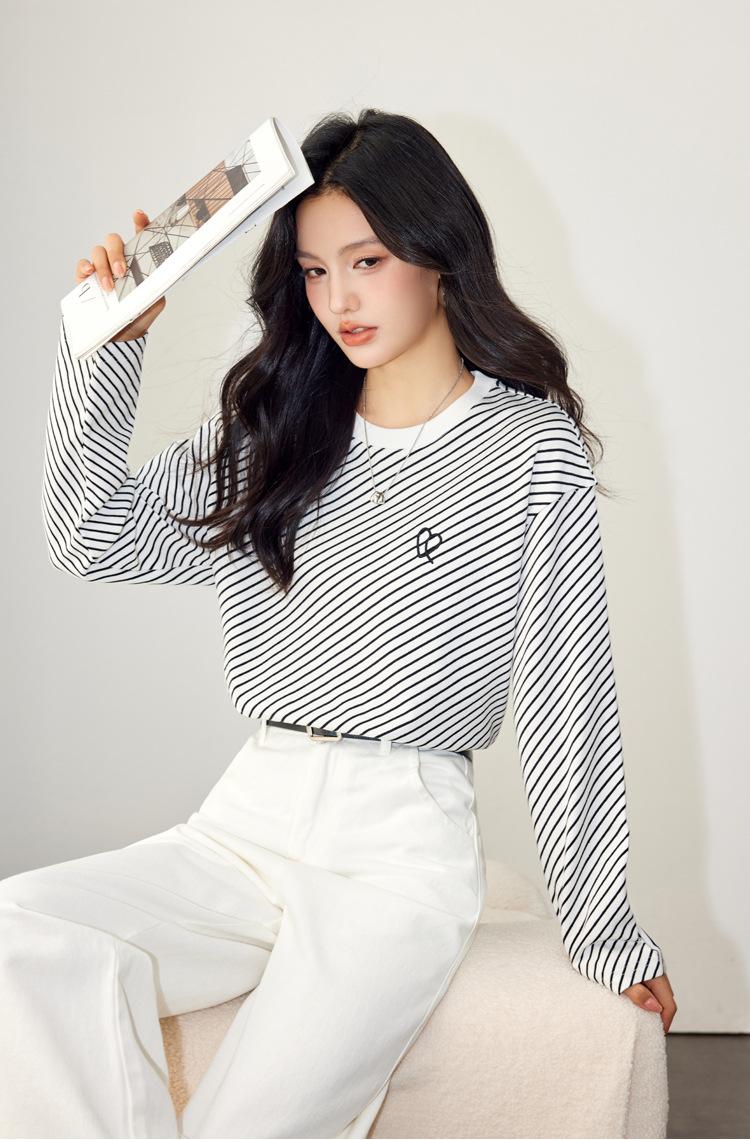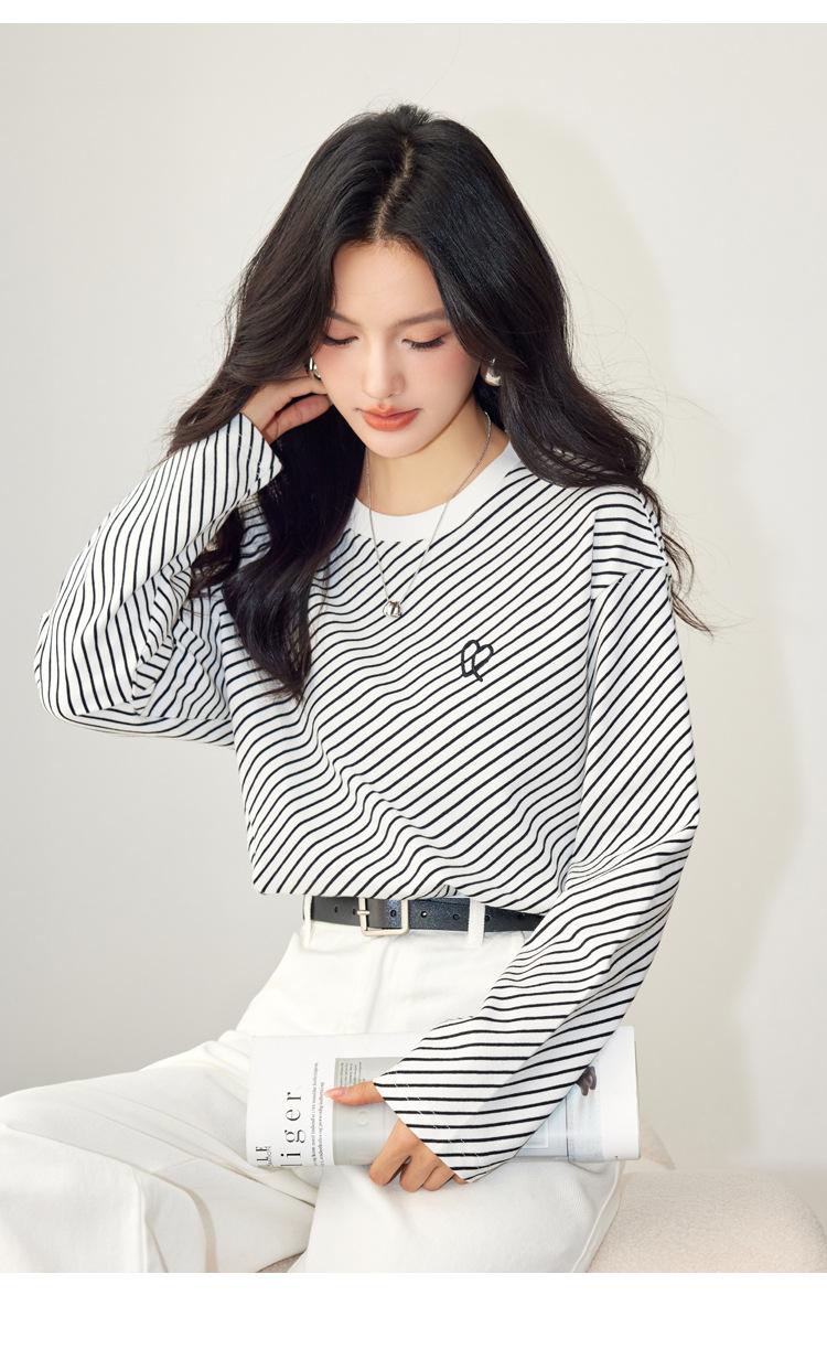Camiseta vintage informal de manga larga para mujer, nueva camiseta básica de 2024, cuello redondo, holgada, adelgazante, combinable, a rayas, moderna.