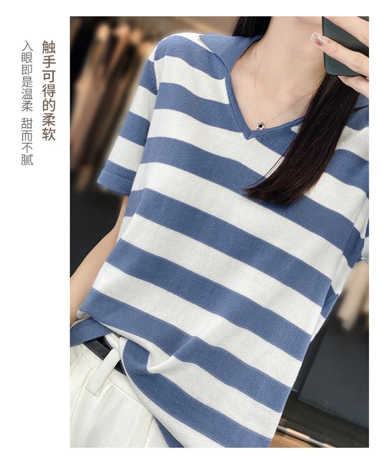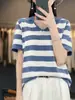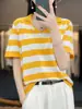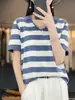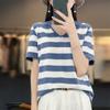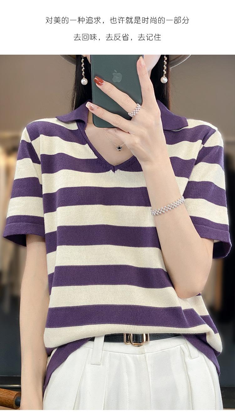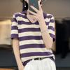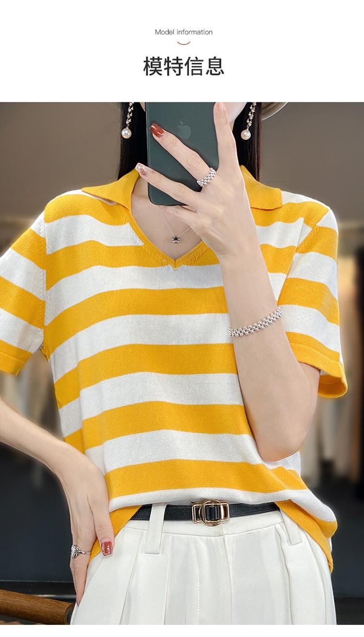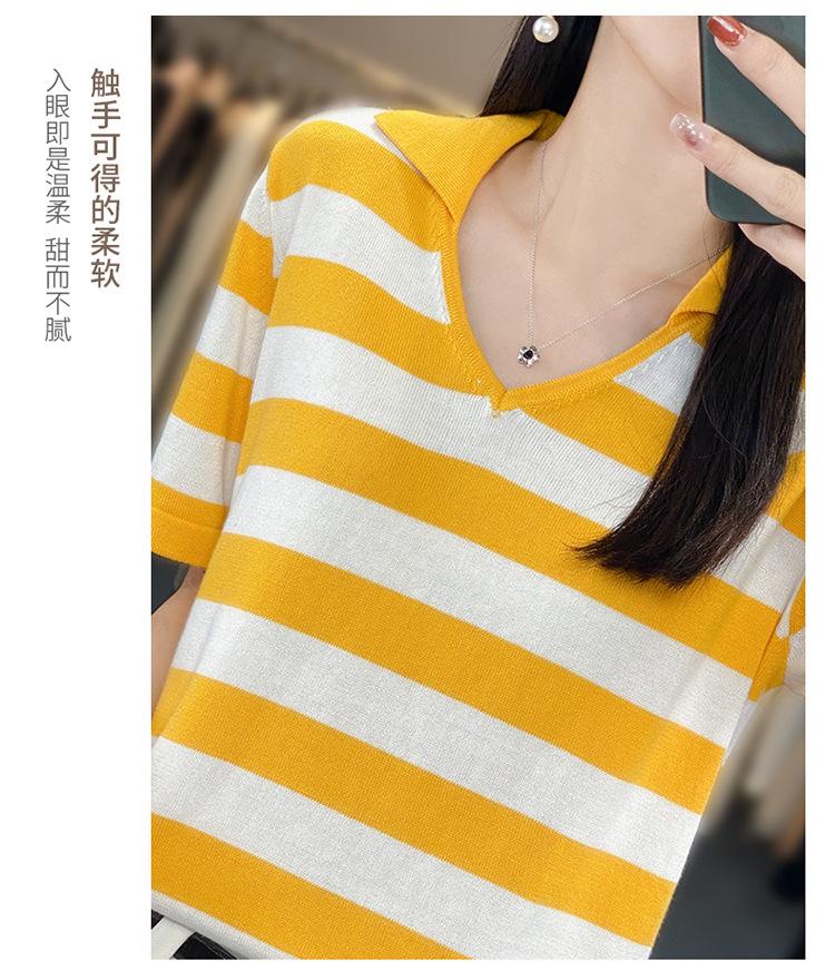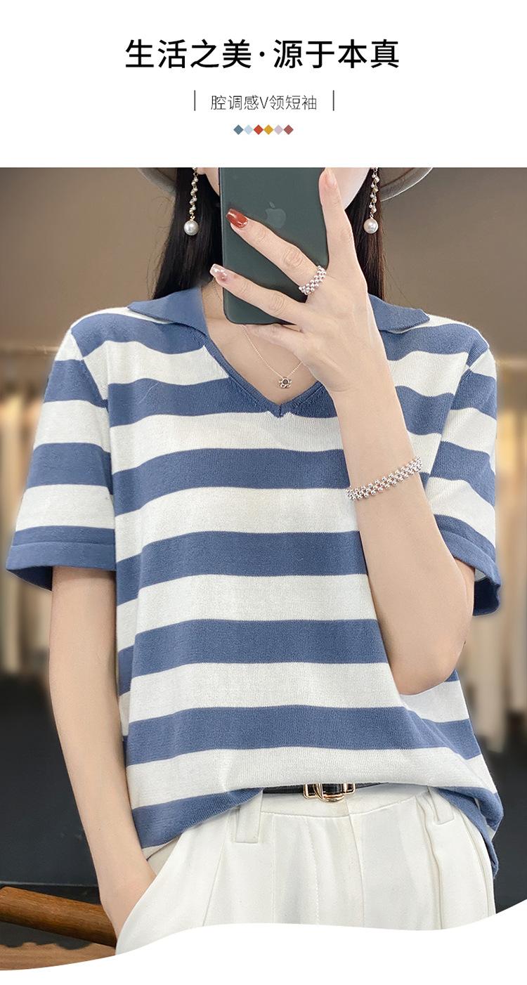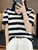 Polo de Algodón Cuello Rayado Manga Corta Solapa Manga Media 2024 Verano Nuevo Estilo Coreano Camiseta Holgada Top de Mujer