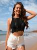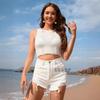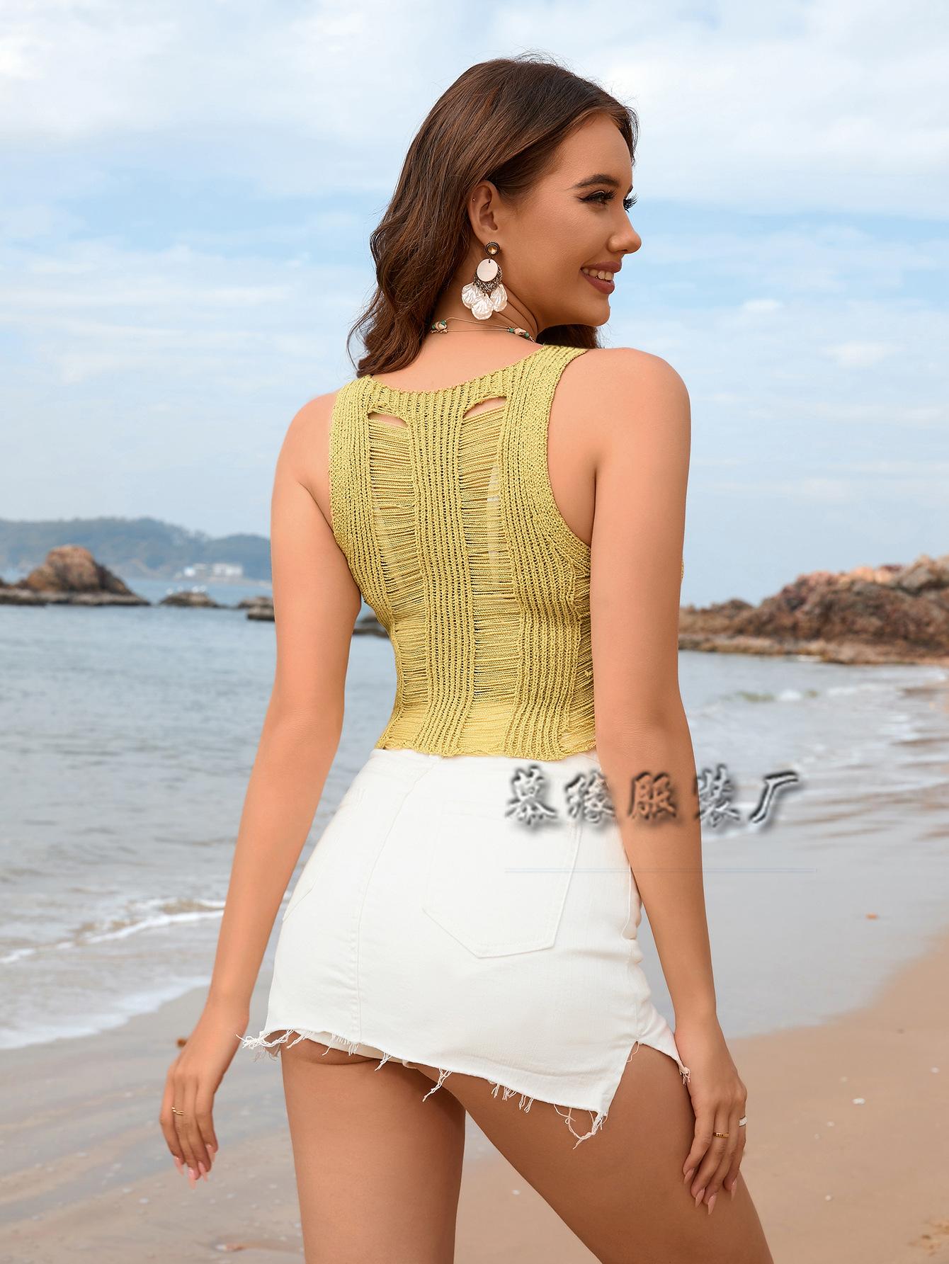 2024 Primavera y Verano Amazon Nuevo Algodón Ajustado Camisola Hueco Color Sólido Blanco Estilo Europeo y Americano Chaleco Pequeño