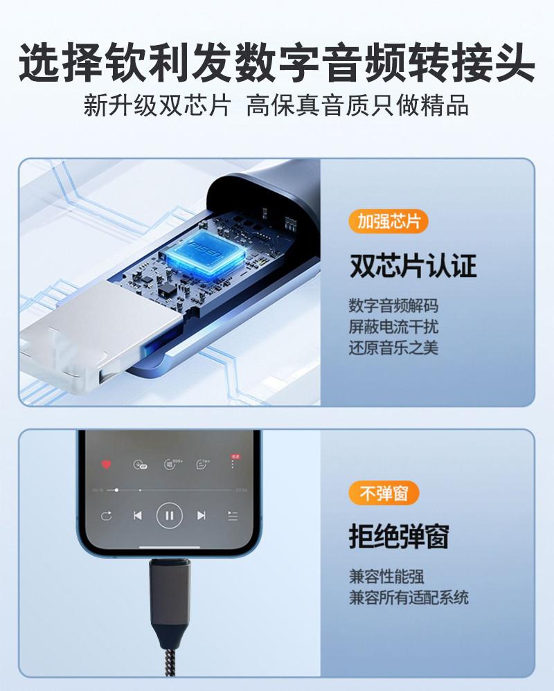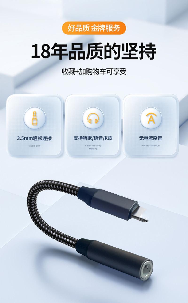 Apple to 3.5mm decoding original model (supports listening to music, wired control, audio, calls, u-shield, li...