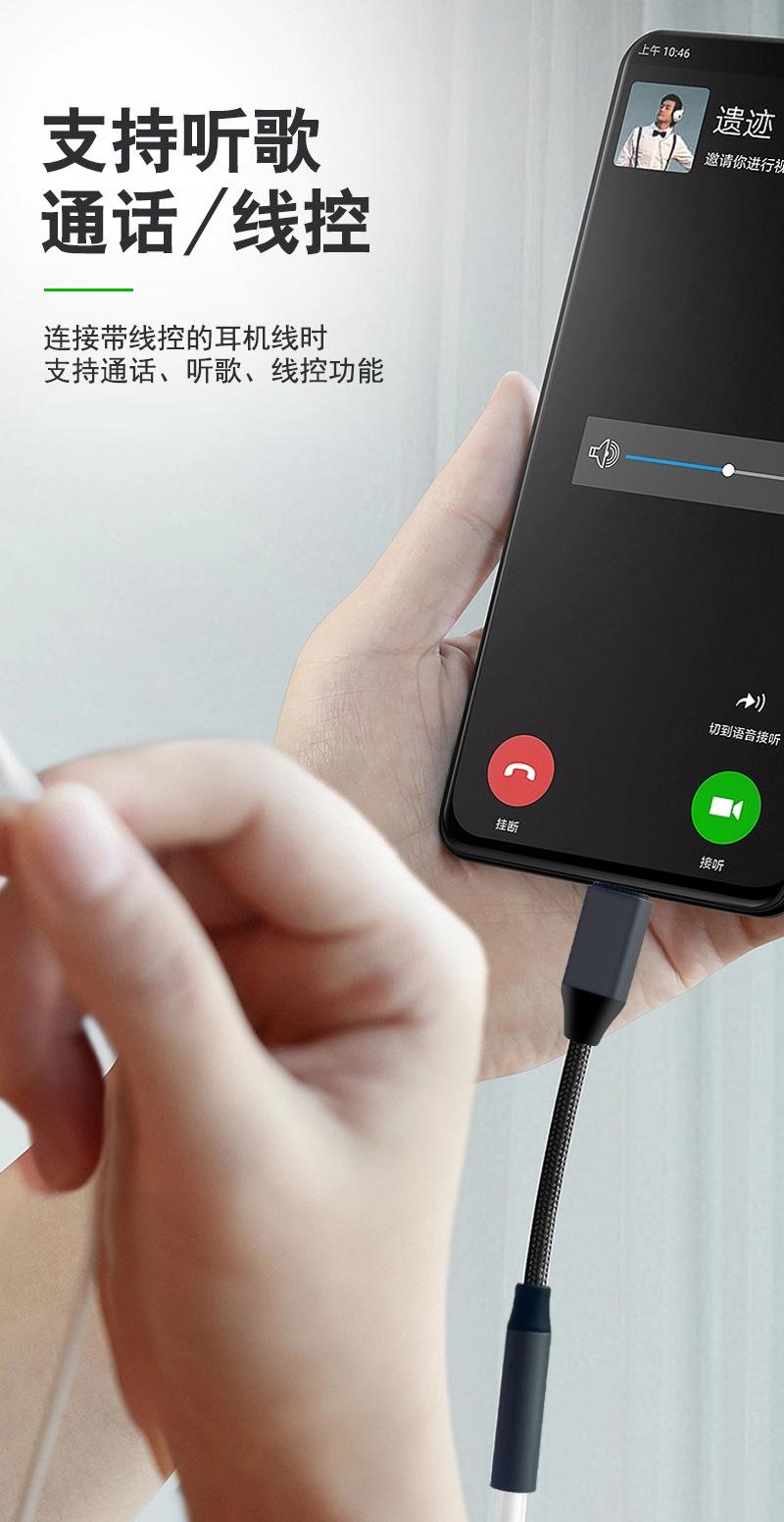 Apple to 3.5mm decoding original model (supports listening to music, wired control, audio, calls, u-shield, live broadcast) metal aluminum shell dark green