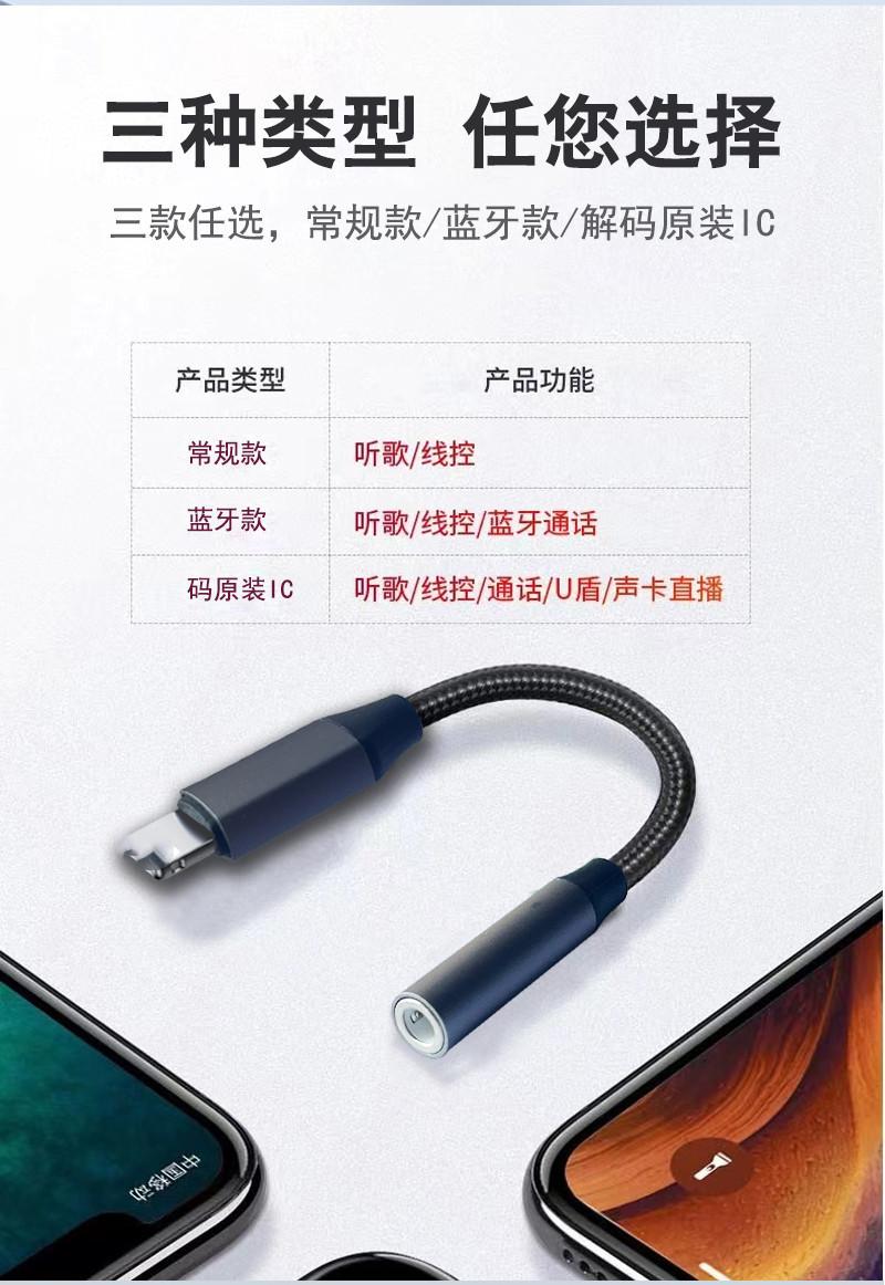 Apple to 3.5mm decoding original model (supports listening to music, wired control, audio, call, u shield, live broadcast) metal aluminum shell