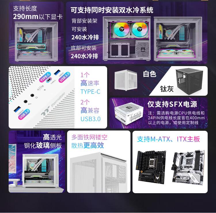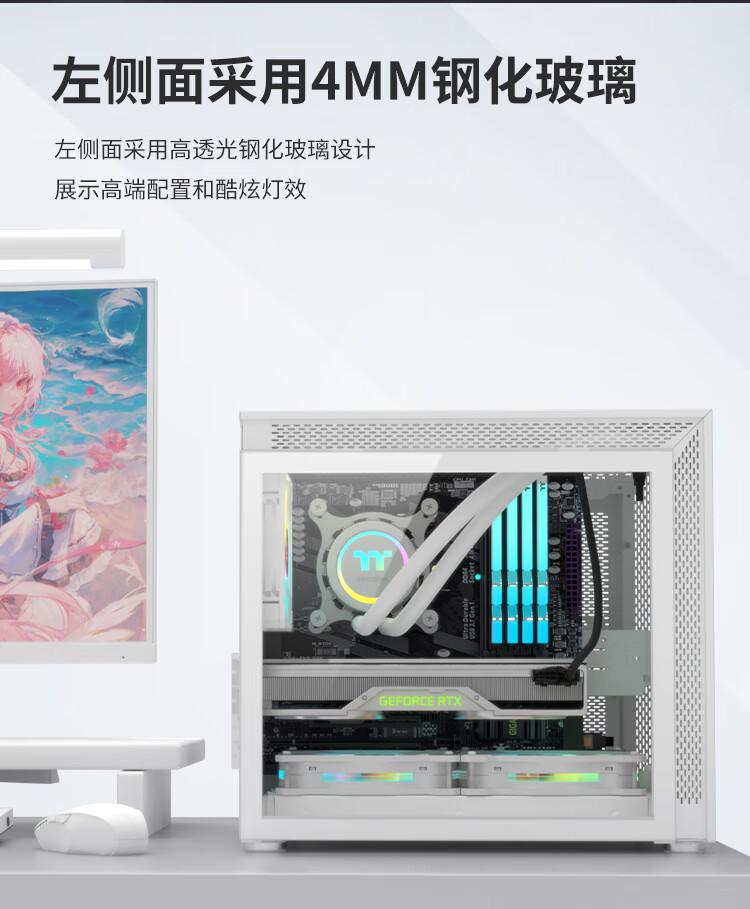 Mini computadora de escritorio TT, carcasa principal de PC, carcasa de juego eléctrica lateral de vidrio templado refrigerada por agua