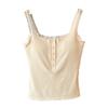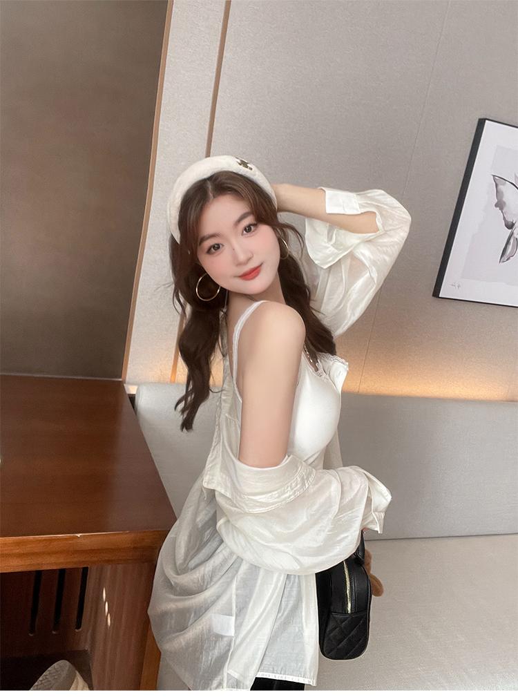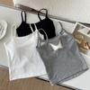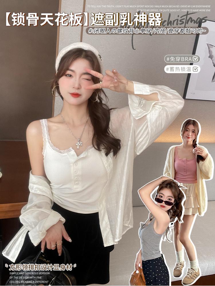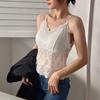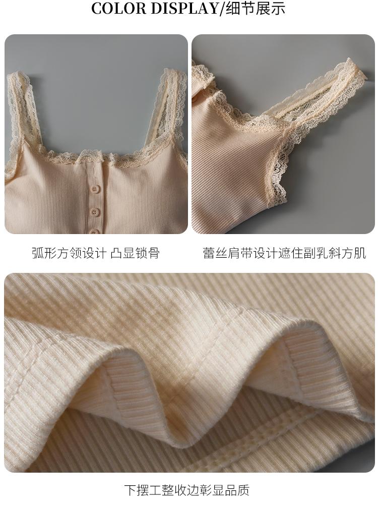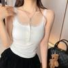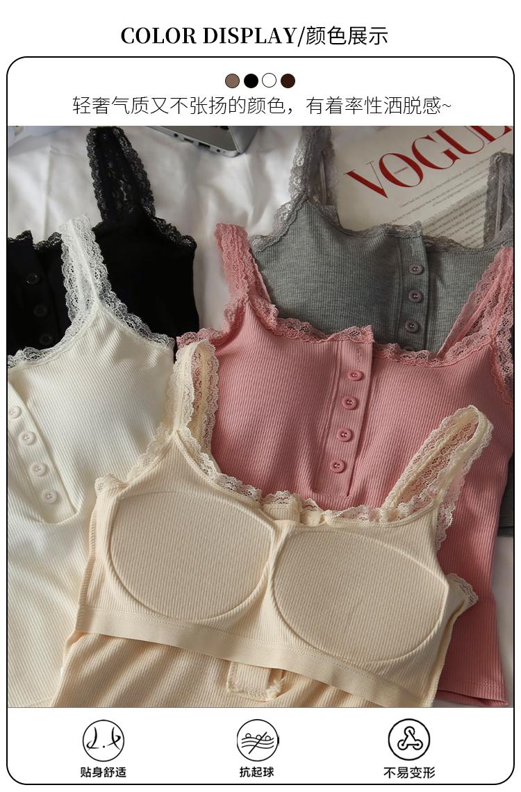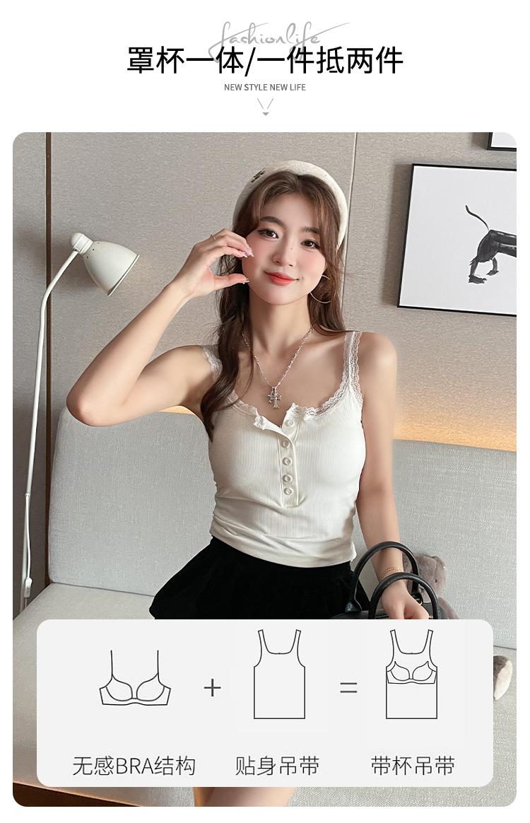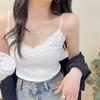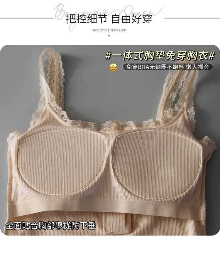 Camisola blanca para mujer, verano 2024, nueva prenda interior con tirantes finos y almohadillas en el pecho, base de encaje integrada para uso exterior.