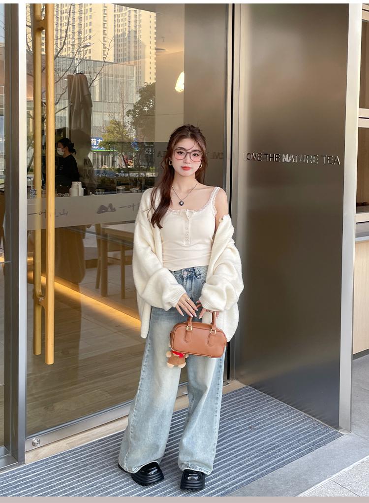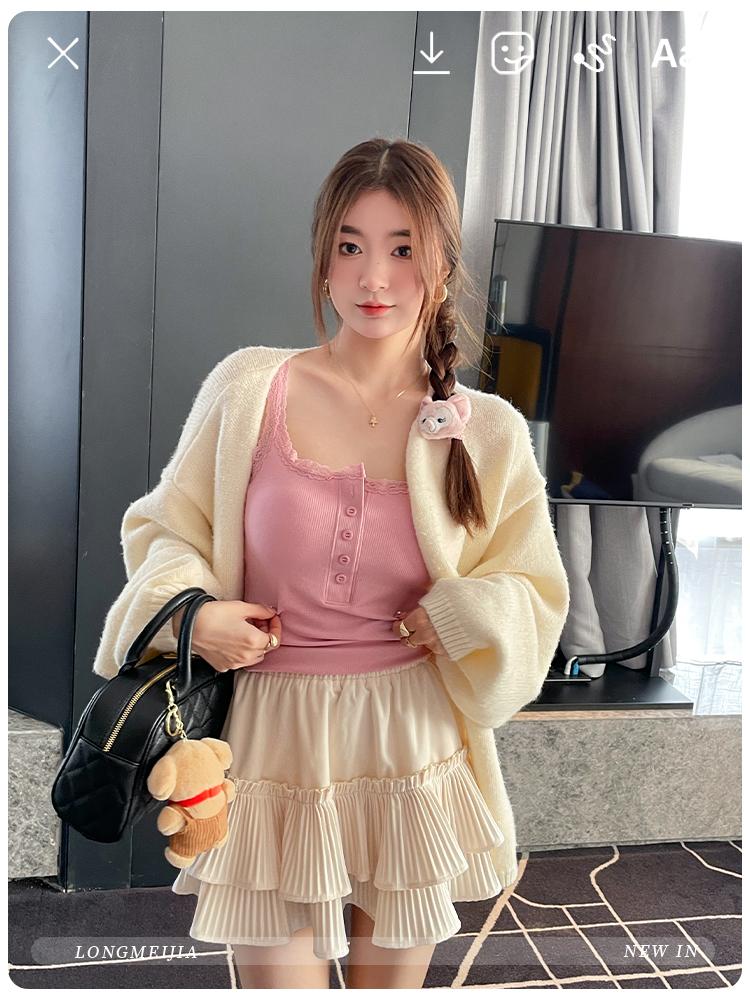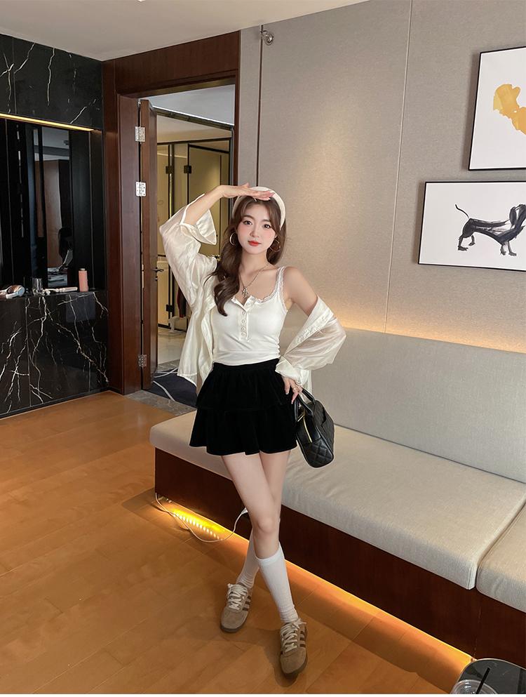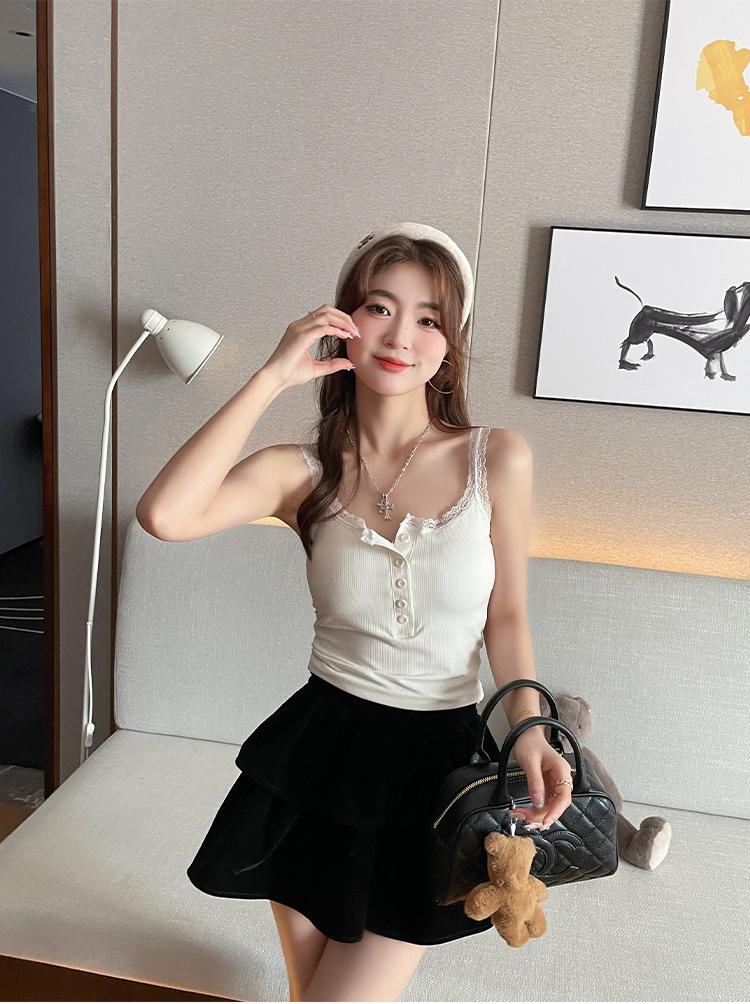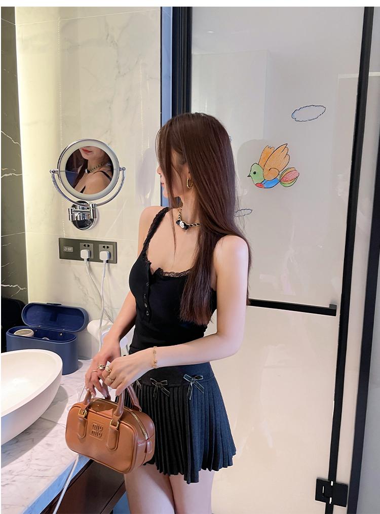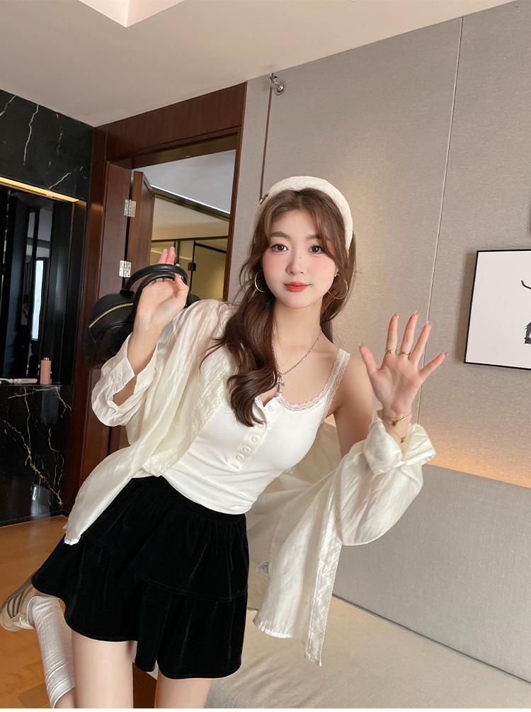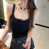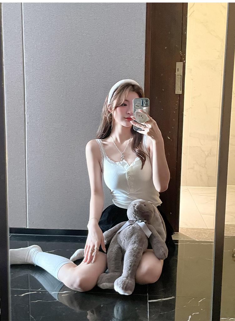 Camisola blanca para mujer, verano 2024, nueva prenda interior con tirantes finos y almohadillas en el pecho, base de encaje integrada para uso exterior.