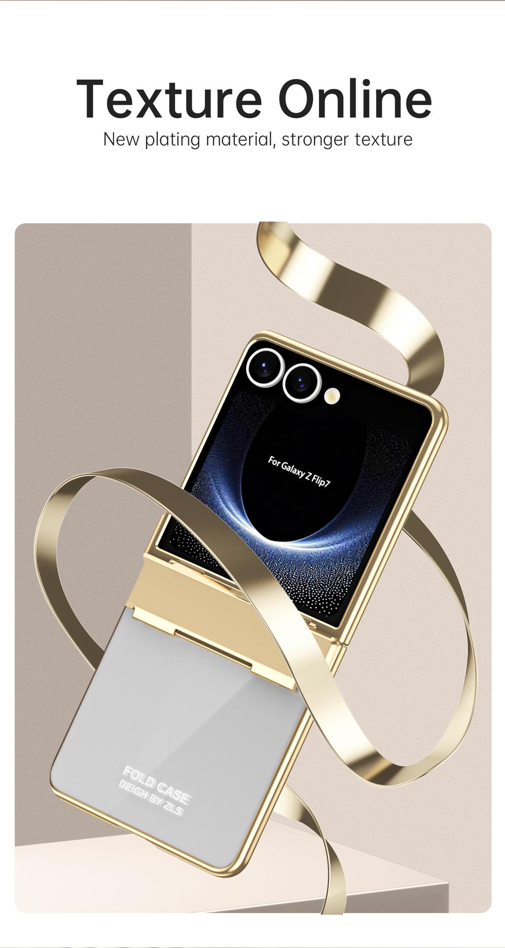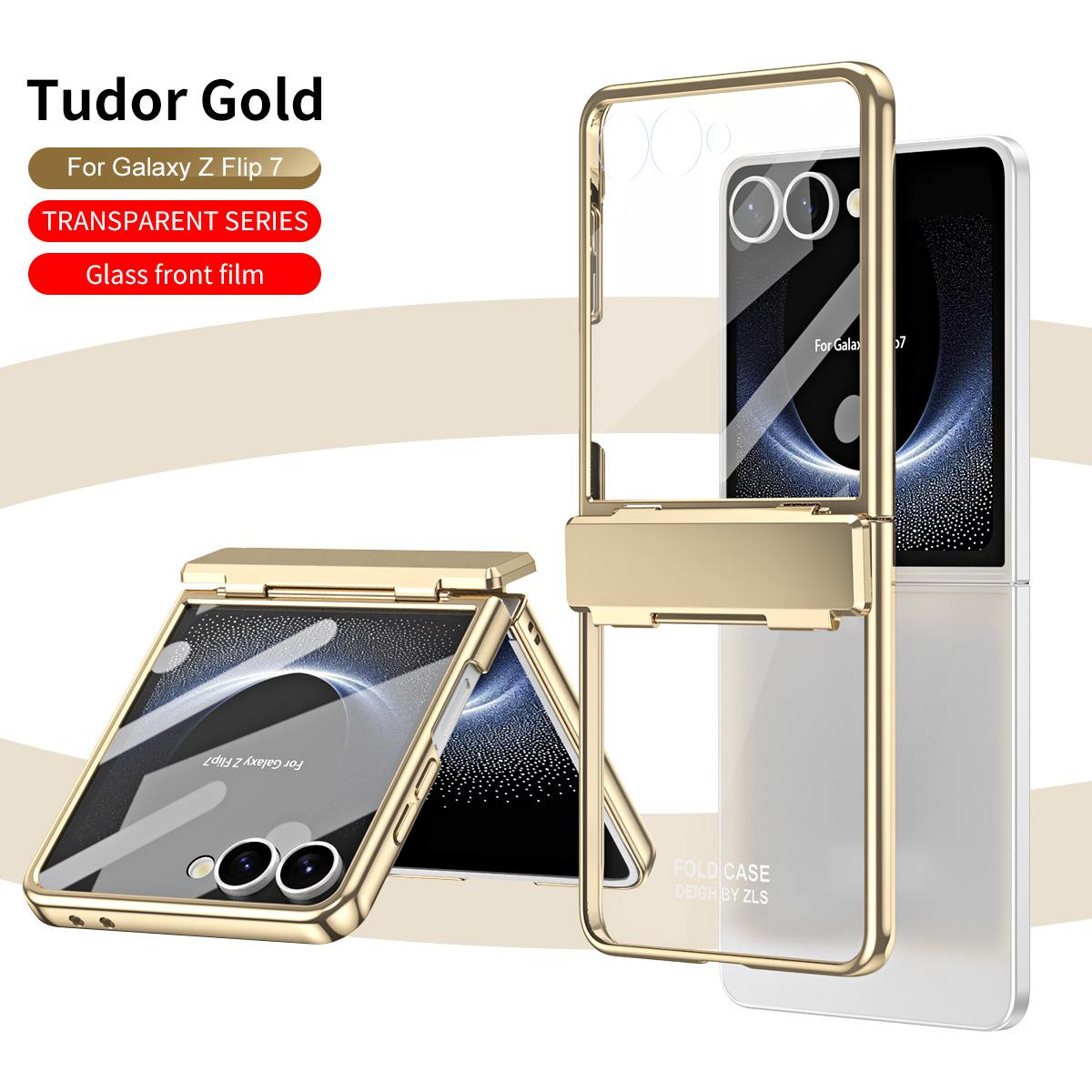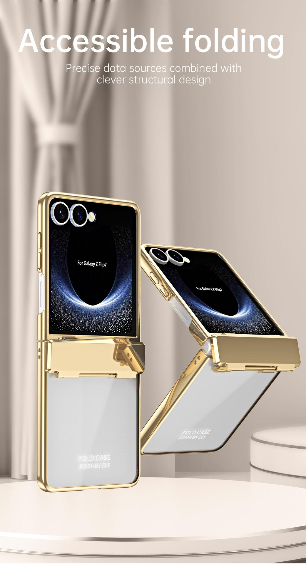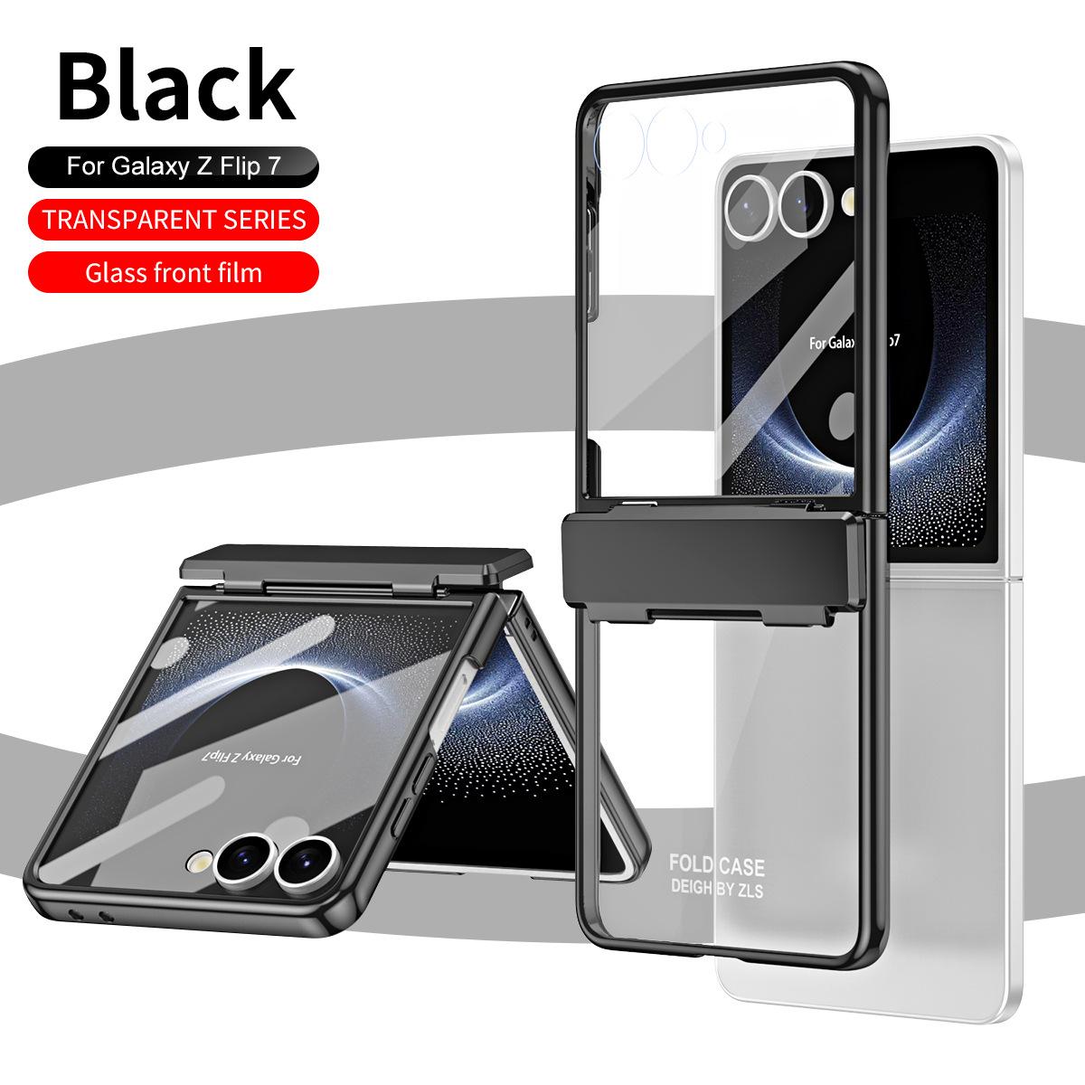 Adecuado para Funda de Teléfono Móvil Samsung Zflip7 Flip7Fe Pantalla Plegable Bisagra Transparente Galvanizada Protección Anticaídas Todo Incluido Cuero