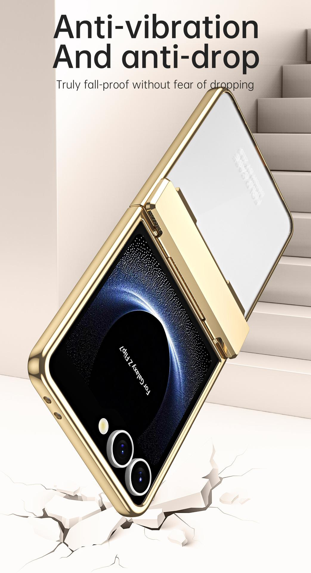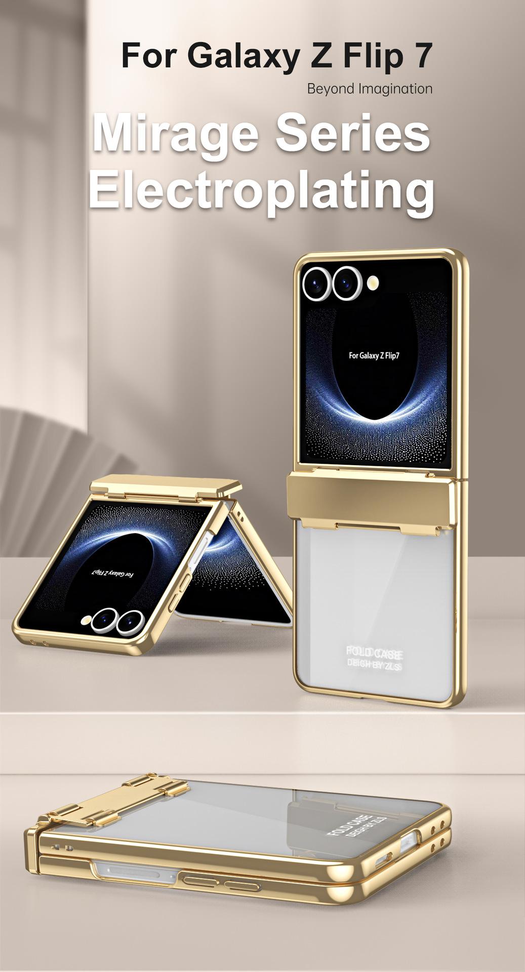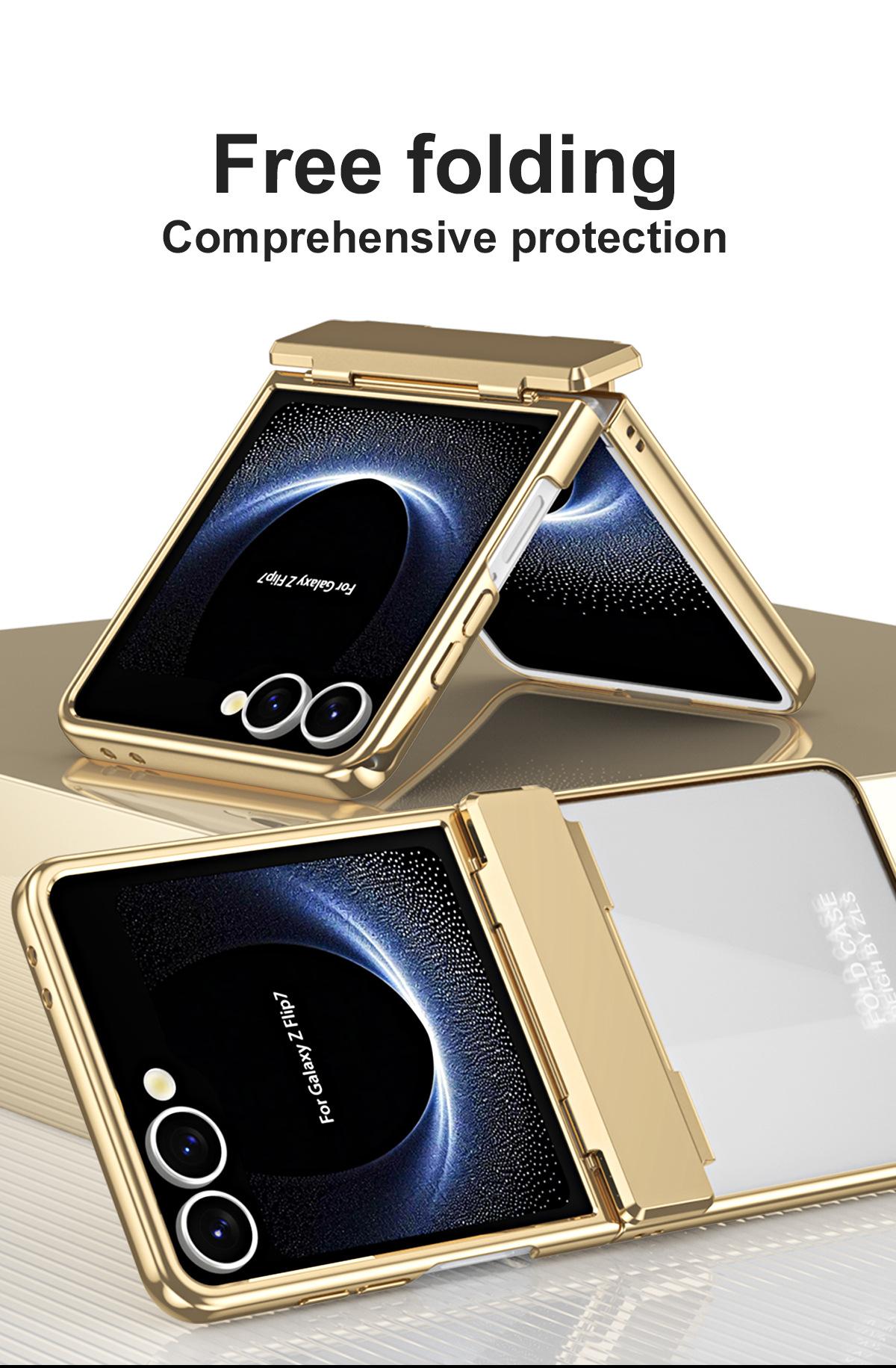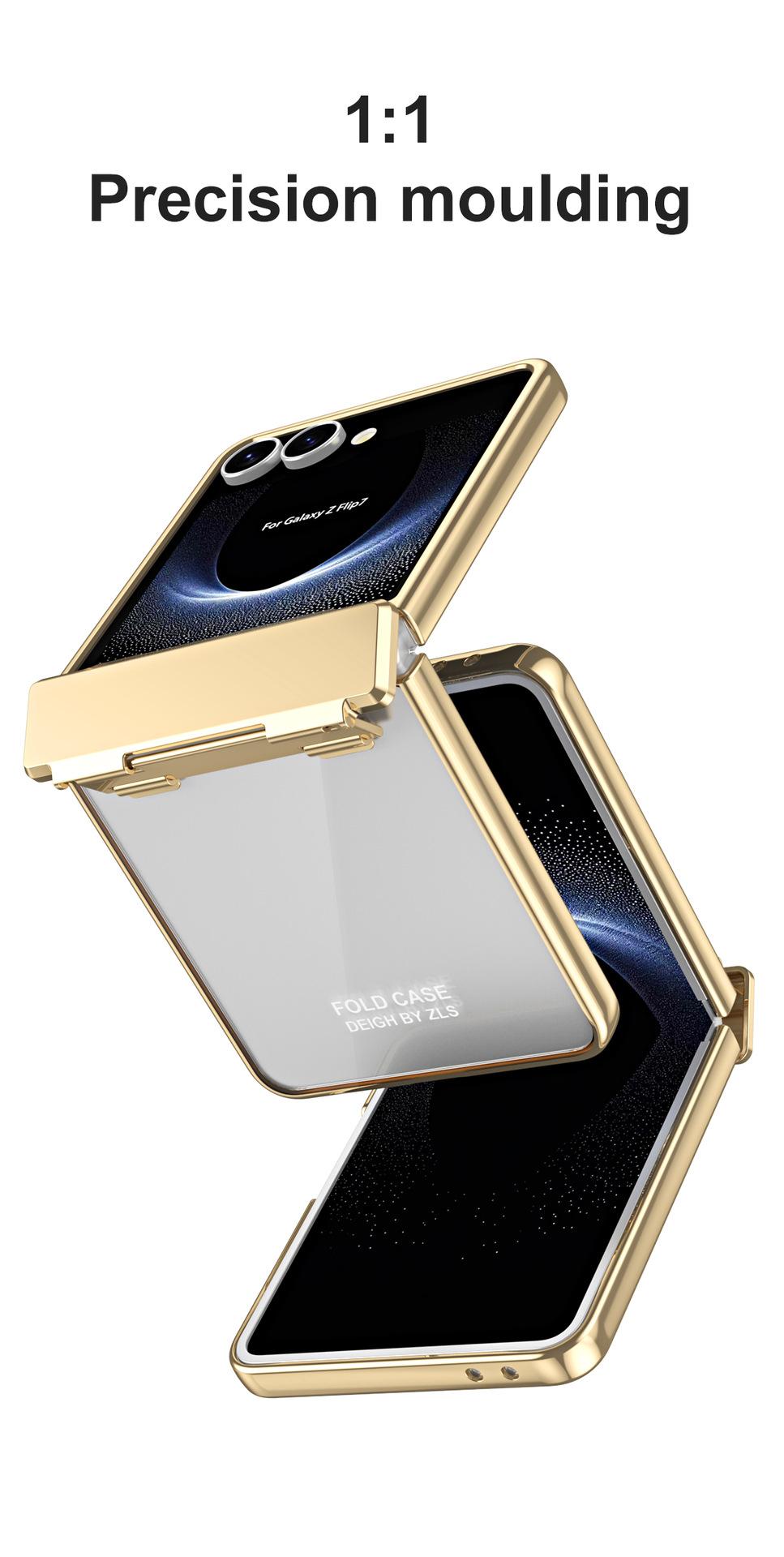 Adecuado para Funda de Teléfono Móvil Samsung Zflip7 Flip7Fe Pantalla Plegable Bisagra Transparente Galvanizada Protección Anticaídas Todo Incluido Cuero