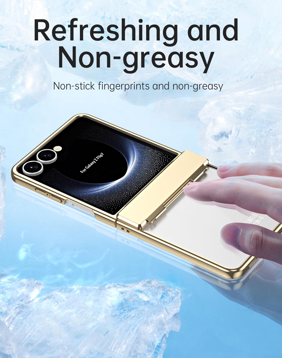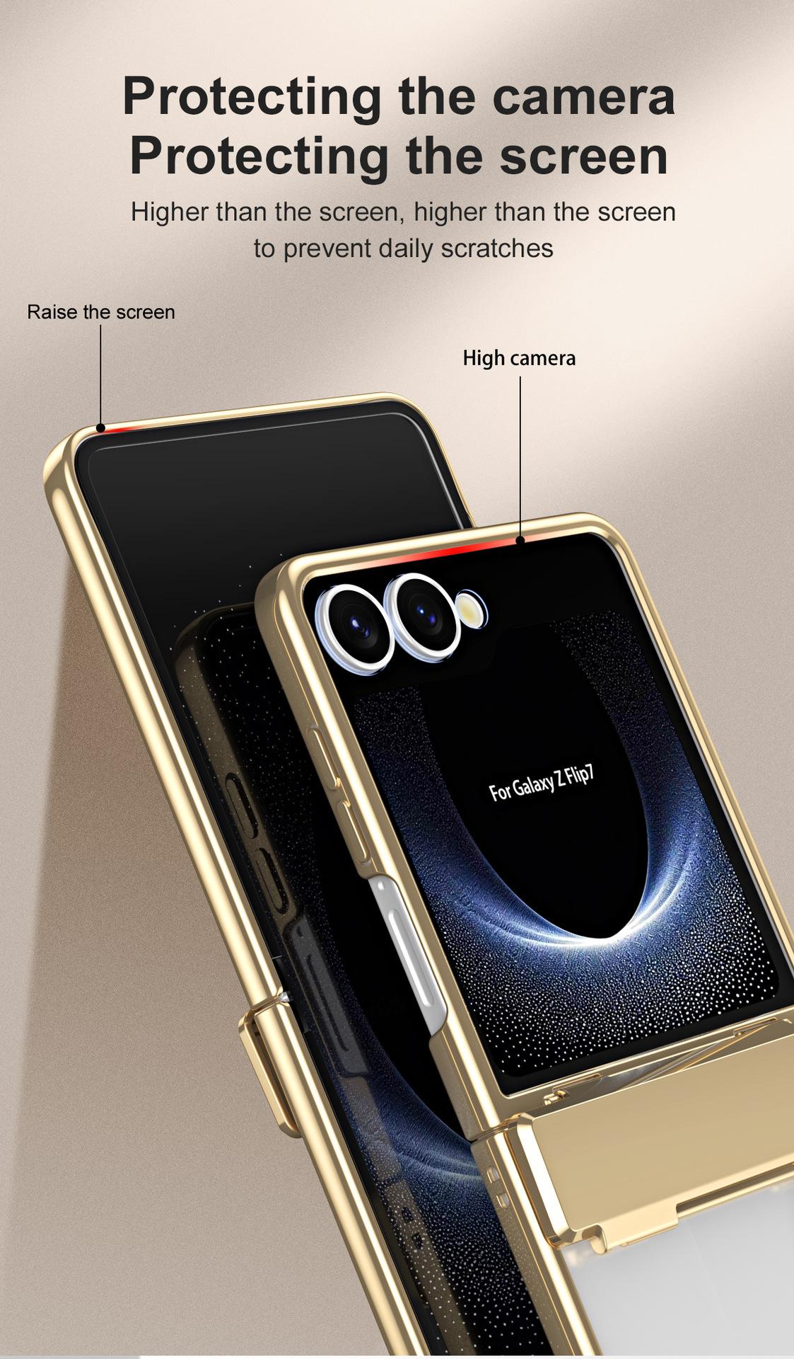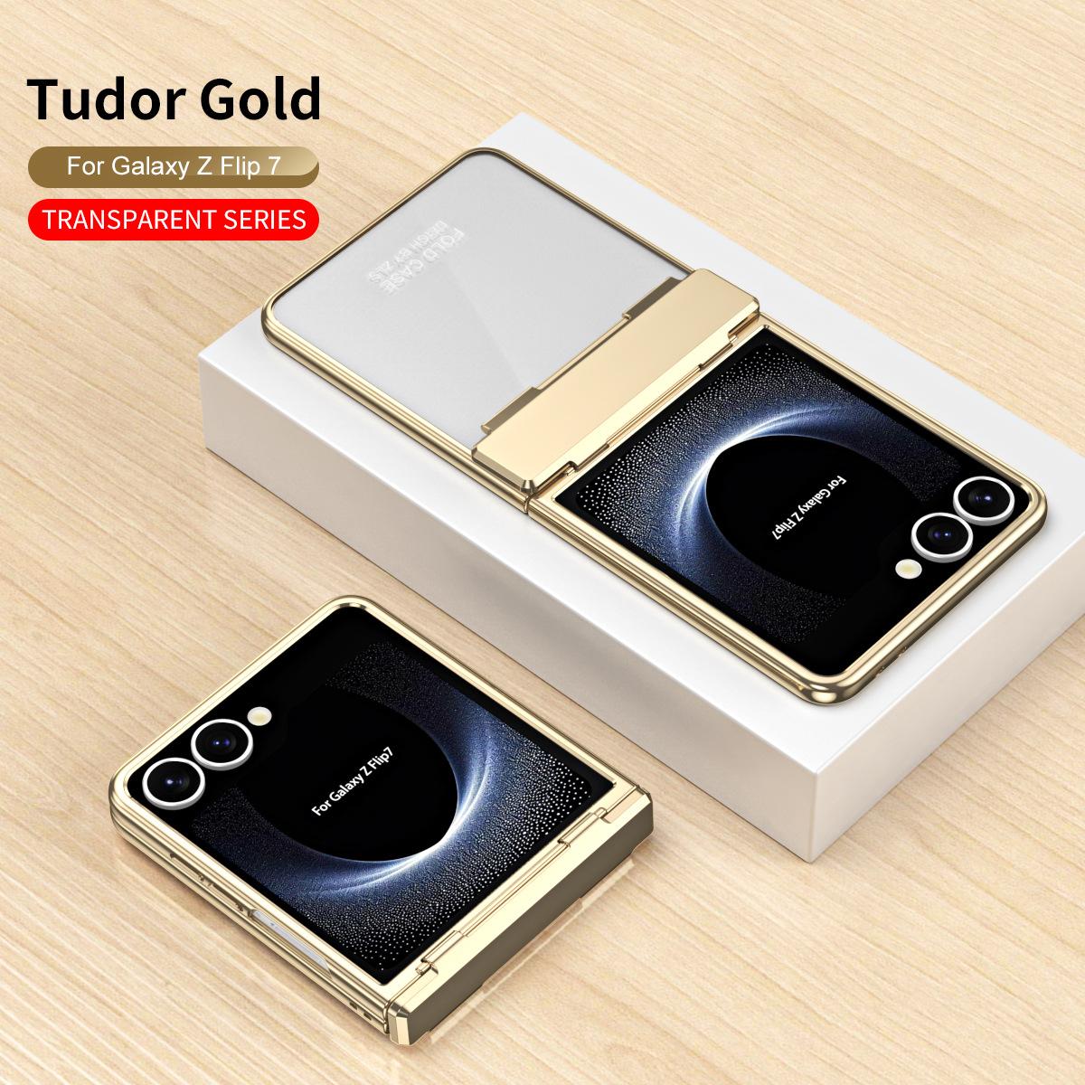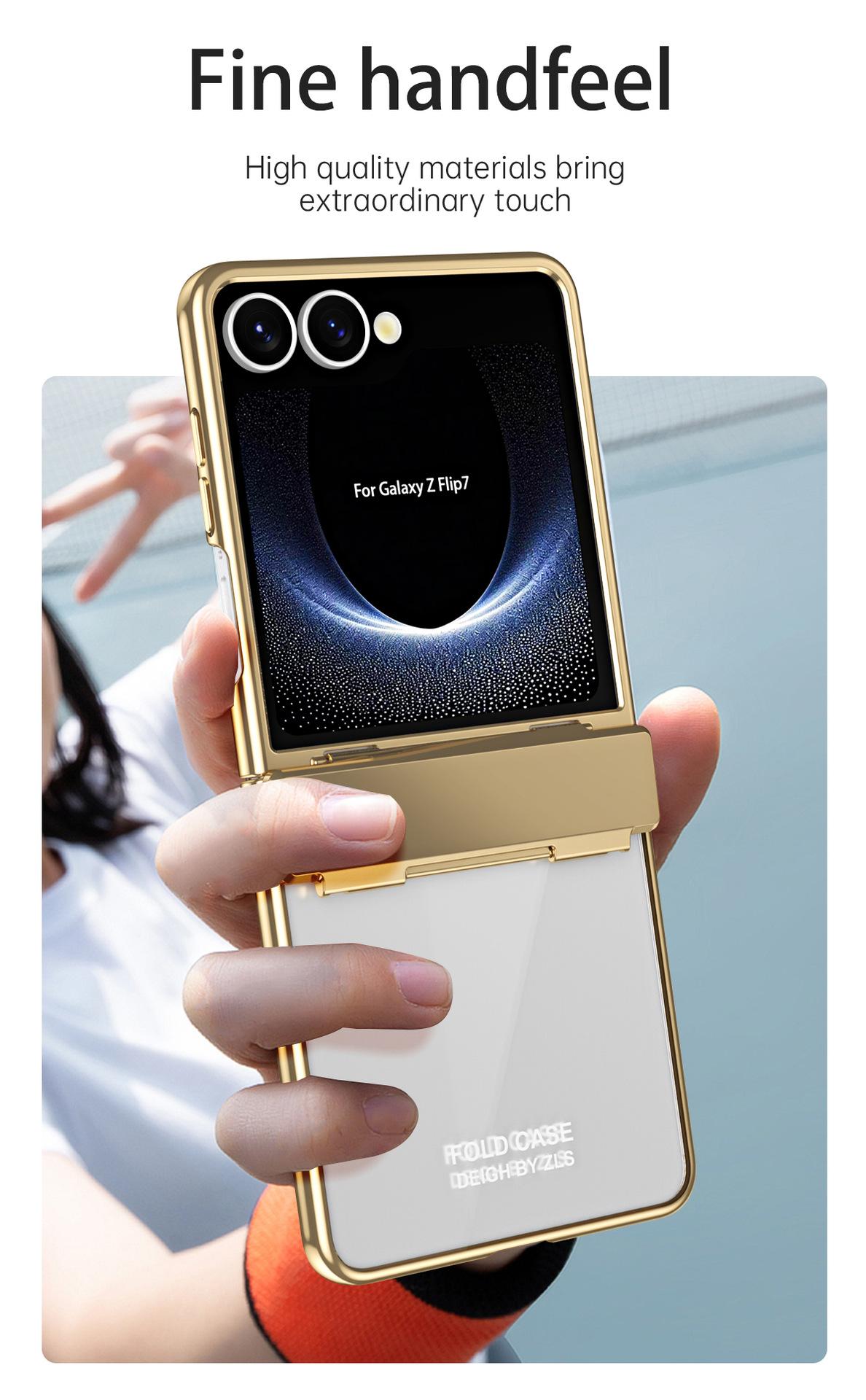 Adecuado para Funda de Teléfono Móvil Samsung Zflip7 Flip7Fe Pantalla Plegable Bisagra Transparente Galvanizada Protección Anticaídas Todo Incluido Cuero