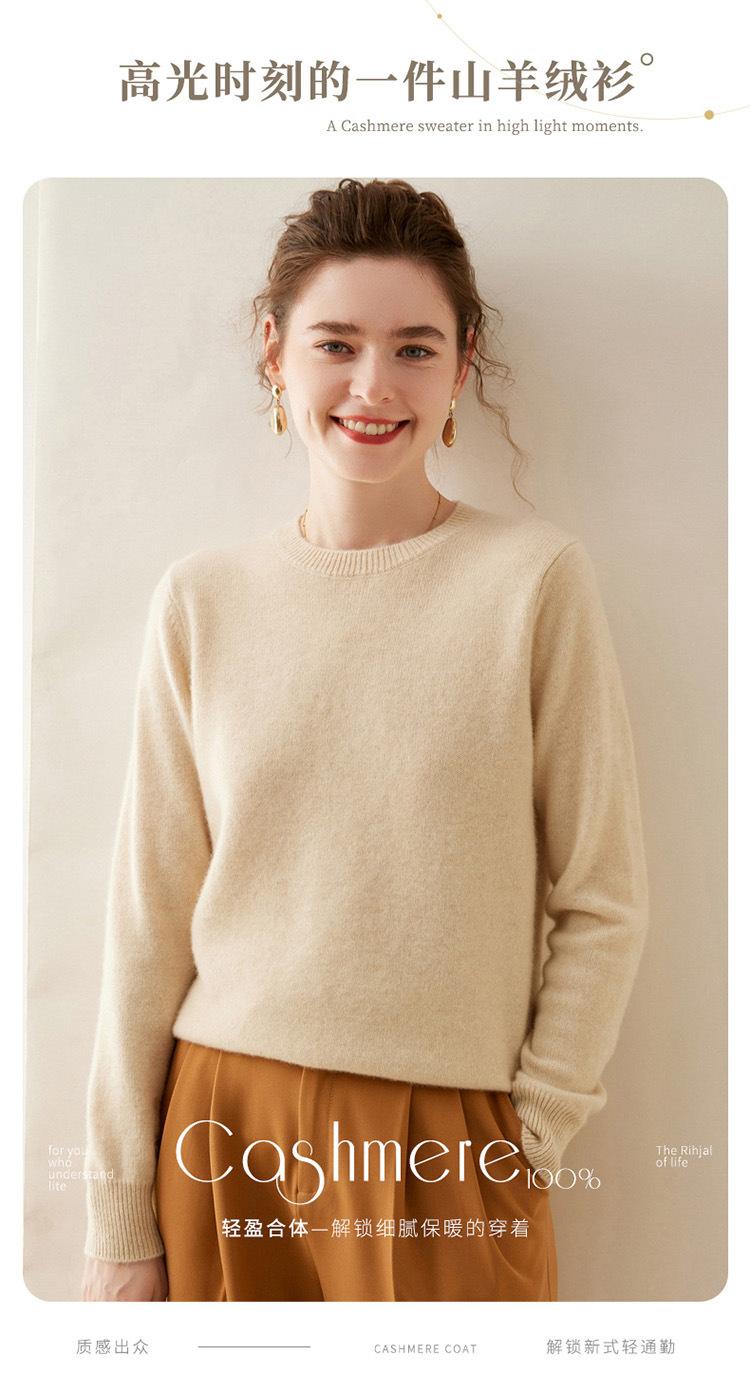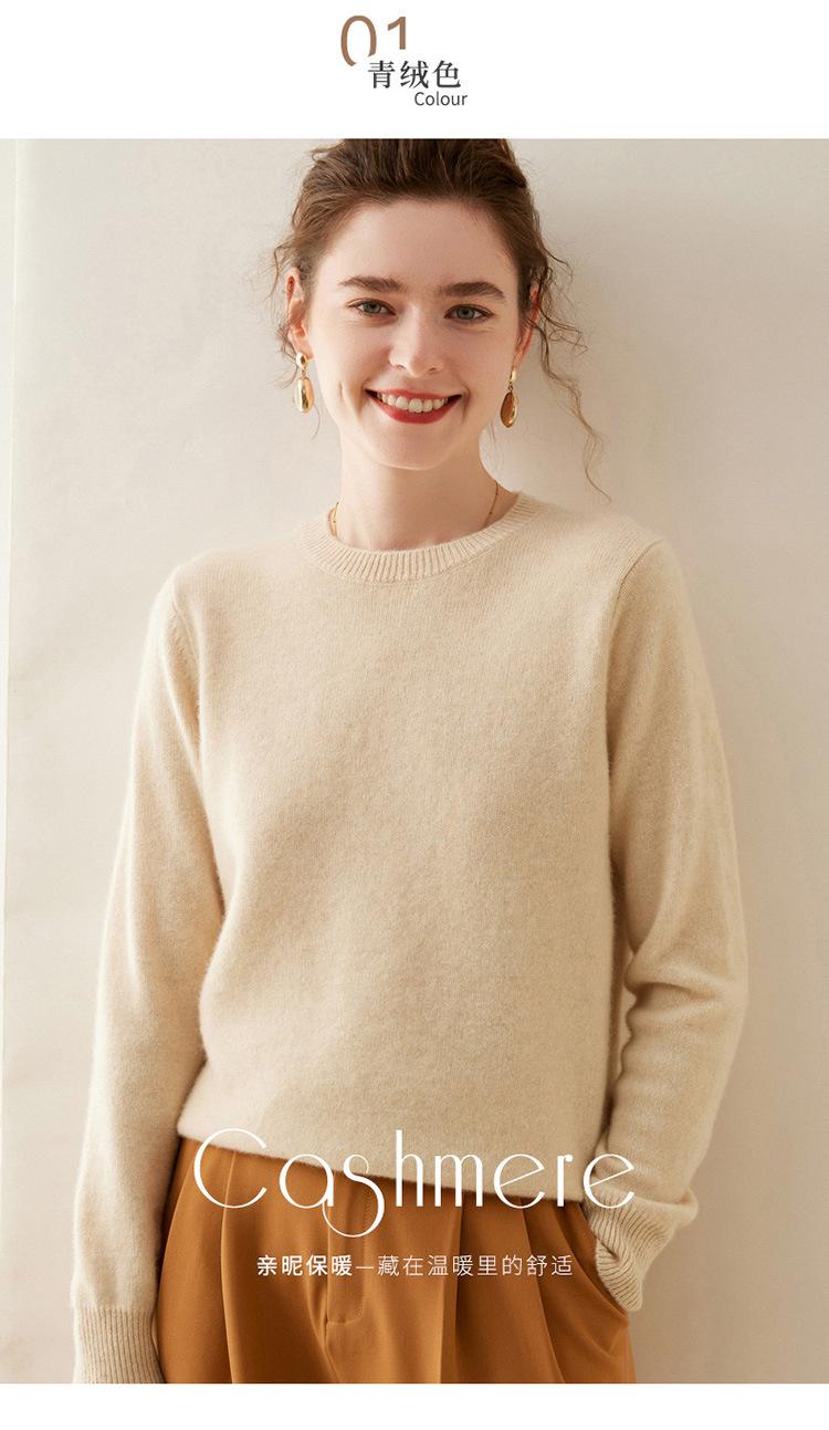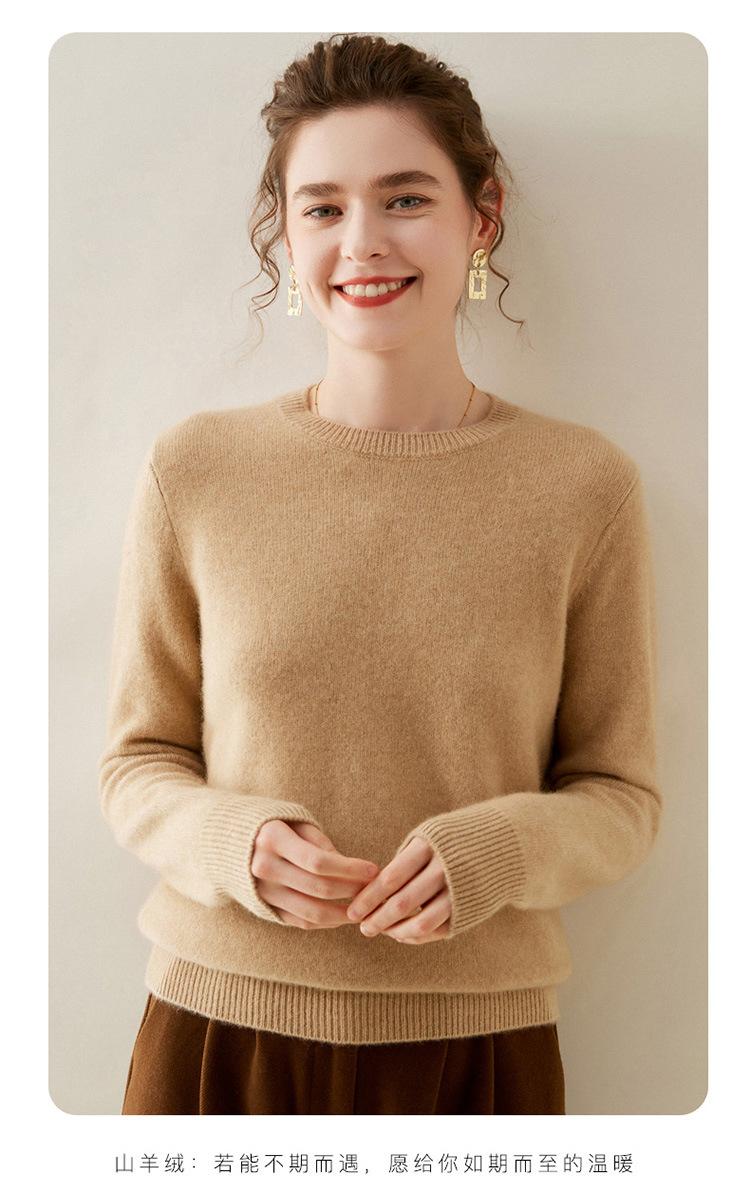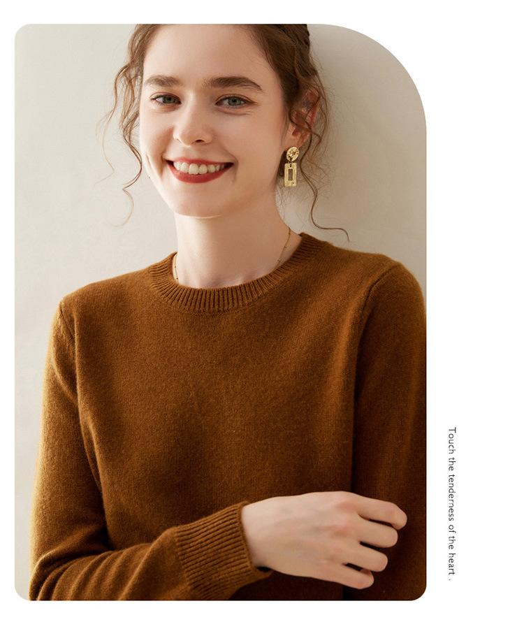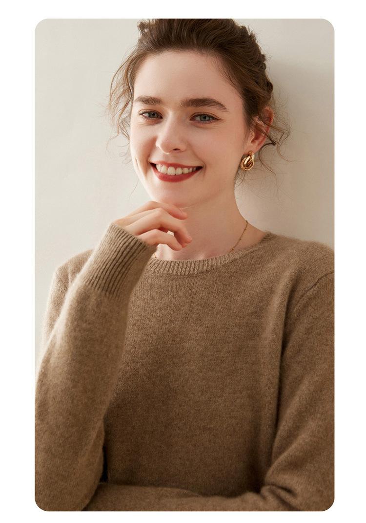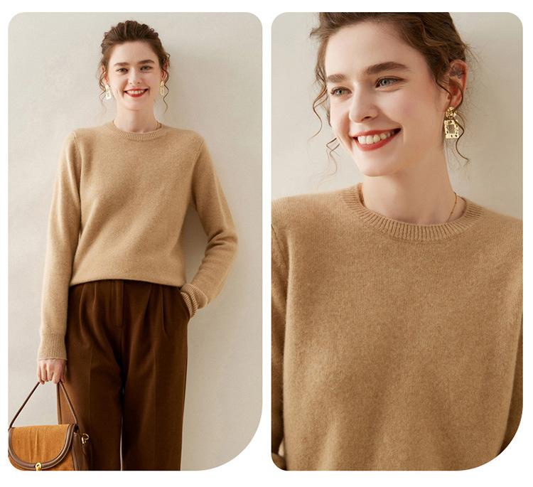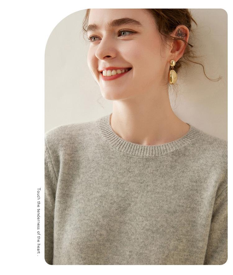Suéter de cachemira 100% puro para mujer, jersey de cuello redondo, punto grueso suelto de cachemira base
