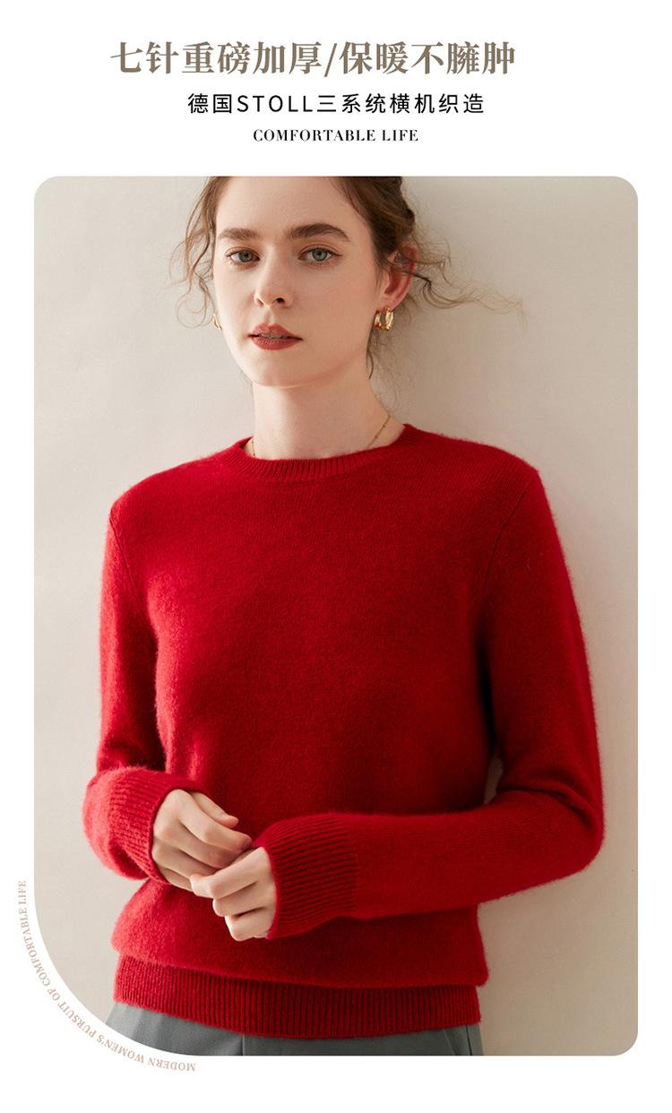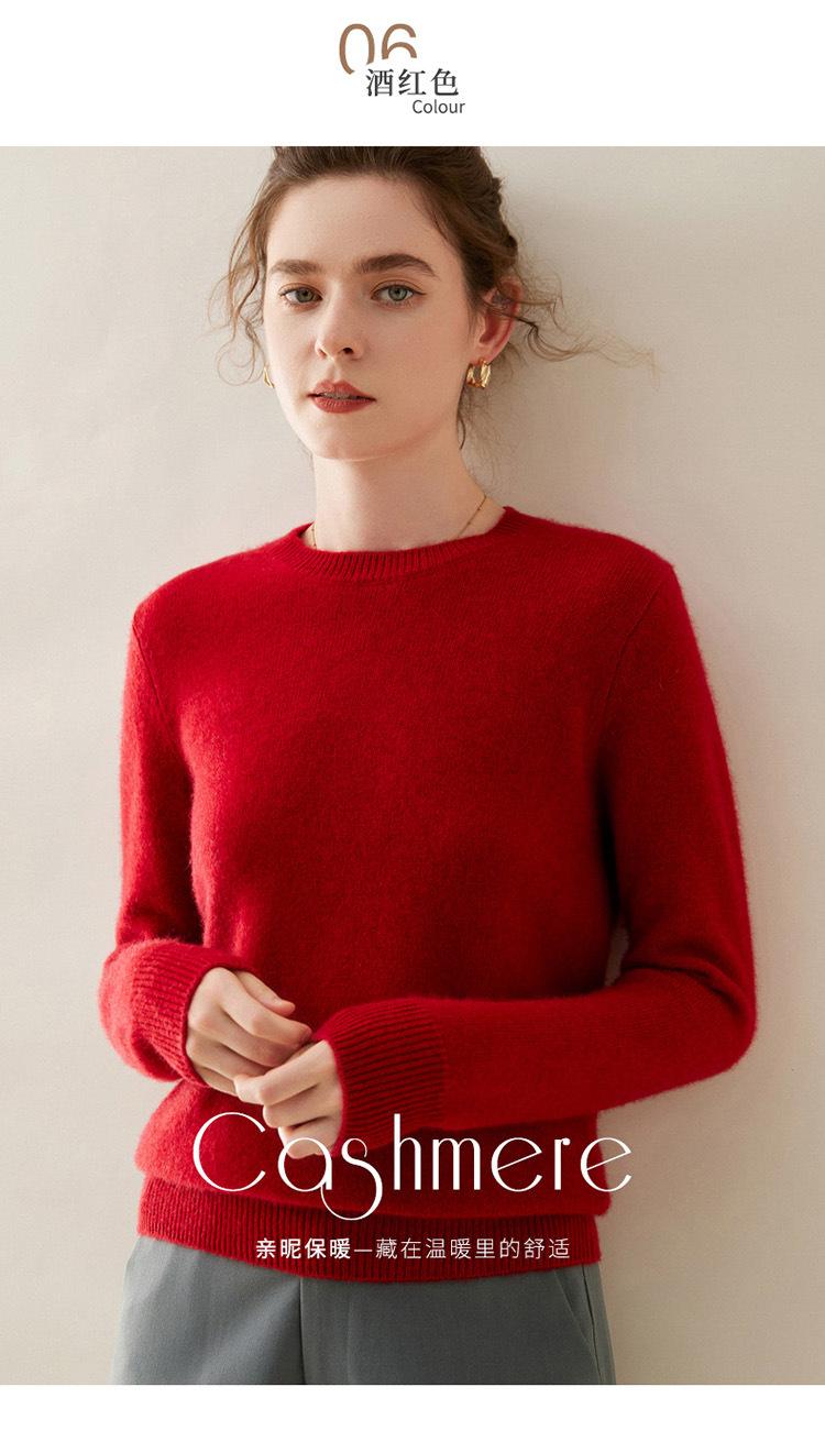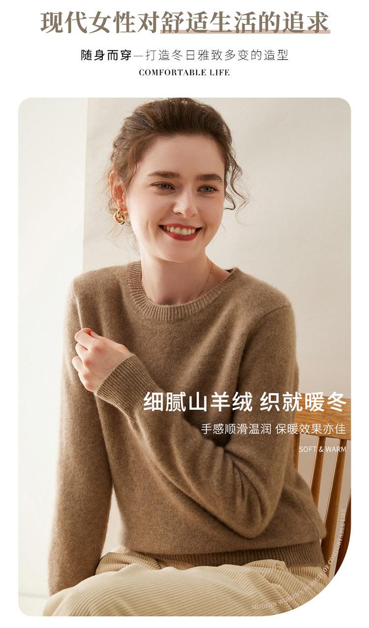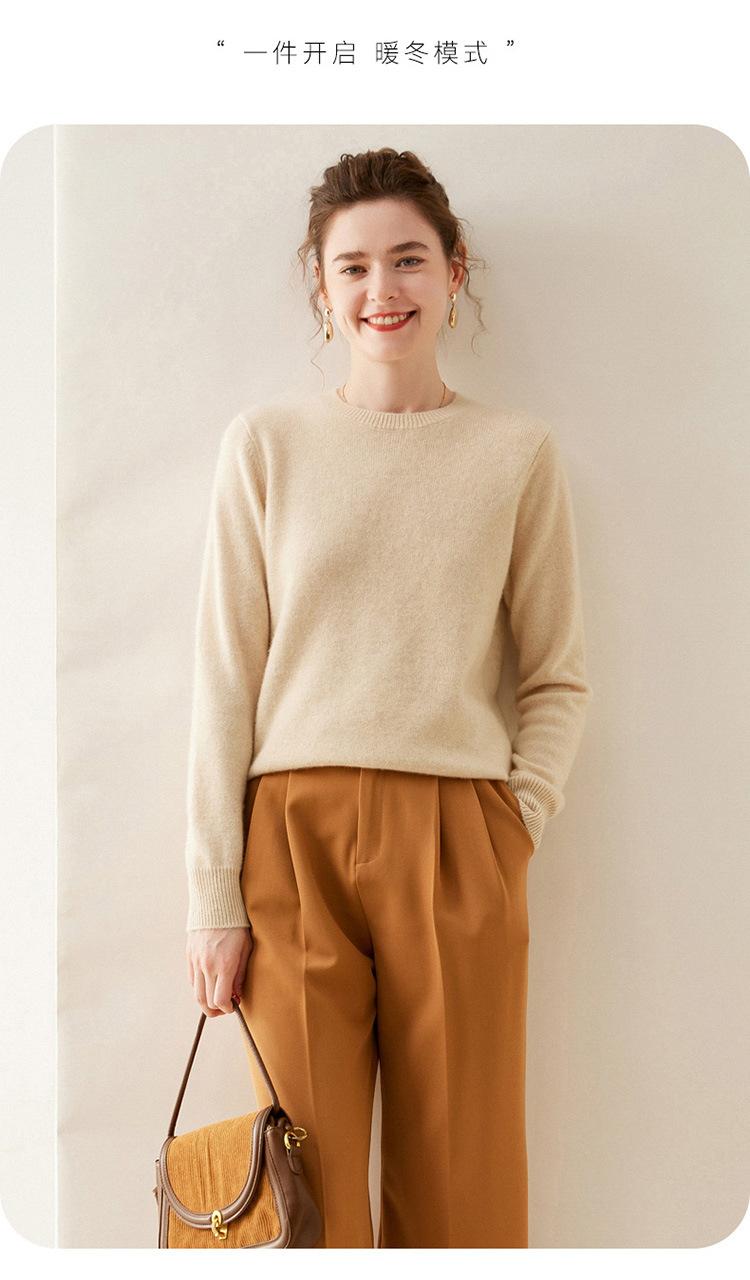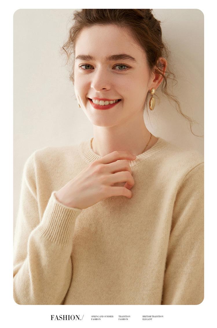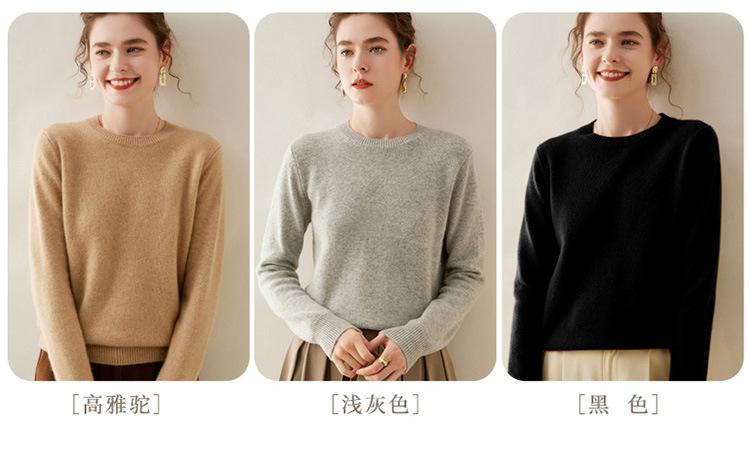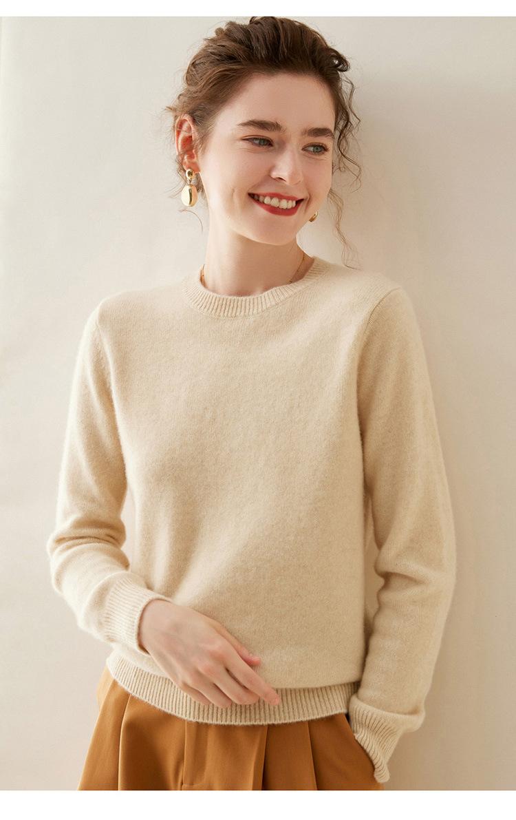 Suéter de cachemira 100% puro para mujer, jersey de cuello redondo, punto grueso suelto de cachemira base