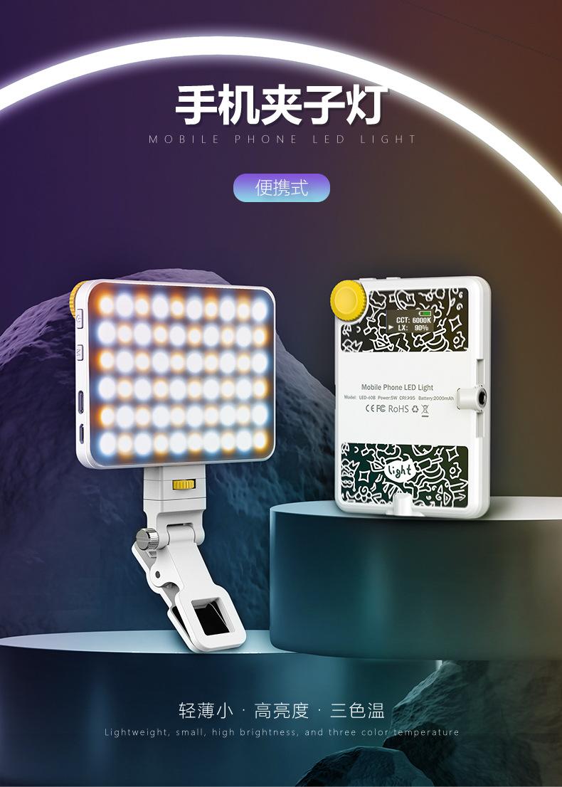 Nueva luz de relleno LED tricolor para computadora de teléfono móvil transfronteriza, fotografía, transmisión en vivo, portátil, de mano, de bolsillo, iluminación tipo tofu