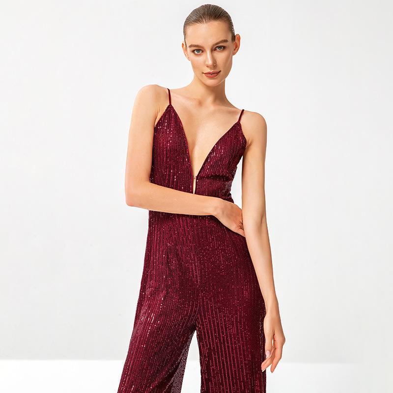 Ropa de verano 2023 para mujer, nueva estación independiente, mono ajustado con lentejuelas, sin mangas y espalda descubierta, a la moda