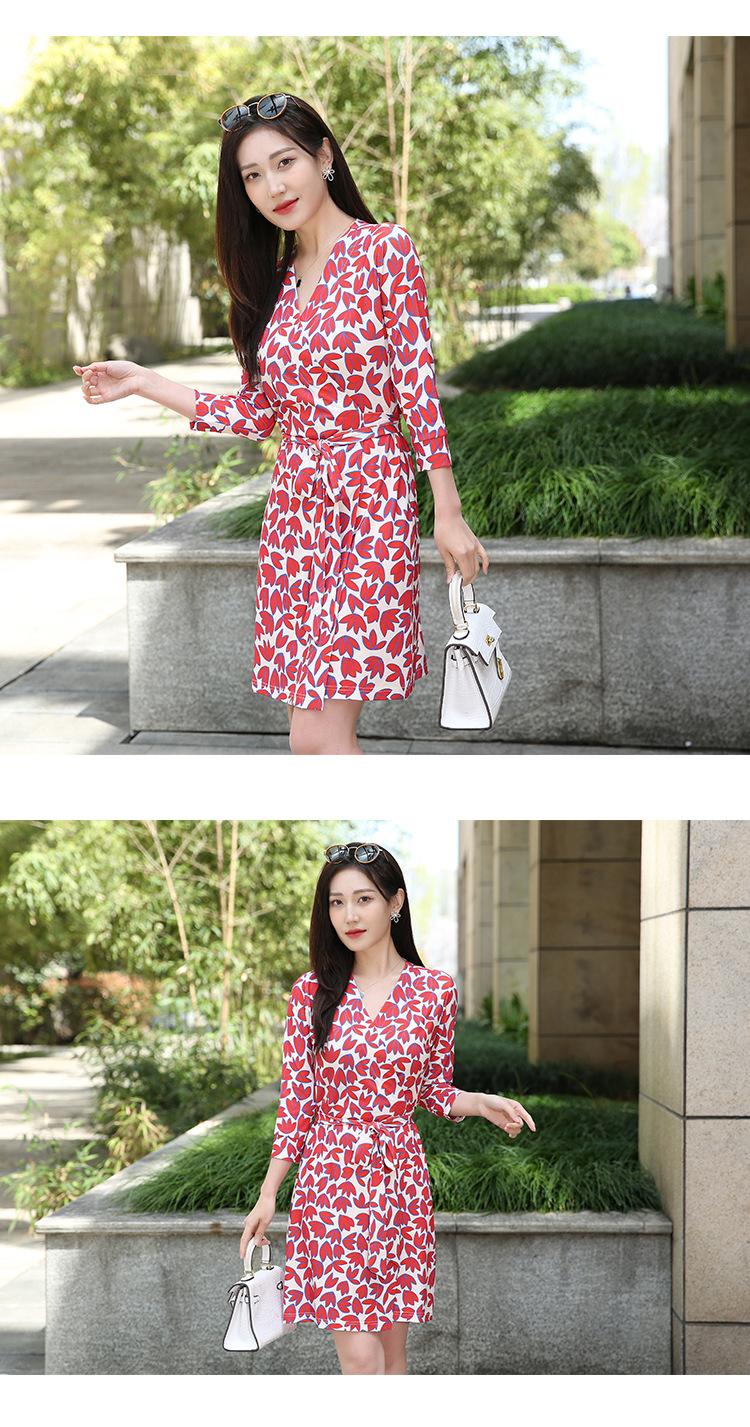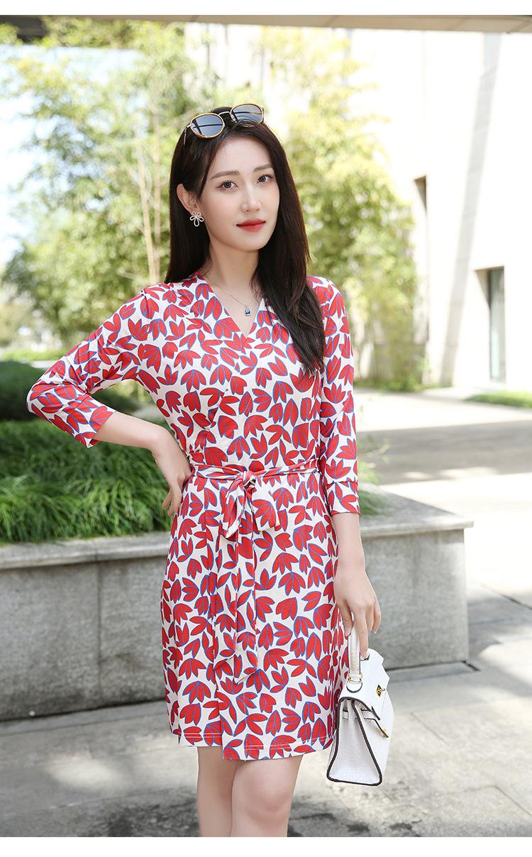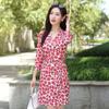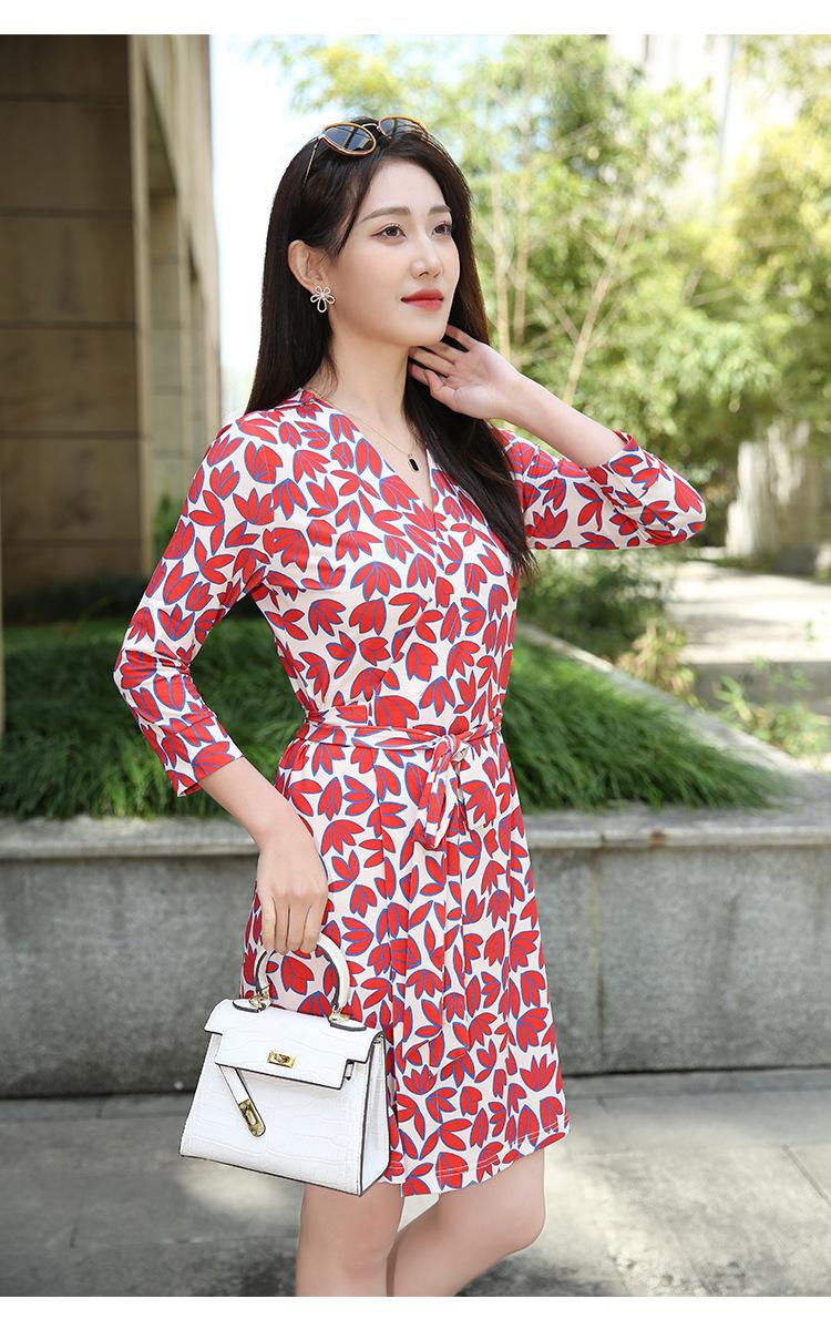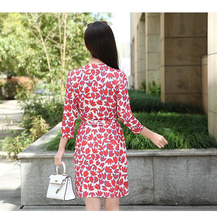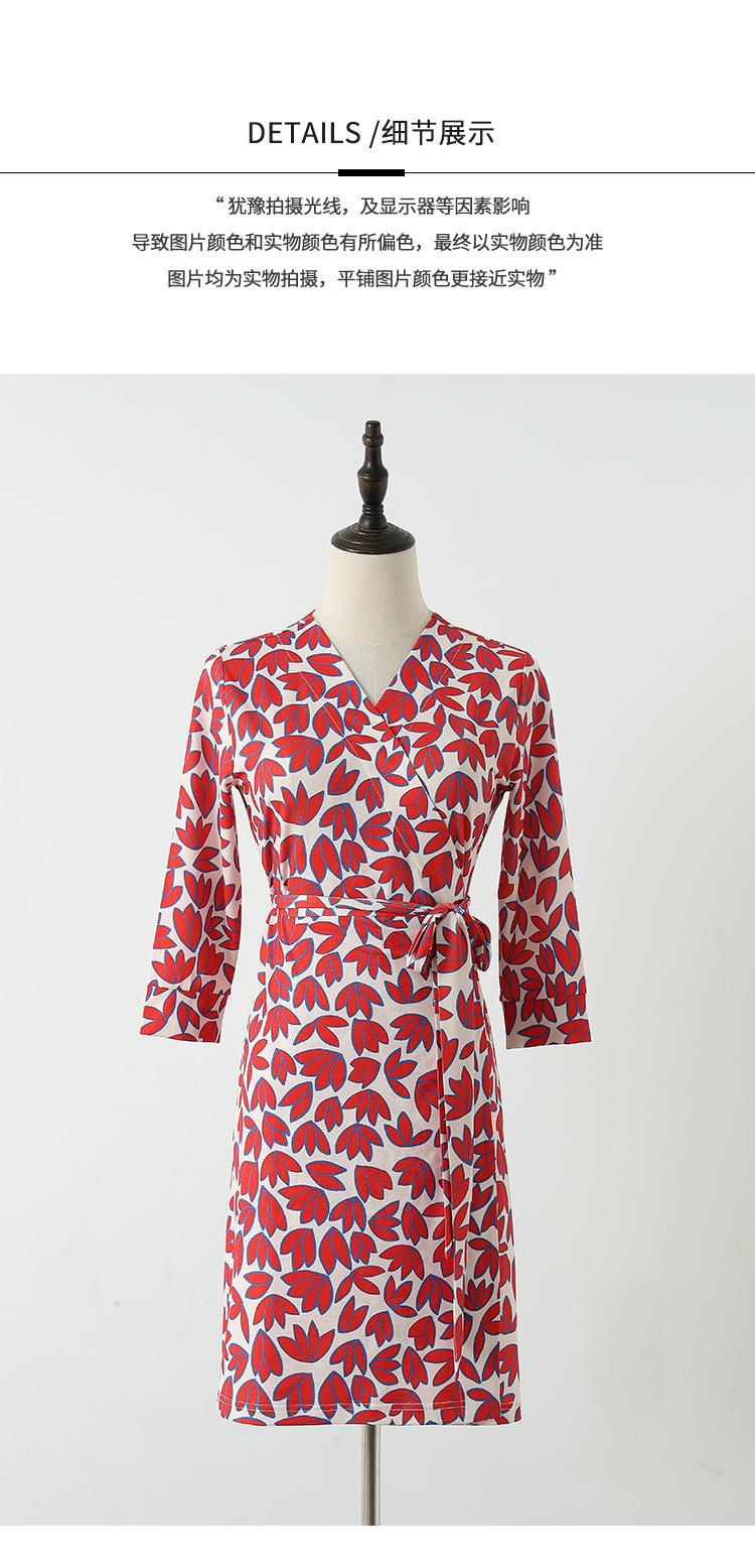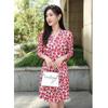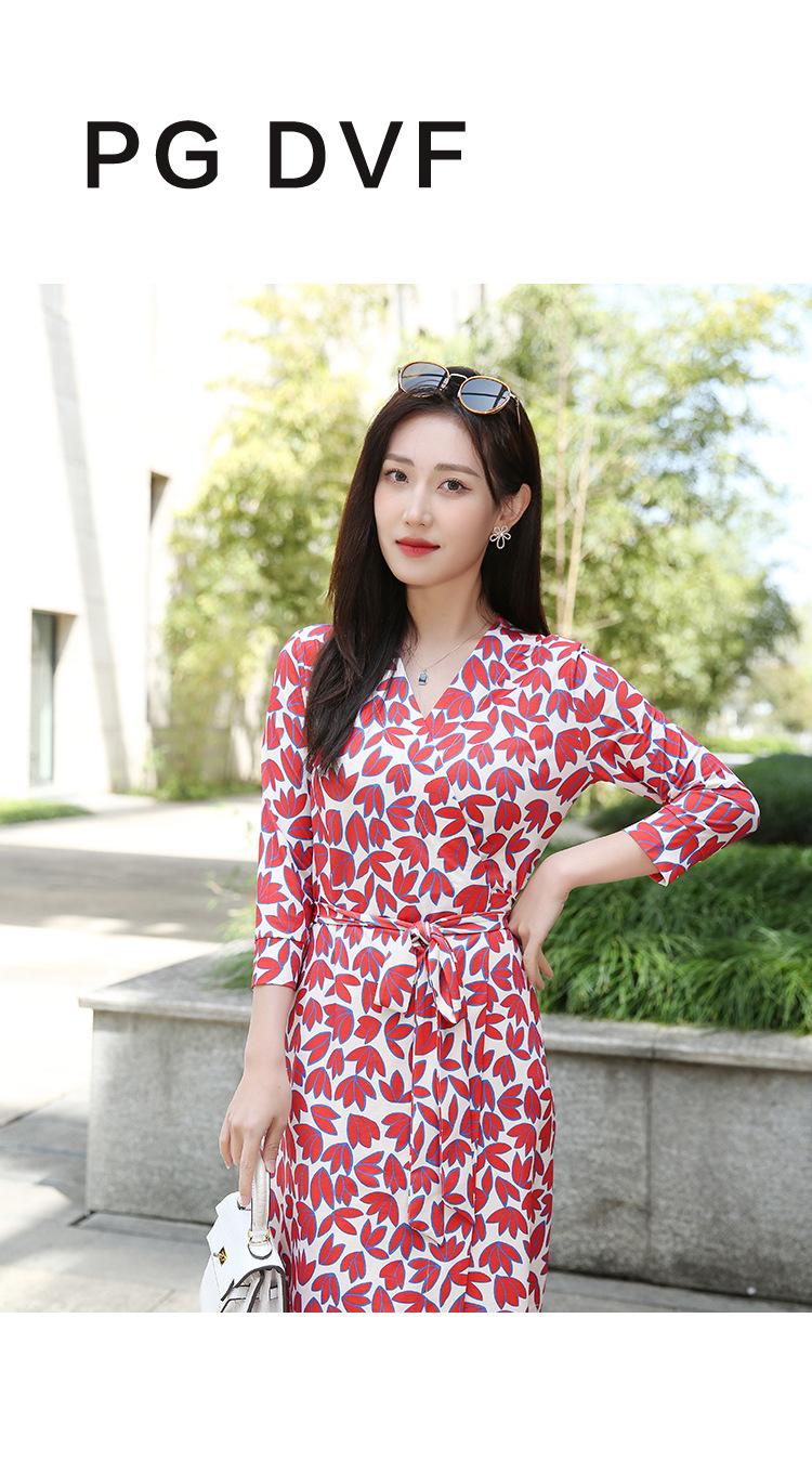 Vestido cruzado PG DVF 2024, nuevo verano, elegante, elegante, elegante, ajustado, adelgazante, con estampado de hojas rojas para mujer