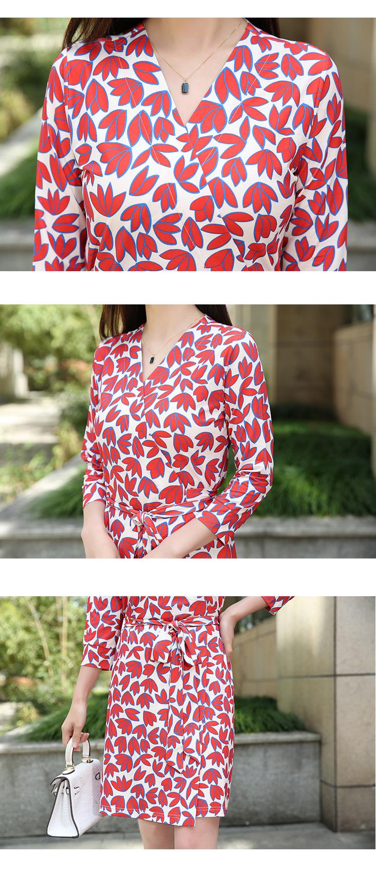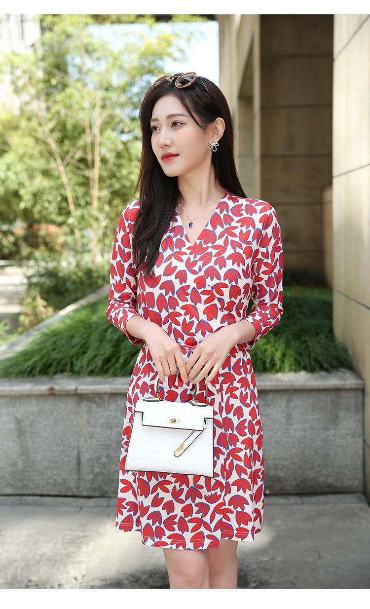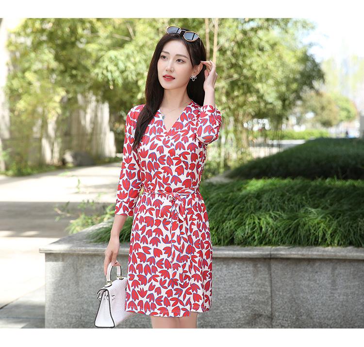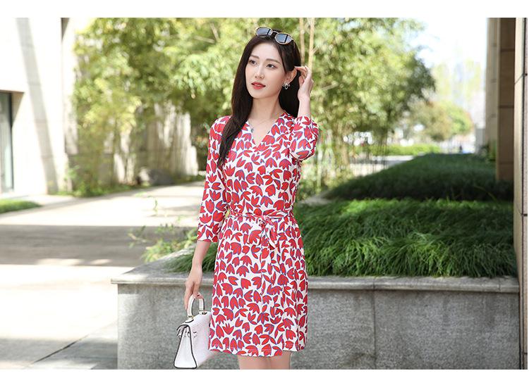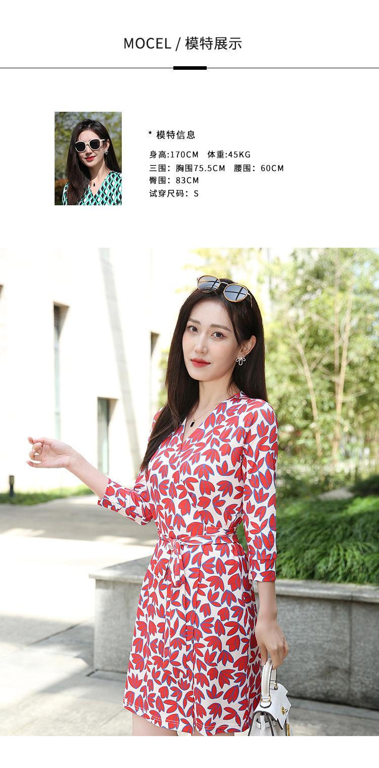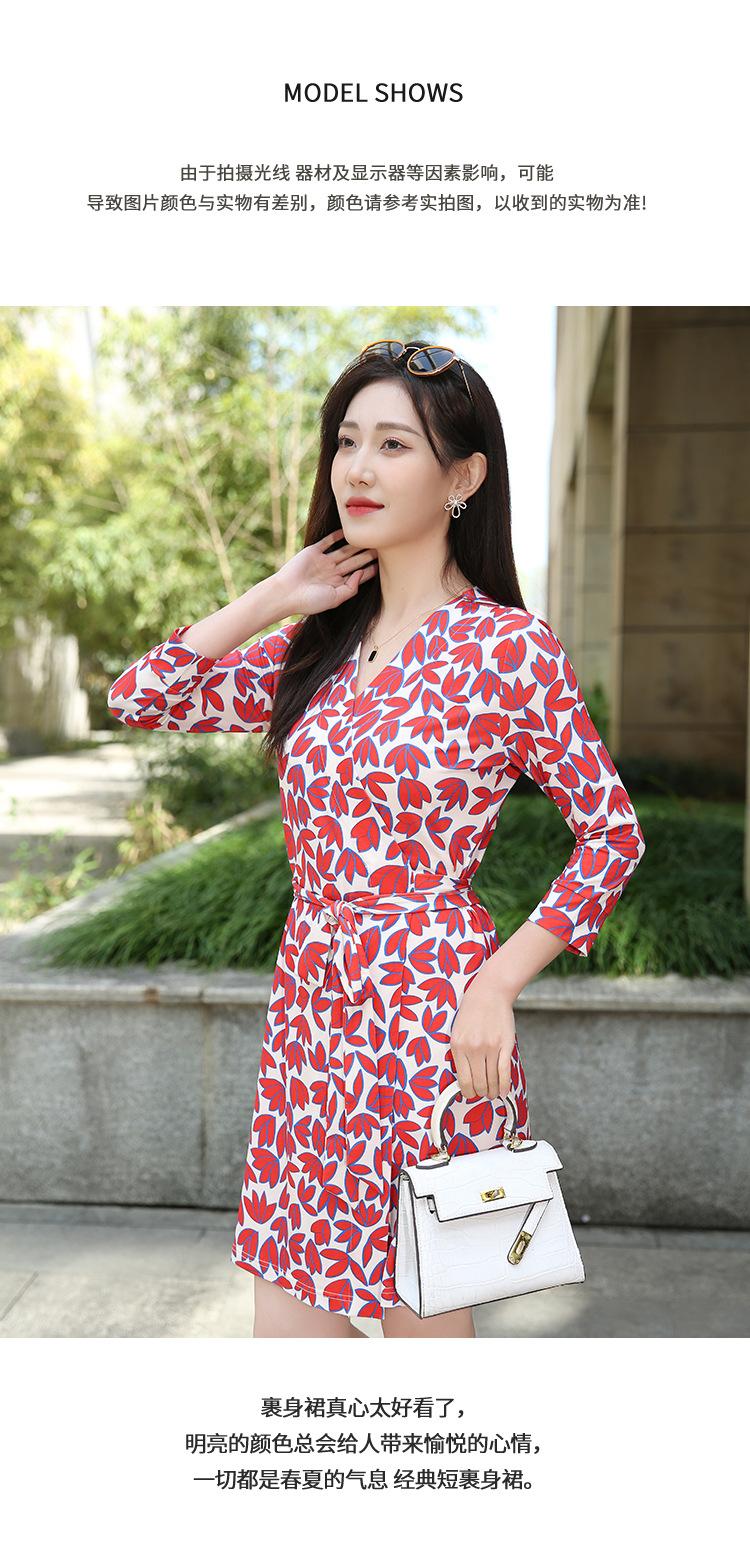 Vestido cruzado PG DVF 2024, nuevo verano, elegante, elegante, elegante, ajustado, adelgazante, con estampado de hojas rojas para mujer