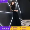 Vestido de Noche Negro para Mujer 2026 Nuevo Estilo Banquete Elegante Anfitrión Vestido Largo de Manga Larga con Elegante Temperamento para Reuniones de la Alta Sociedad