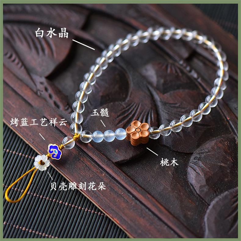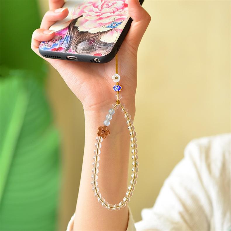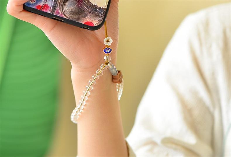 Cadena para teléfono móvil de cristal blanco, cordón simple de estilo chino para teléfono móvil, regalo de San Valentín para mujer, colgante corto