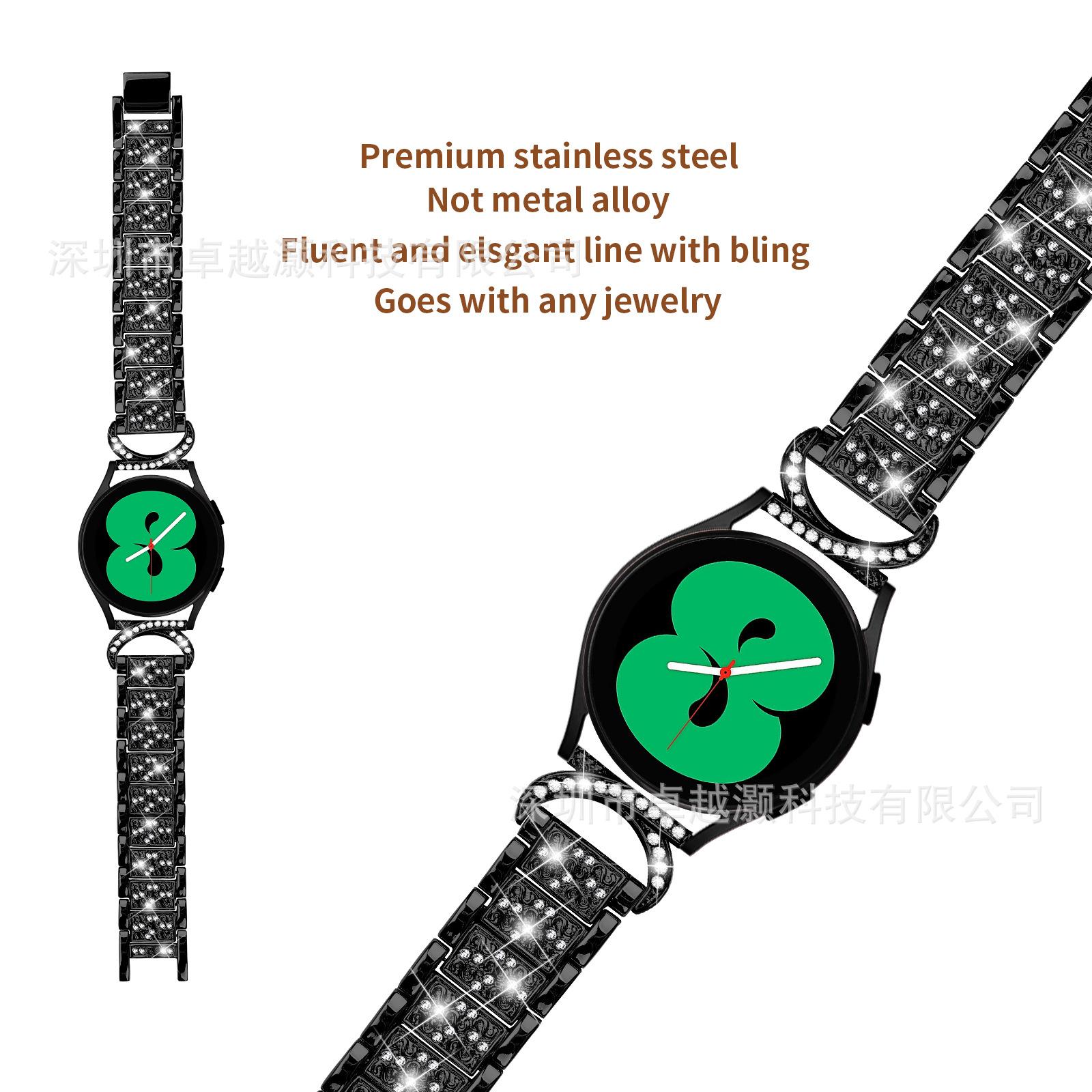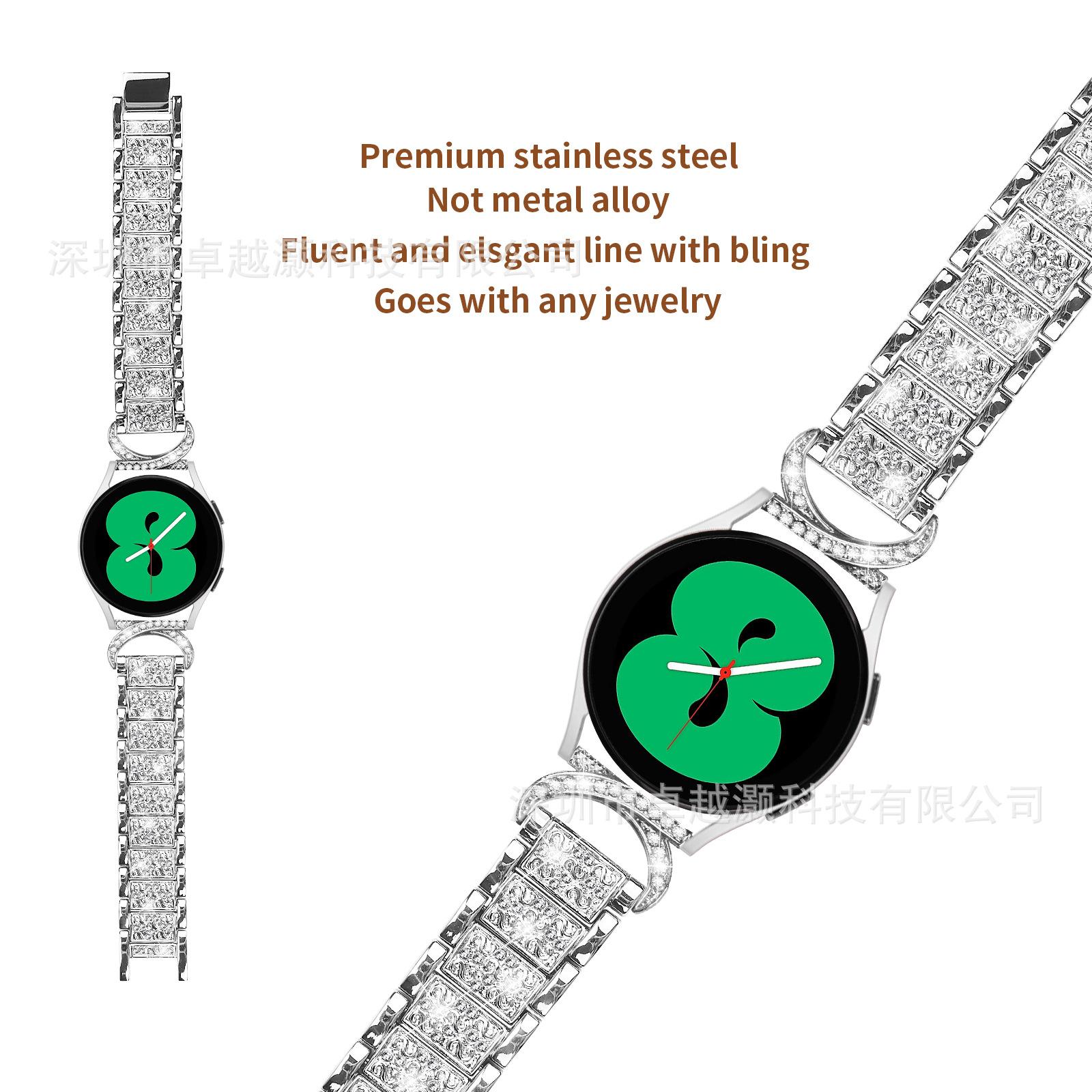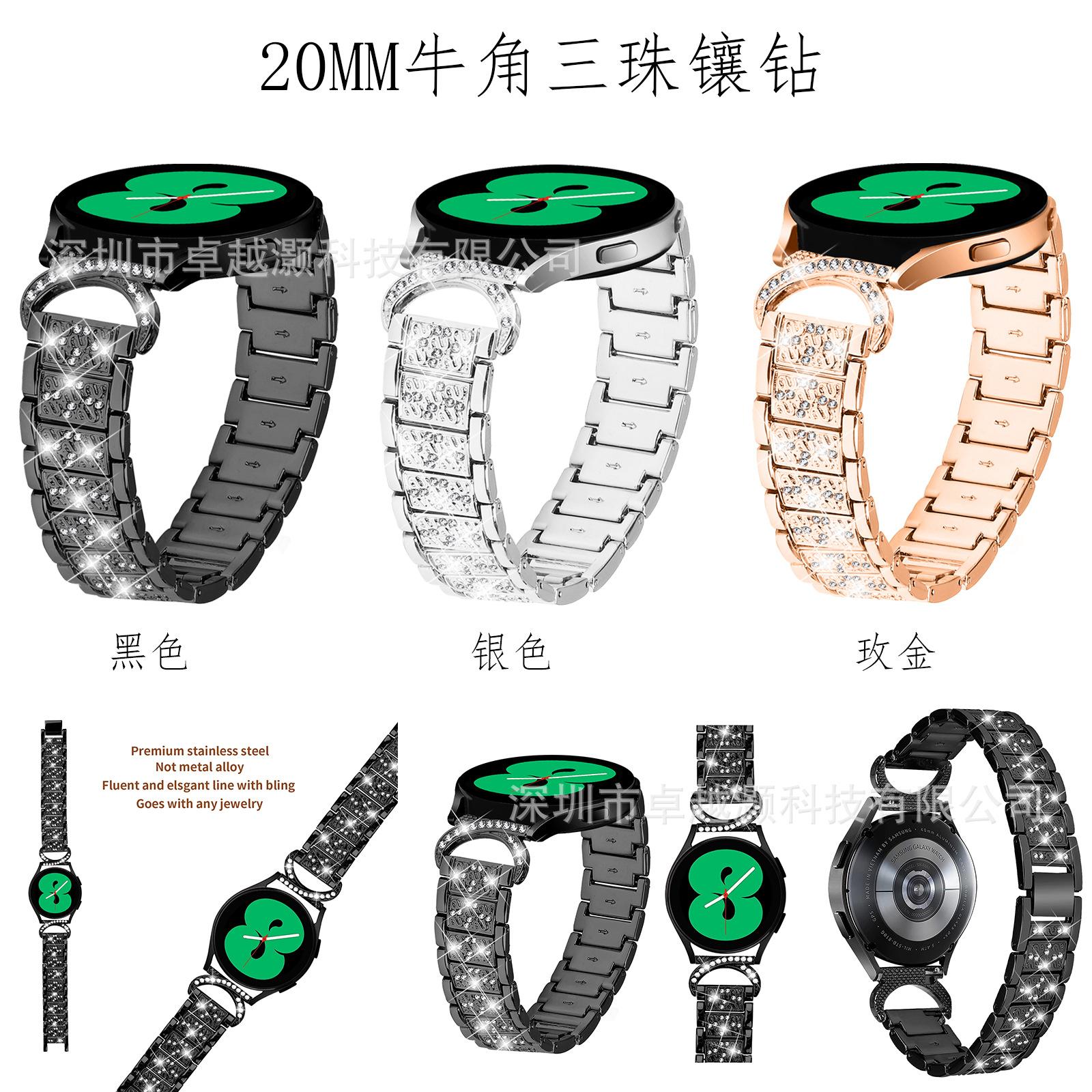 Compra Adecuado para Correa de Reloj de Diamantes de Tres Cuentas de Cuerno de 20 mm de Samsung Correa de Reloj Metálica para Reloj Inteligente Sencillo Watch7/6 al por mayor en Joom.pro