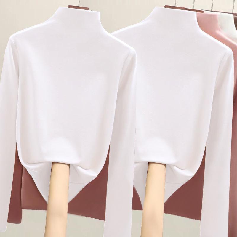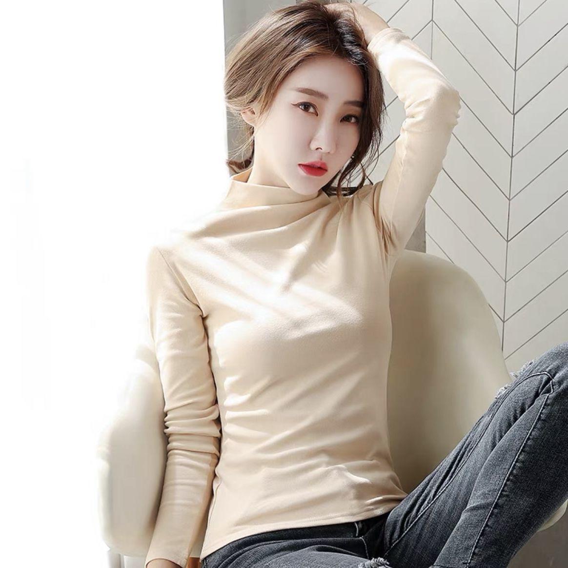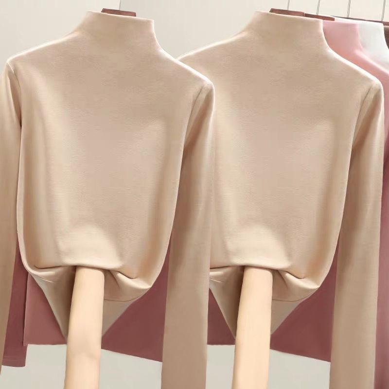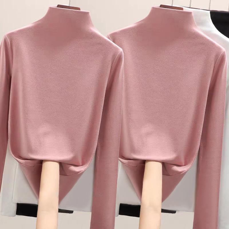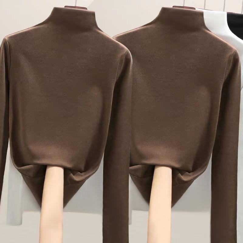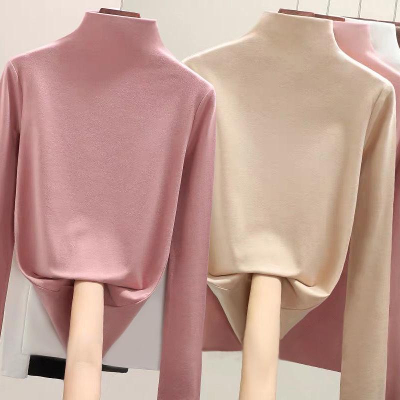 Fabricante Venta al por Mayor Terciopelo Alemán de Doble Cara para Mujer Cuello Alto Cálido Otoño e Invierno Ajustado Manga Larga Camiseta Top Camisa Base