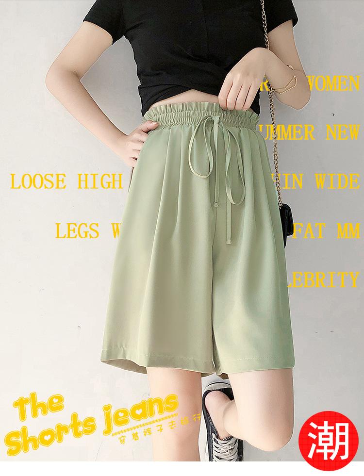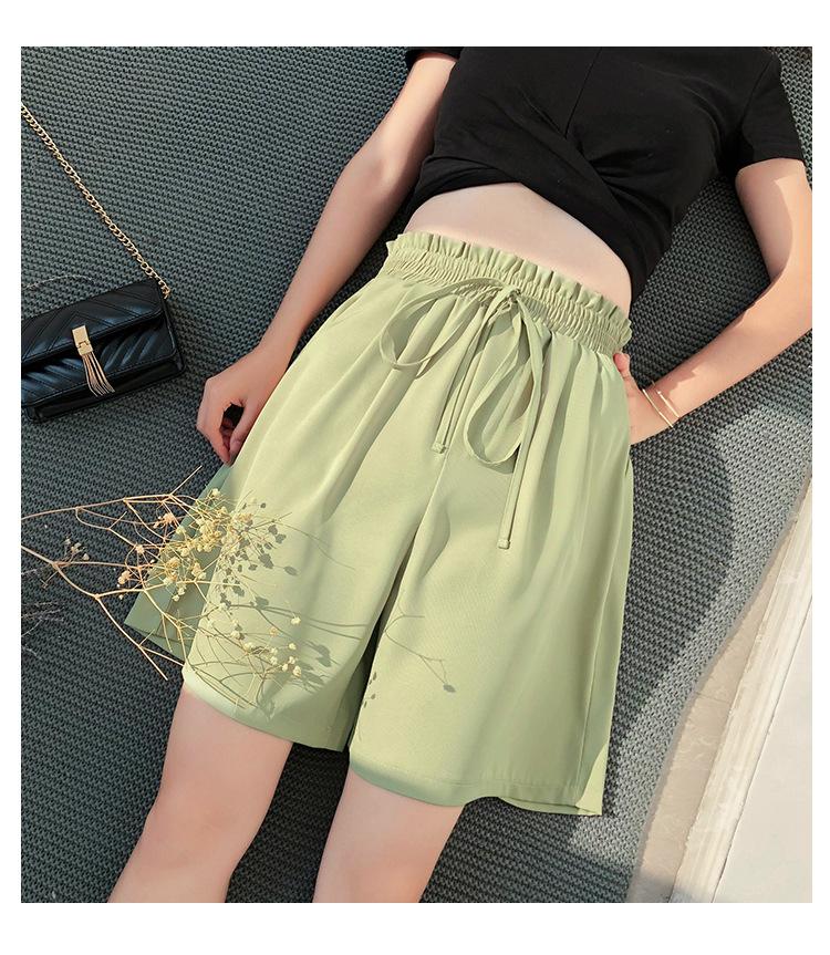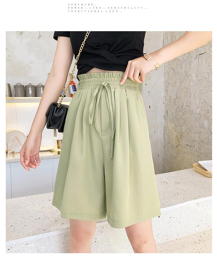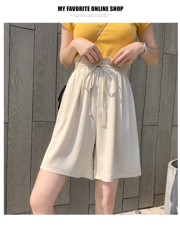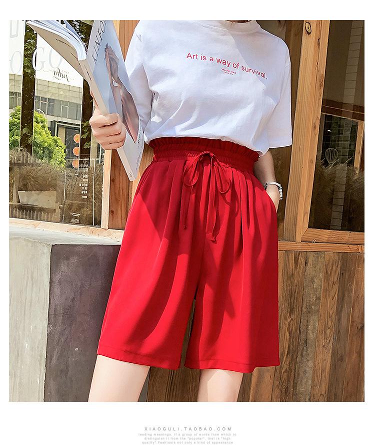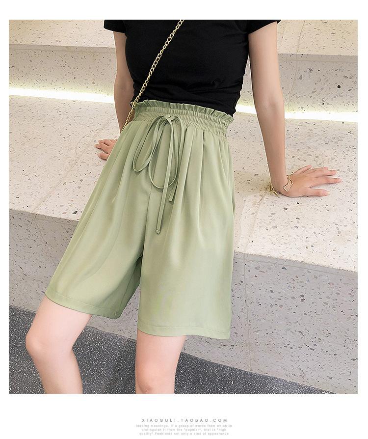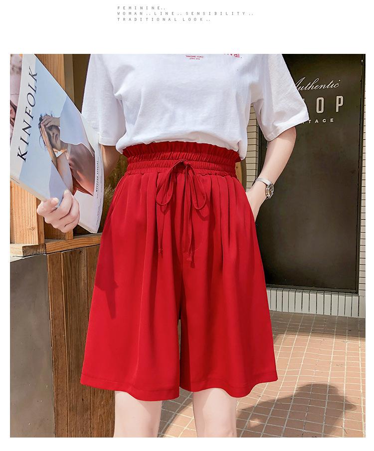 Pantalones Frescos de Verano M-4Xl Pantalones Chifón de Pierna Ancha Cinco Puntos Cintura Alta para Mujer Holgados Casuales Elásticos