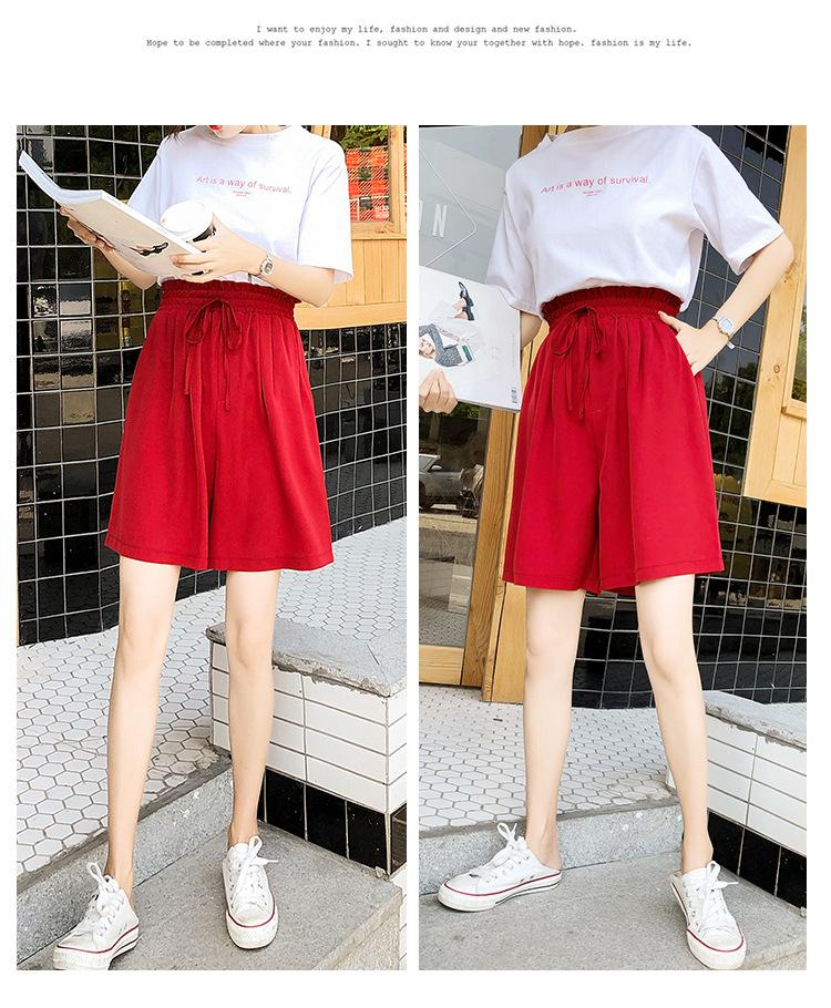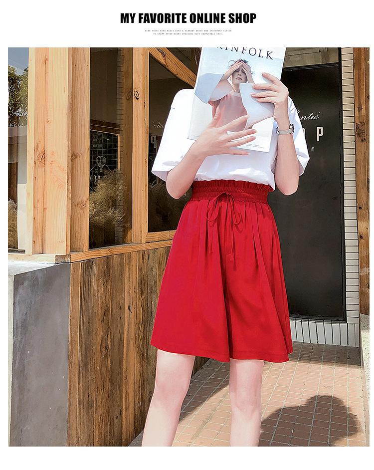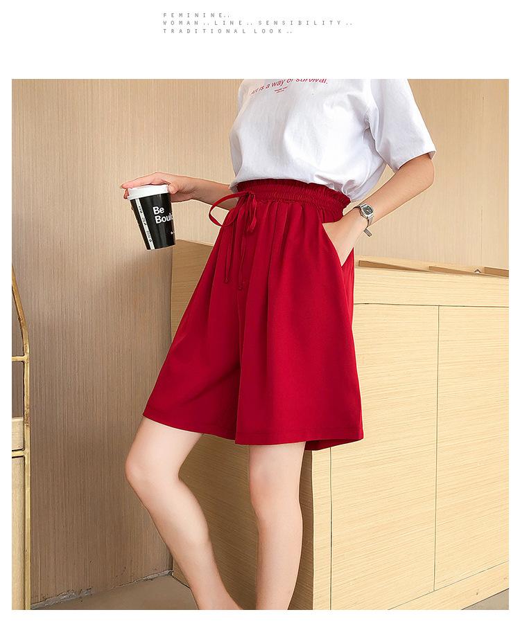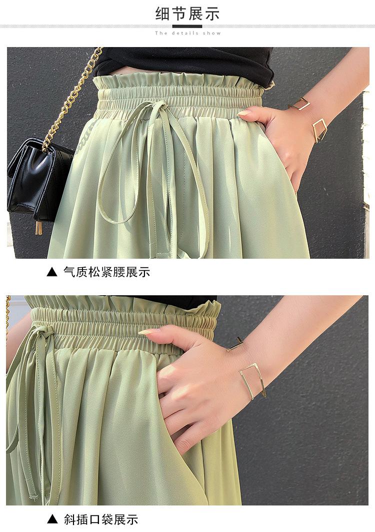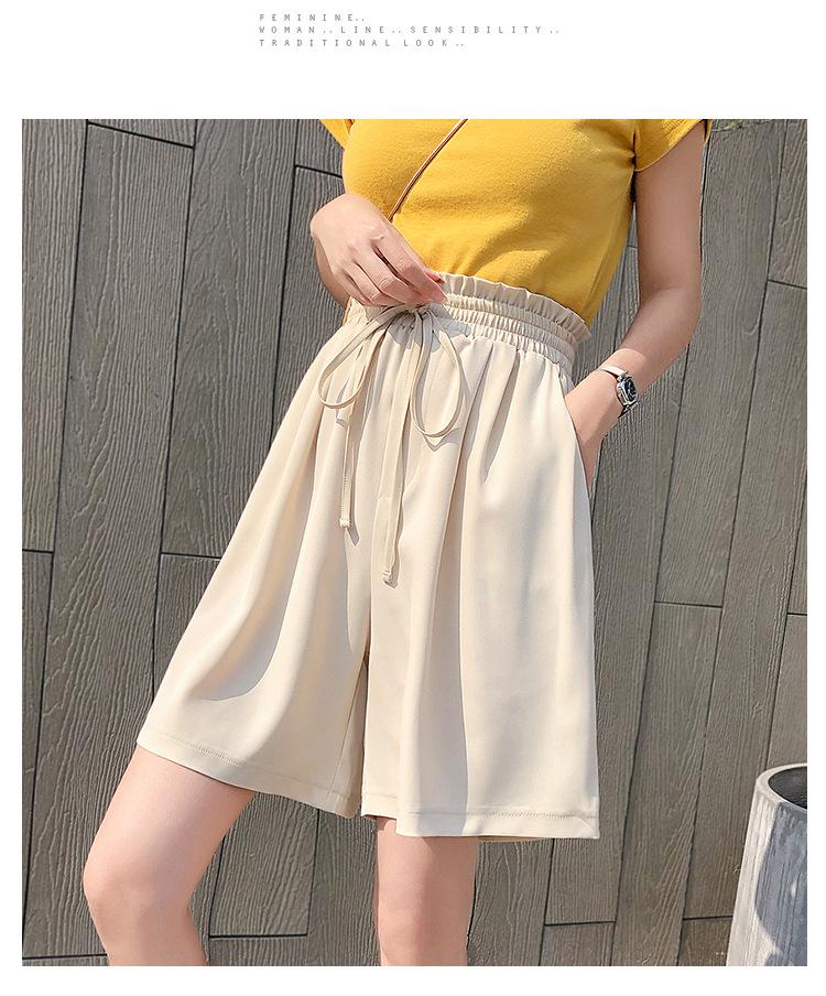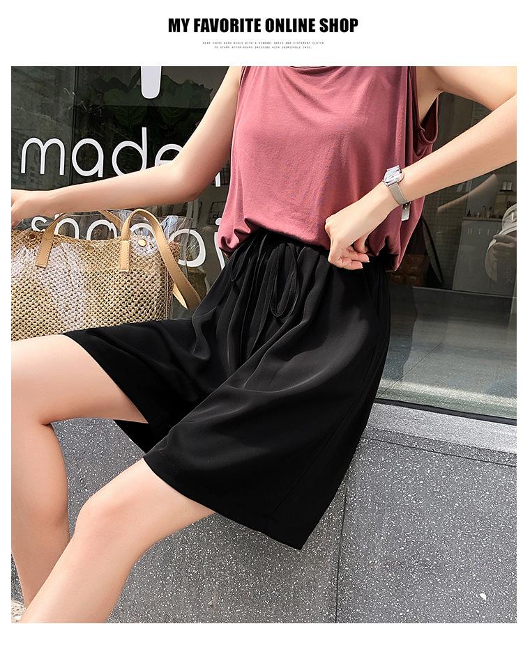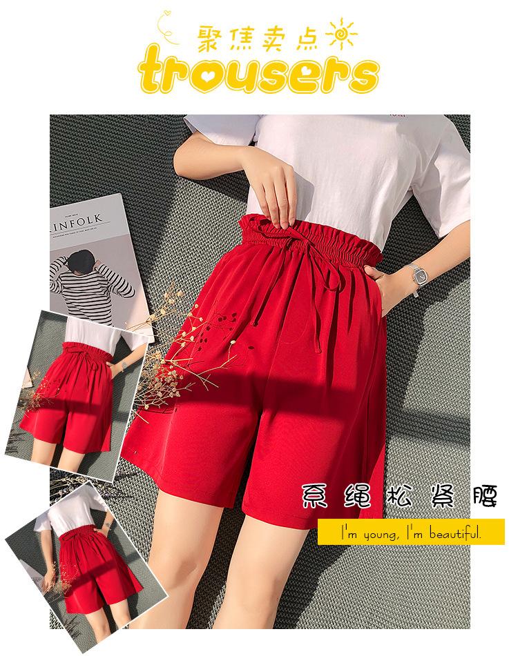 Pantalones Frescos de Verano M-4Xl Pantalones Chifón de Pierna Ancha Cinco Puntos Cintura Alta para Mujer Holgados Casuales Elásticos