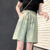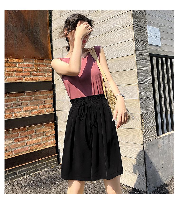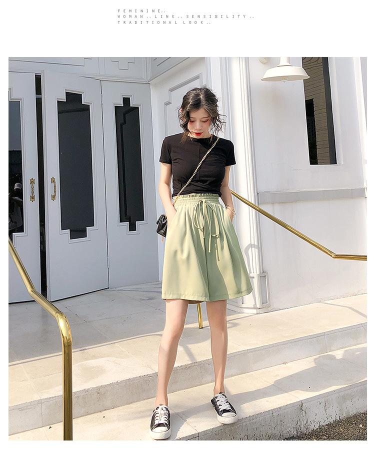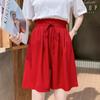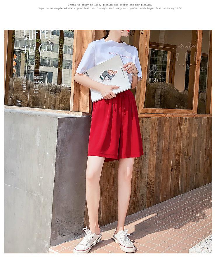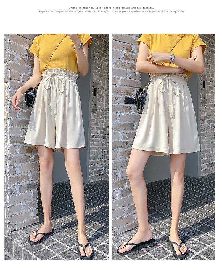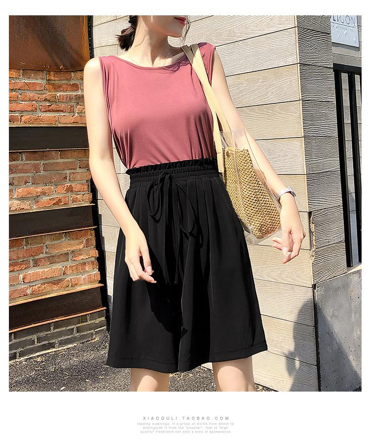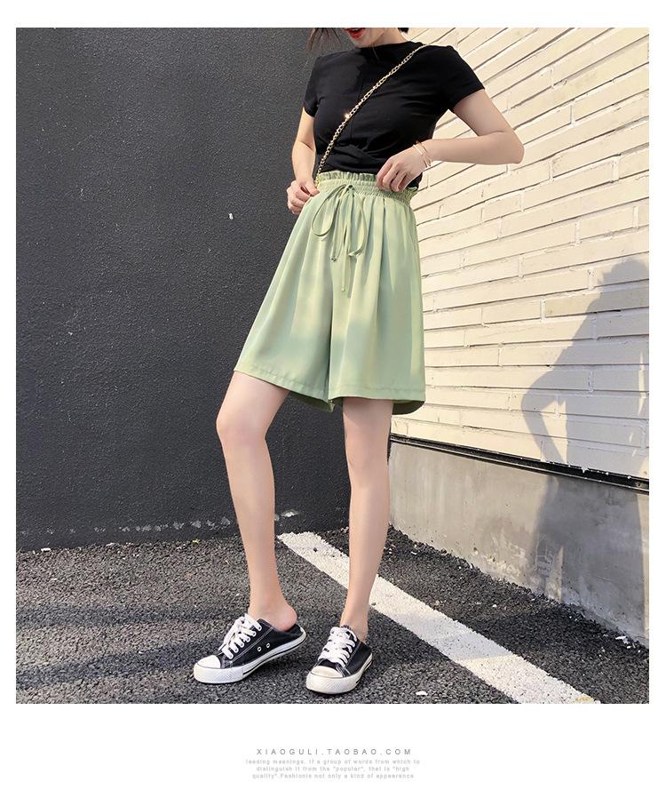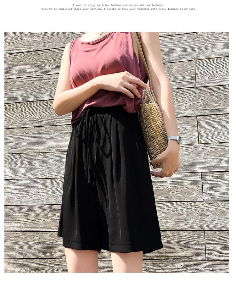 Pantalones Frescos de Verano M-4Xl Pantalones Chifón de Pierna Ancha Cinco Puntos Cintura Alta para Mujer Holgados Casuales Elásticos