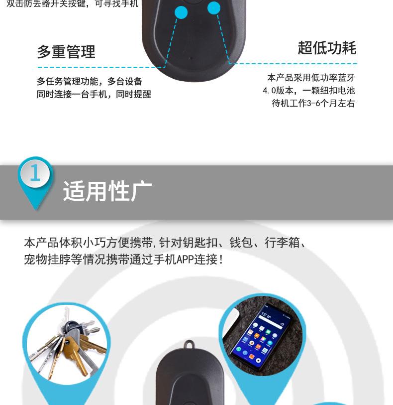 1. Evite la pérdida de objetos de valor. Cuando el teléfono móvil y el dispositivo antipérdida superan la distancia efectiva predeterminada, se activará una alarma automática bidireccional para buscar al propietario y evitar su pérdida (personas mayores, niños, mascotas, etc.).