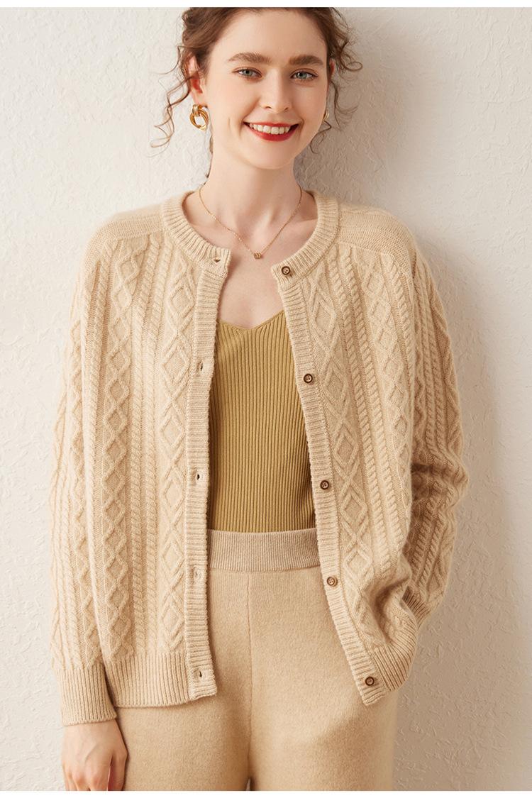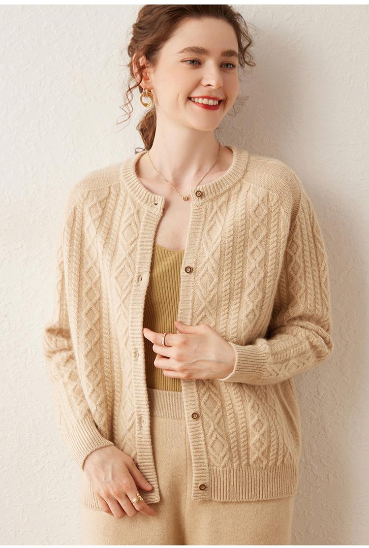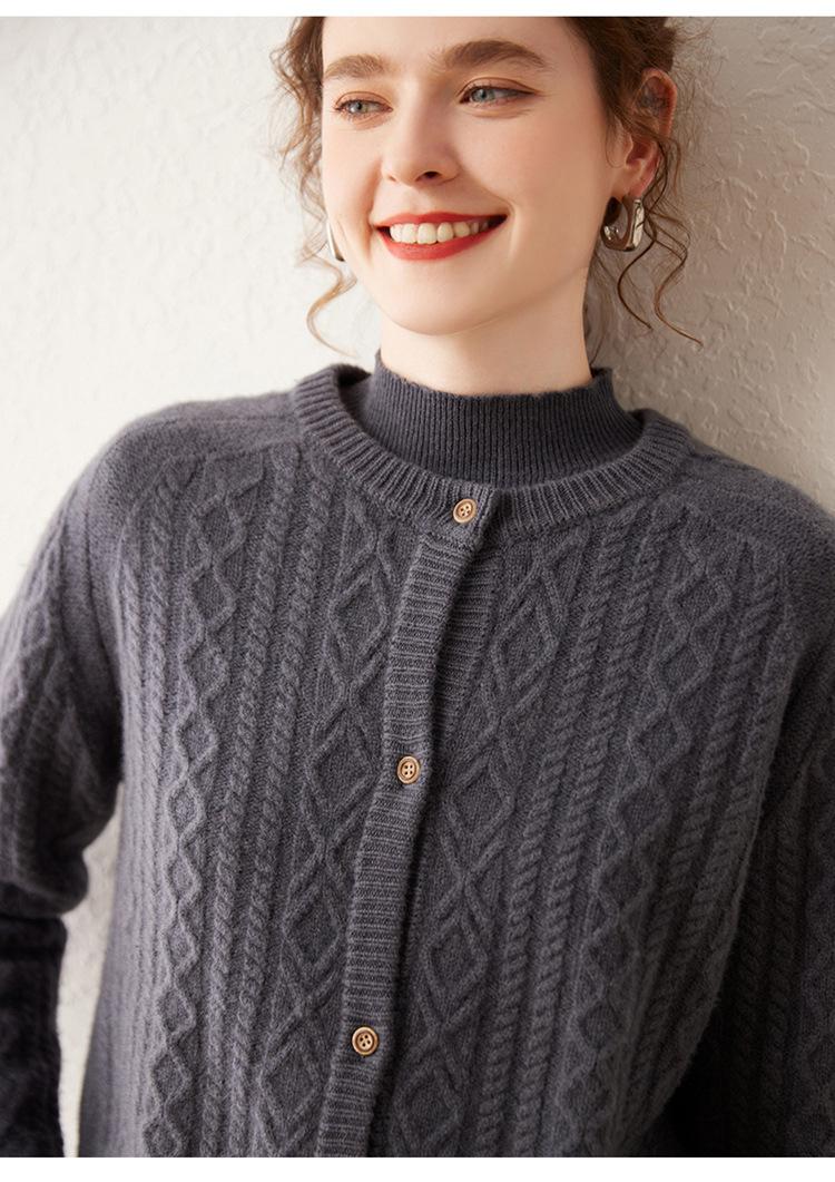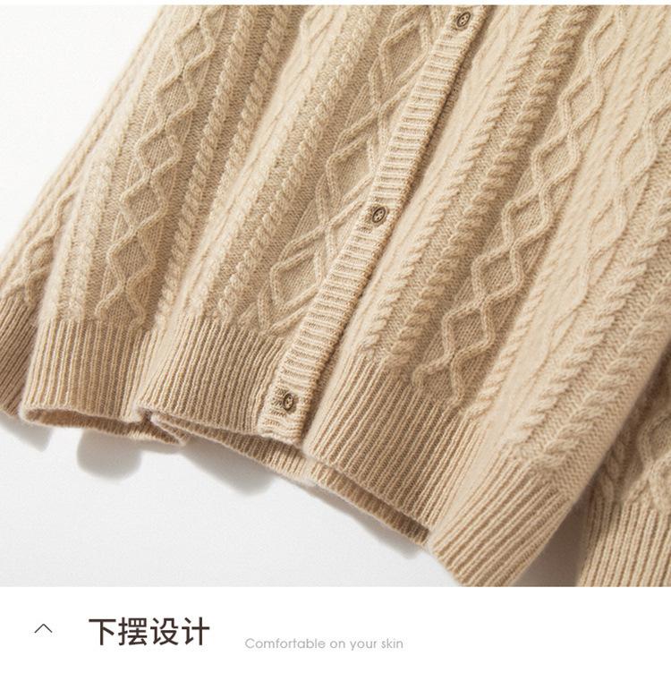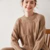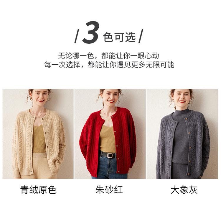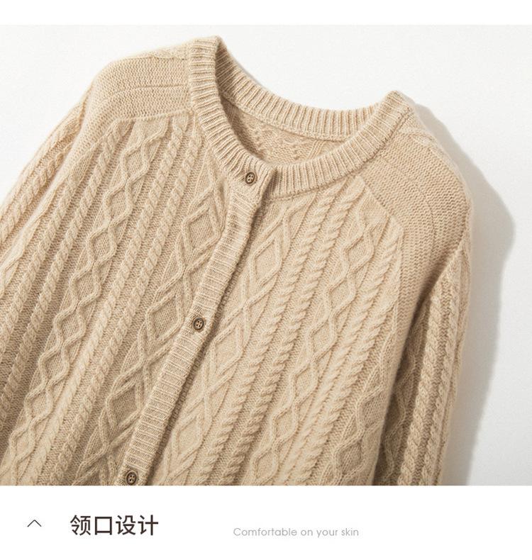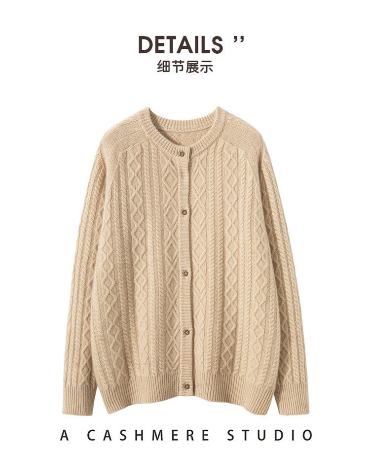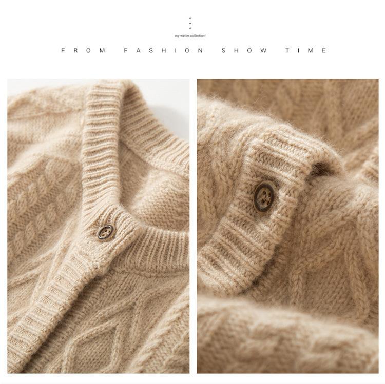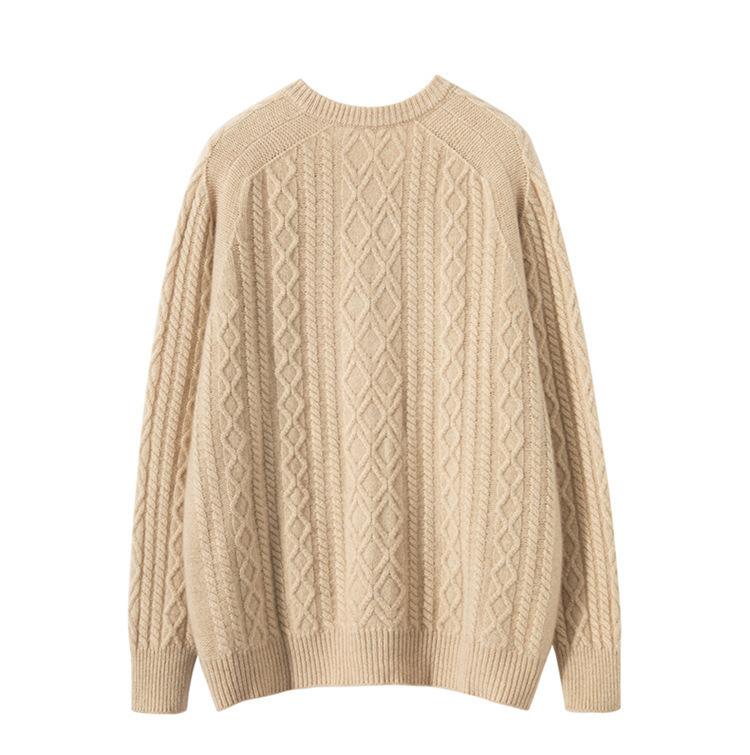 Suéter de cachemira pesado de otoño e invierno nuevo para mujer, suéter holgado de punto con cuello redondo retorcido de diamante, cárdigan de tres hilos engrosado